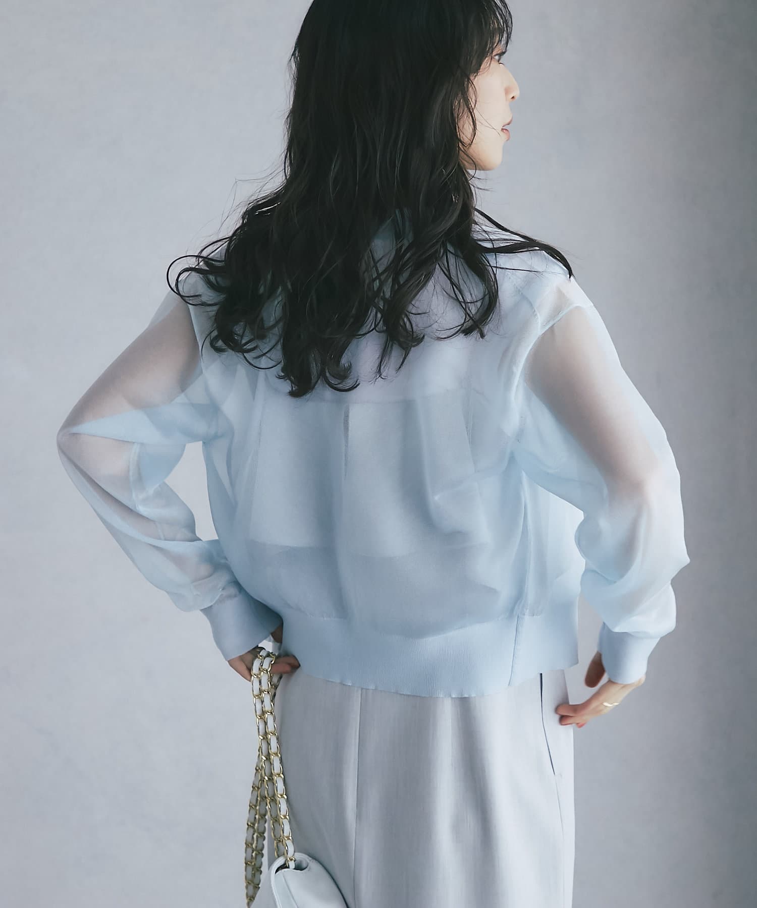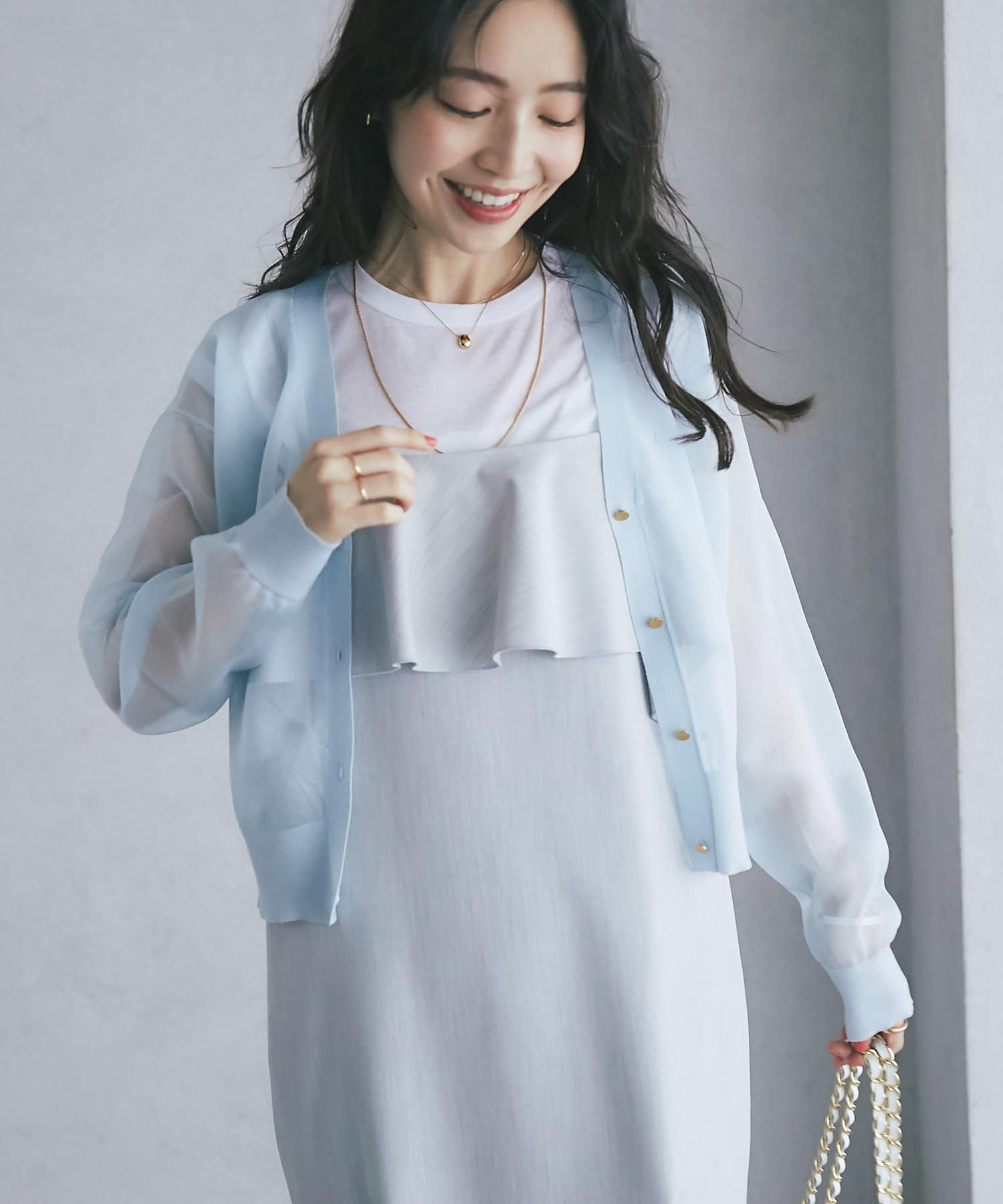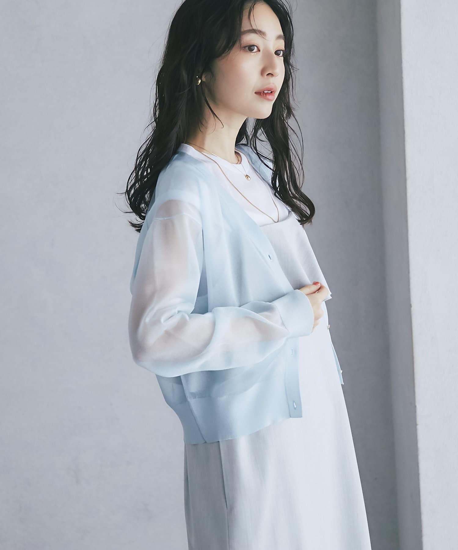 しゃりっとした肌触りが気持ちのいいシアーニットカーディガン