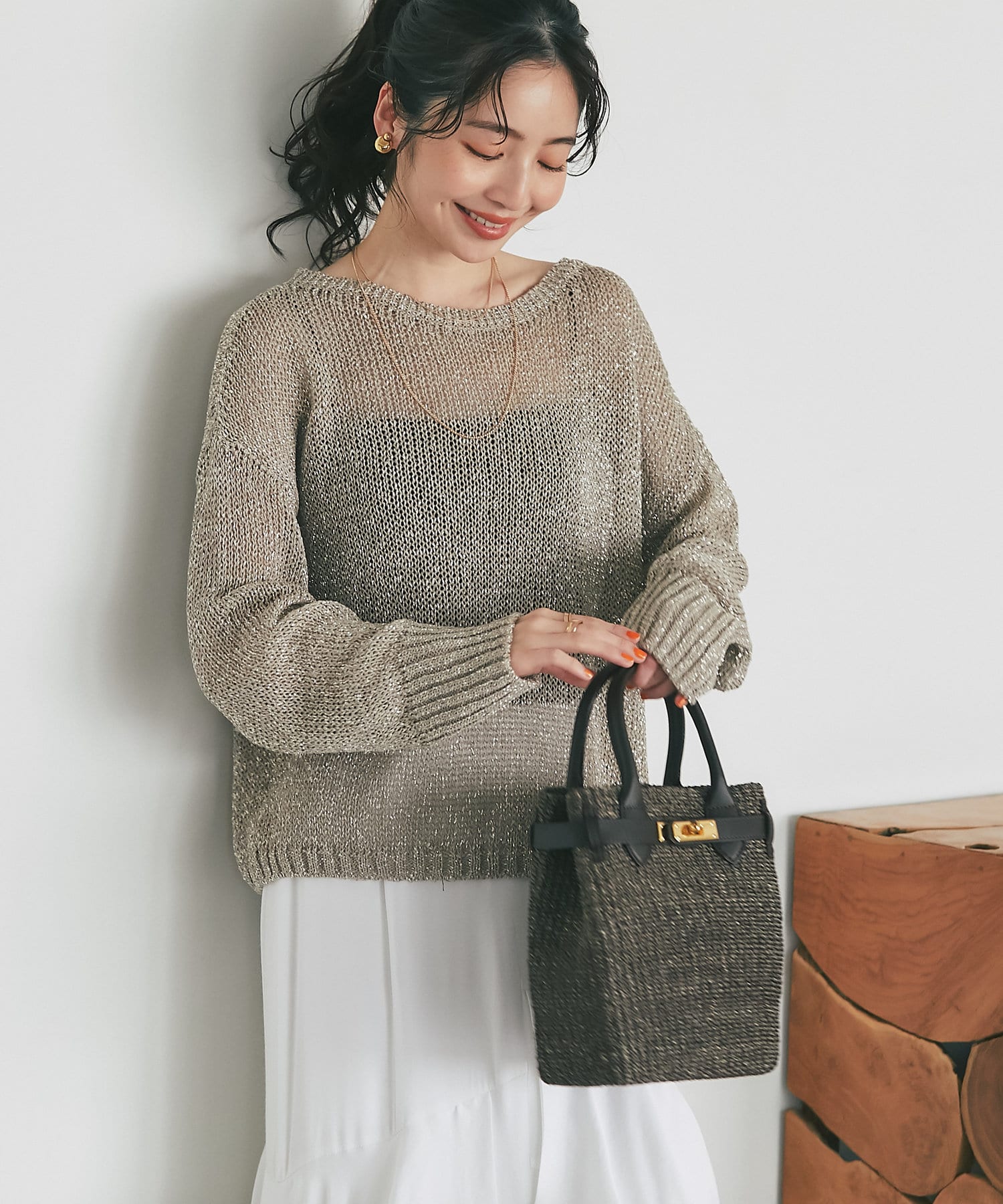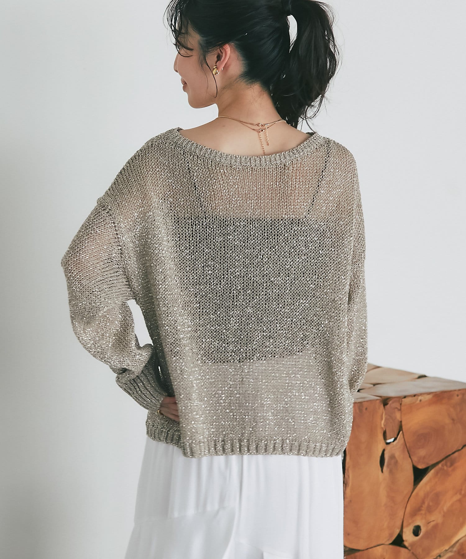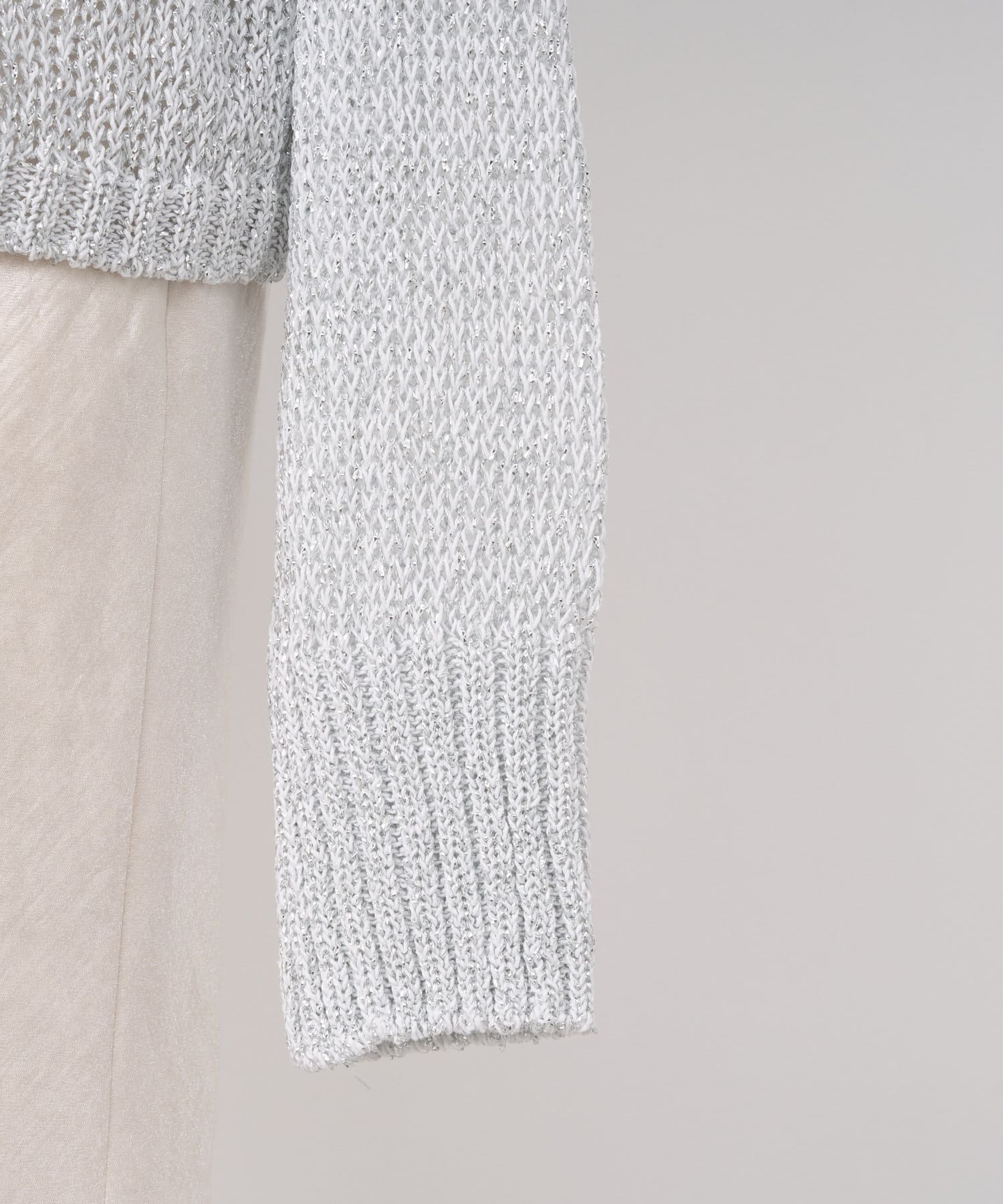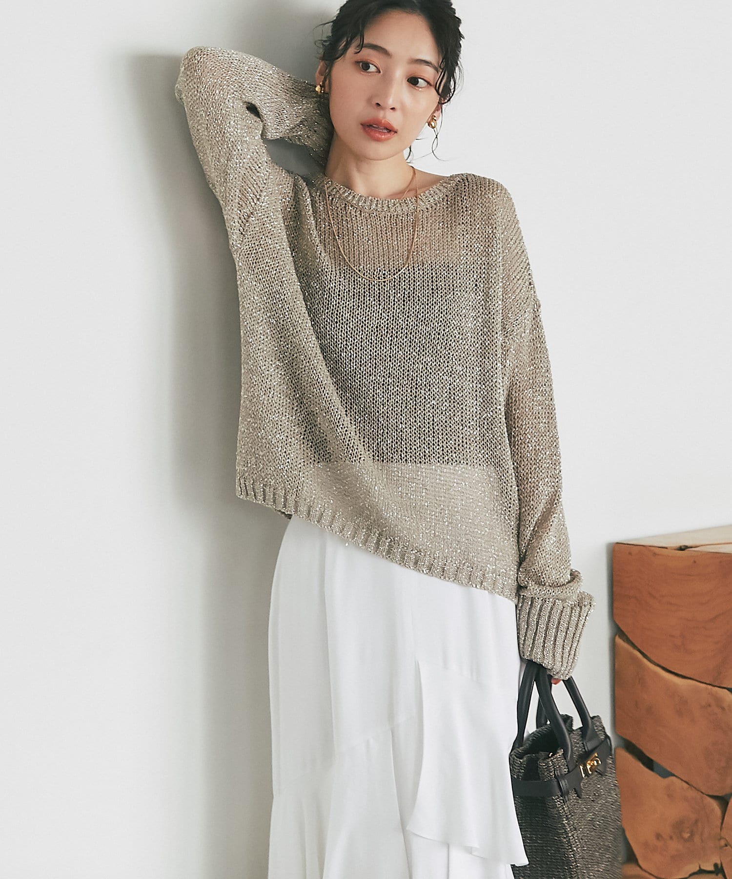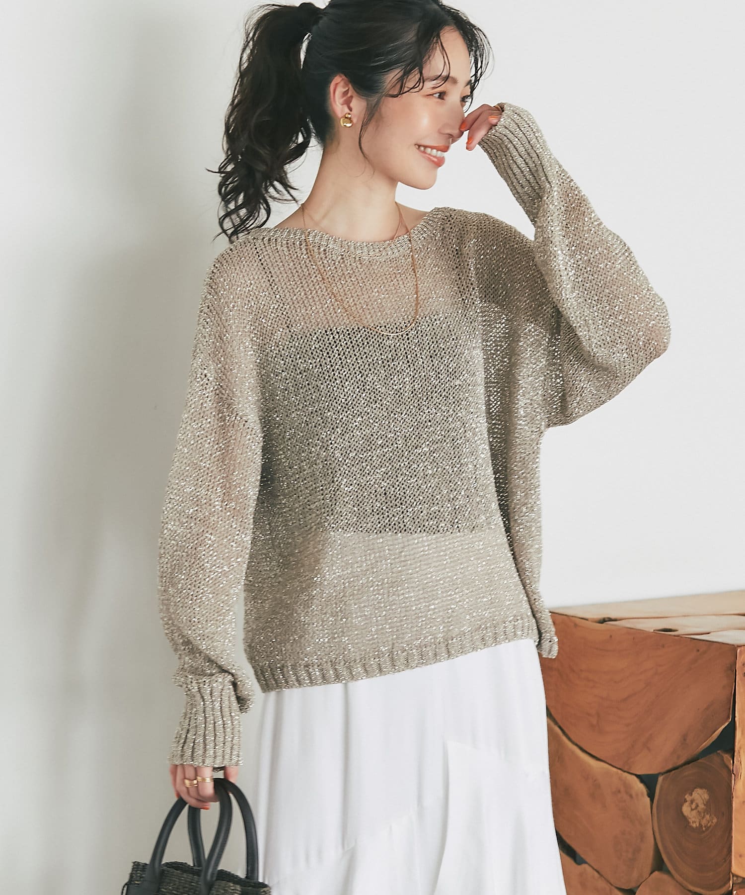ざっくりとしたミドルゲージのナチュラルな素材感にラメの光沢感が大人の女性にぴったりなニット。