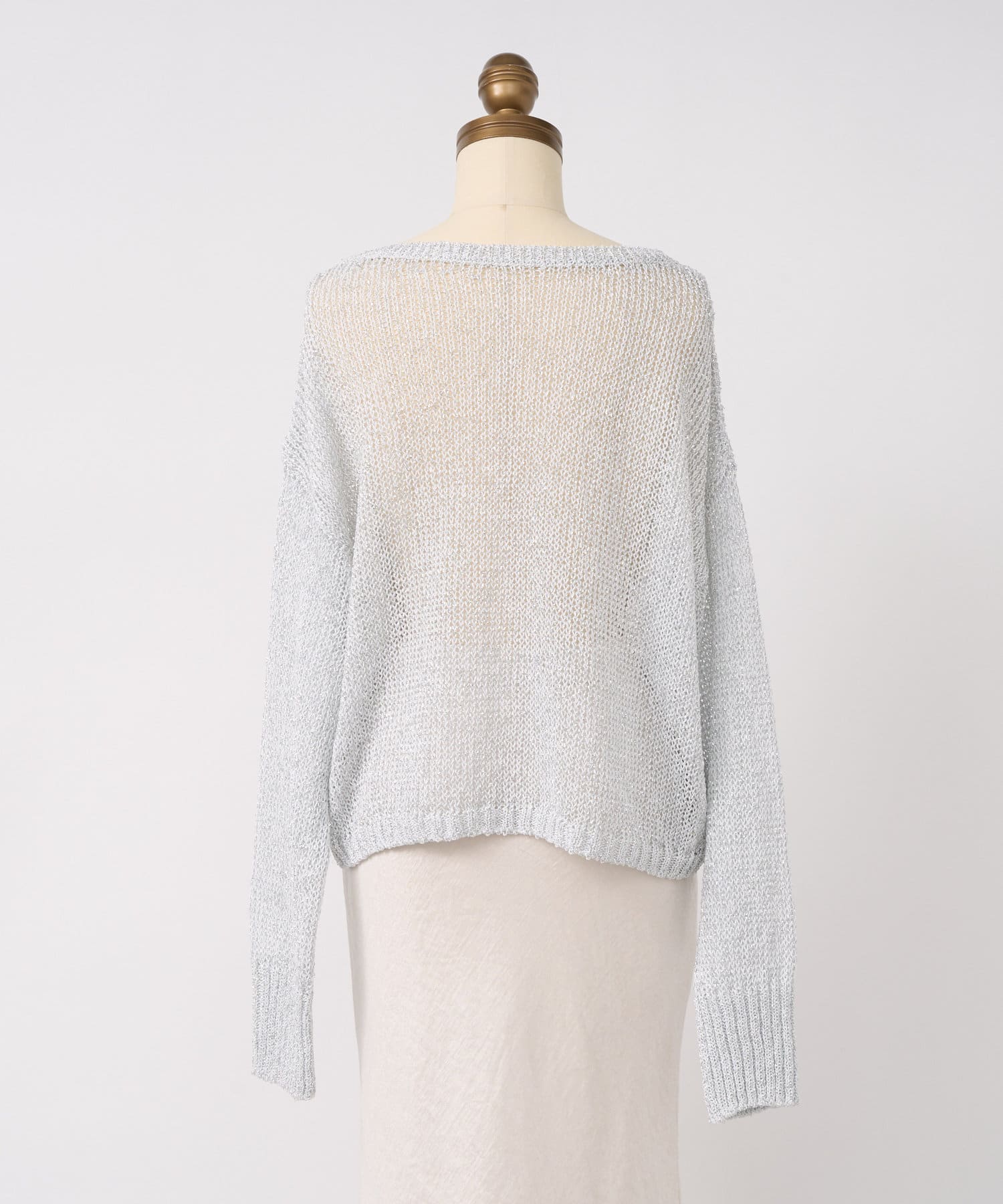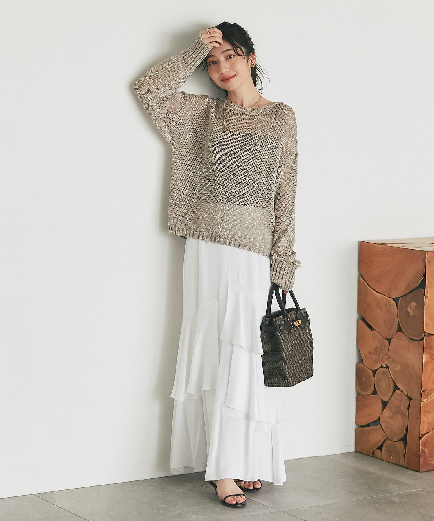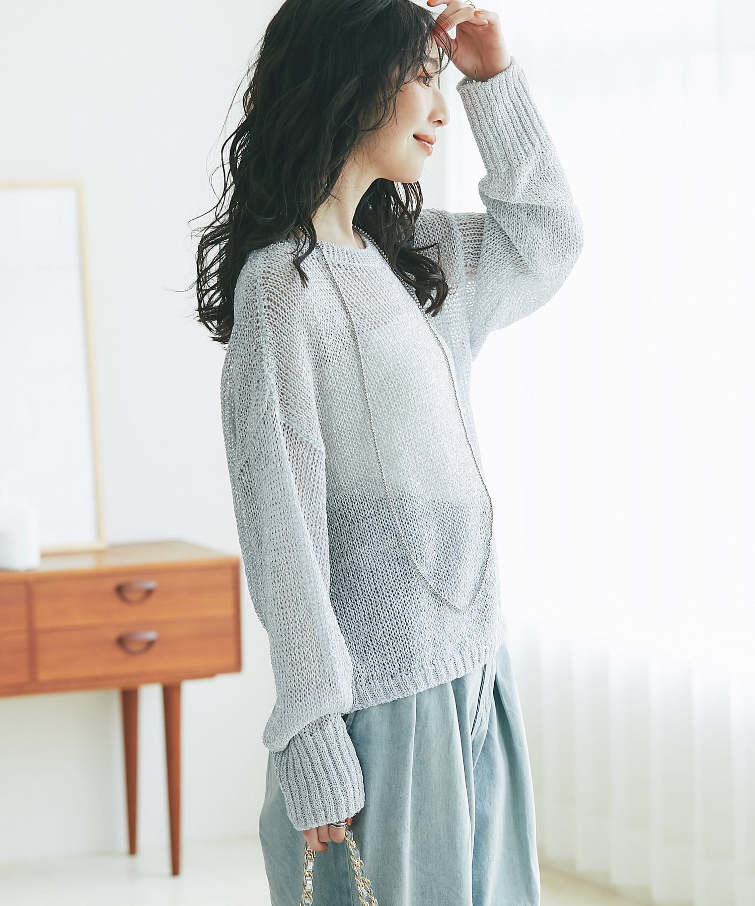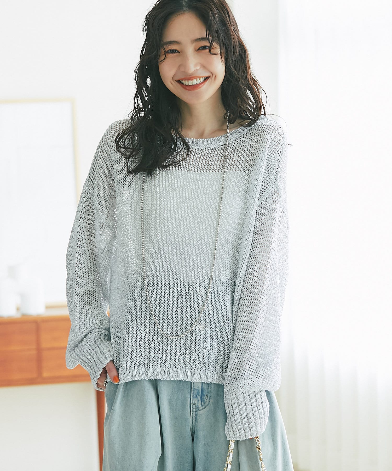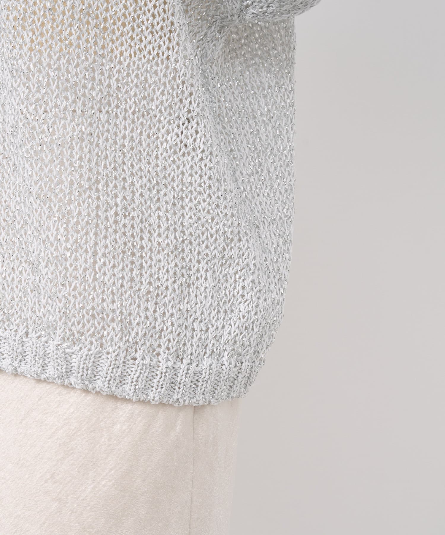 ざっくりとしたミドルゲージのナチュラルな素材感にラメの光沢感が大人の女性にぴったりなニット。