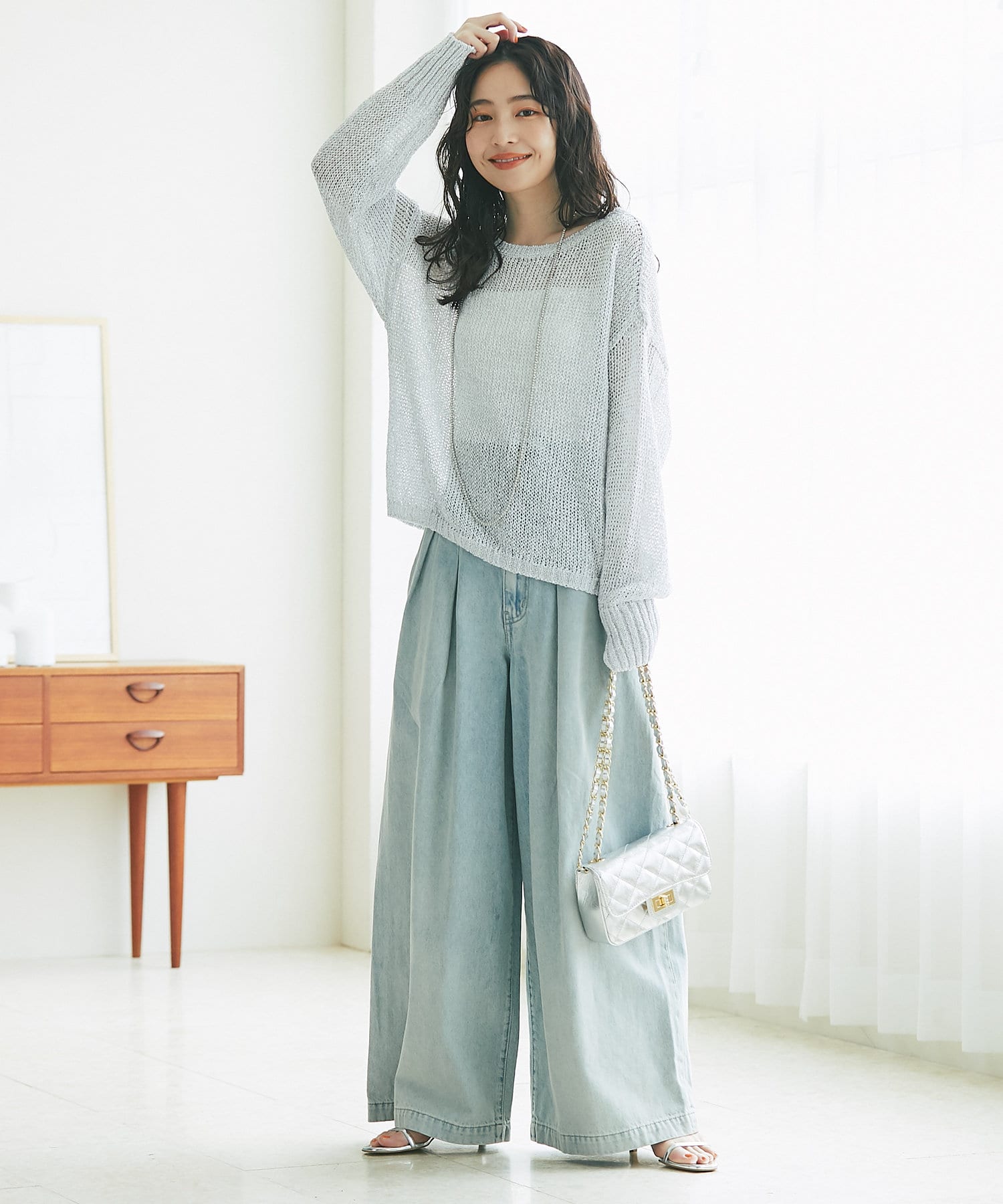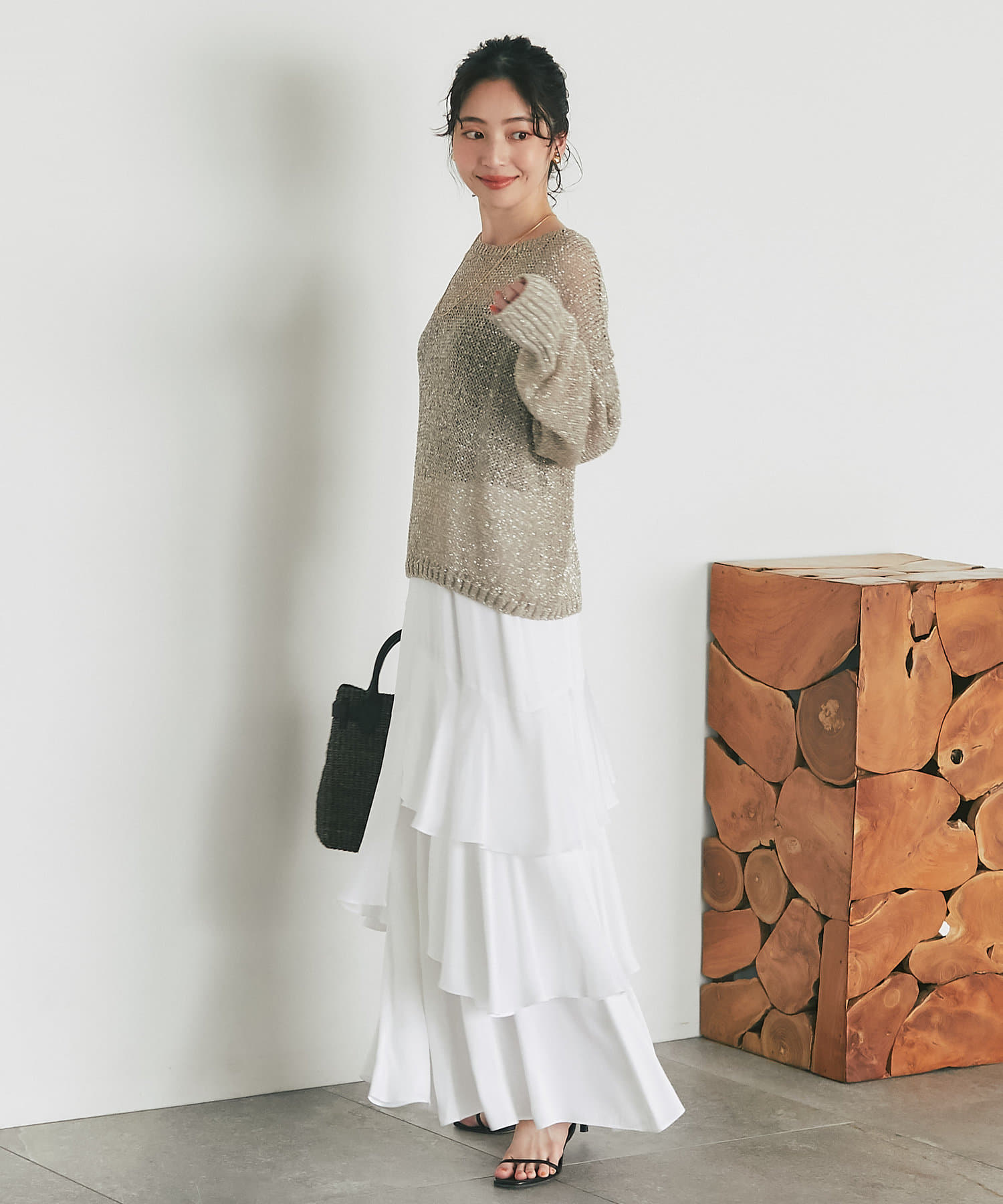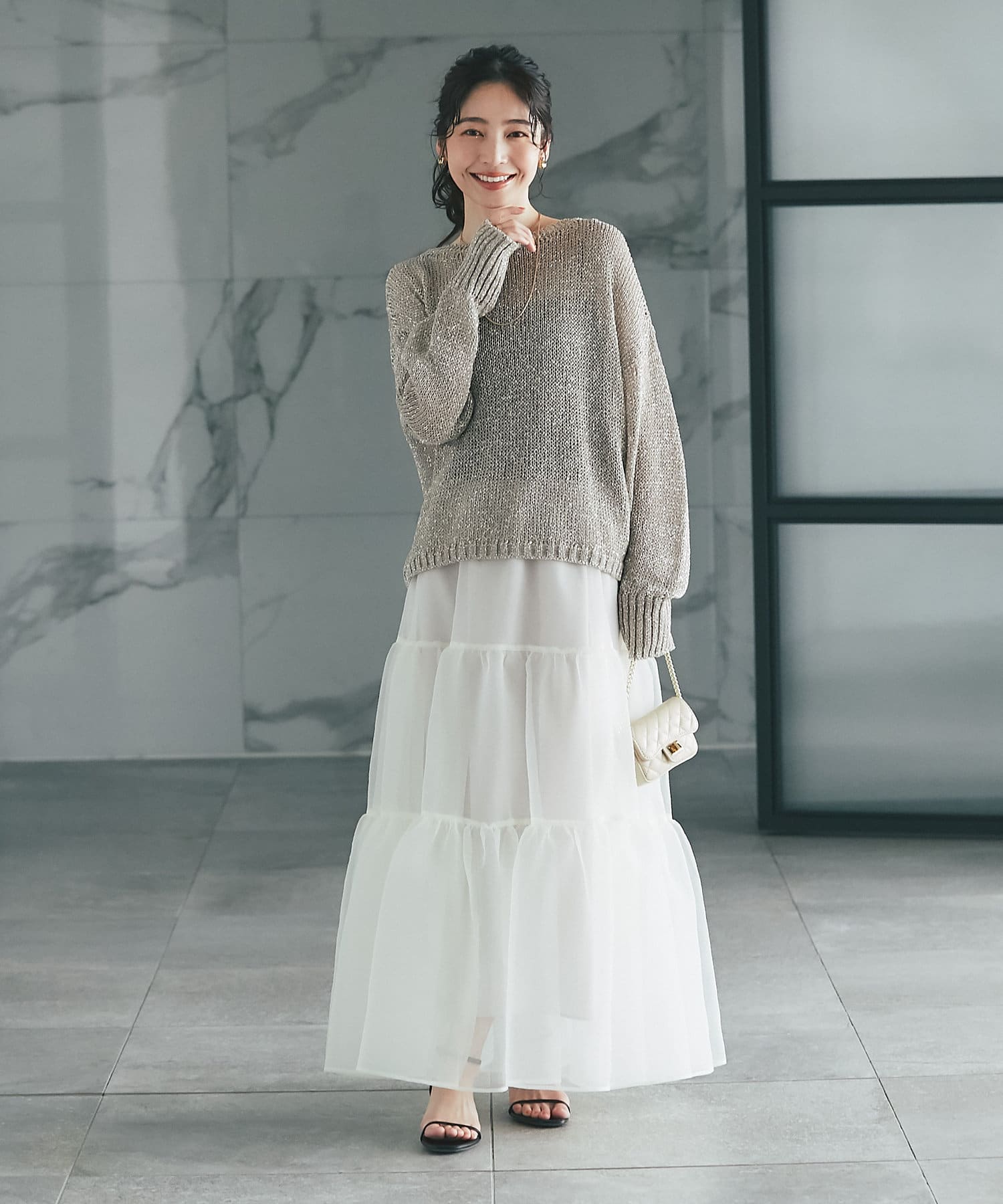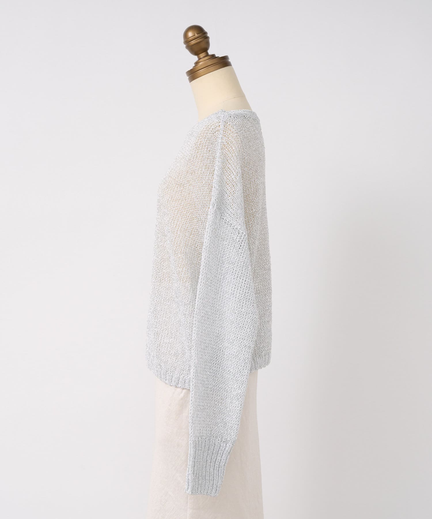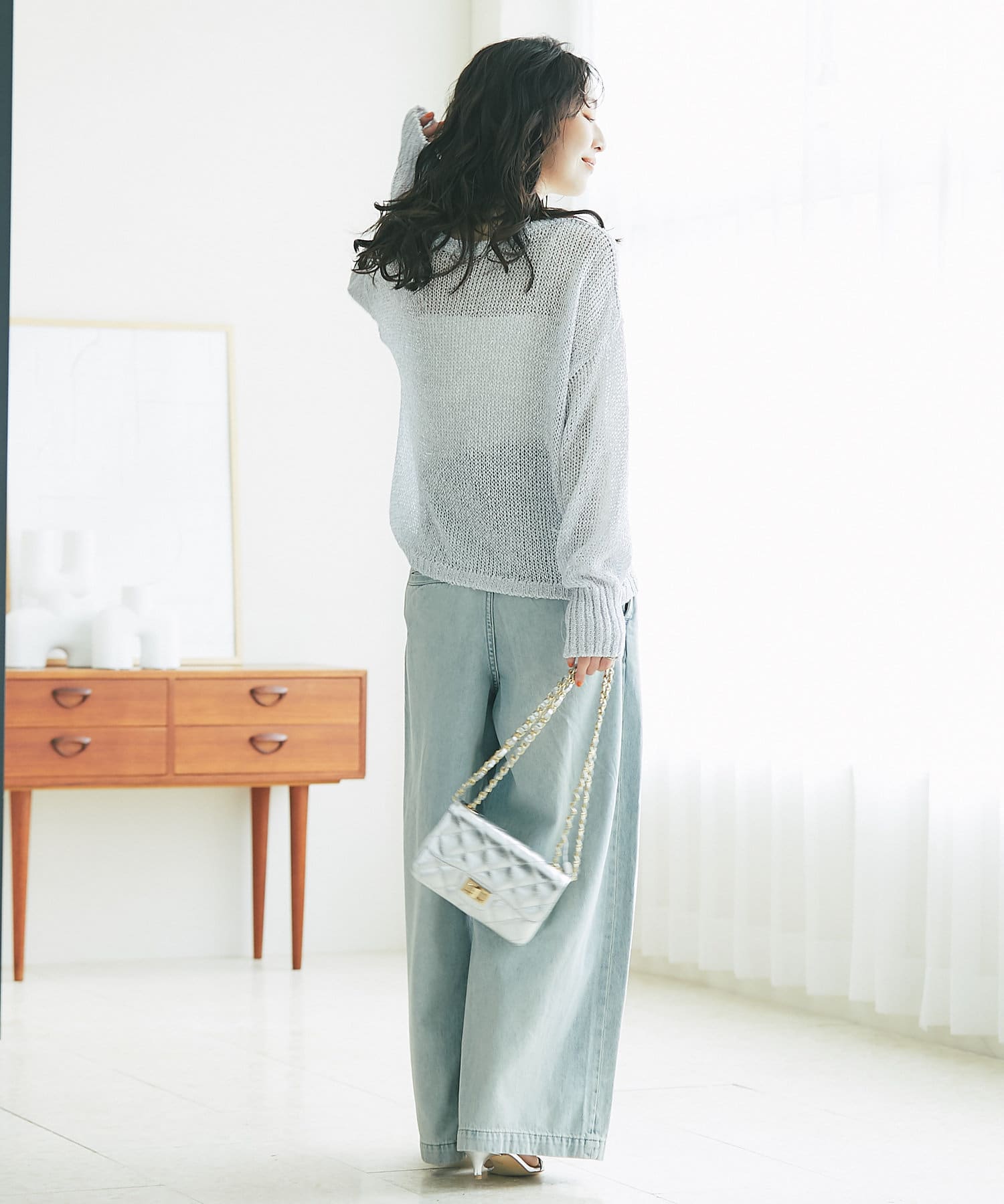 ざっくりとしたミドルゲージのナチュラルな素材感にラメの光沢感が大人の女性にぴったりなニット。