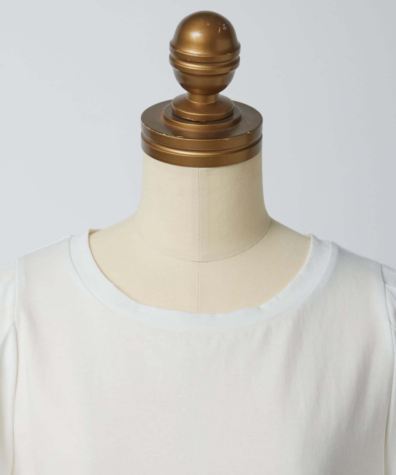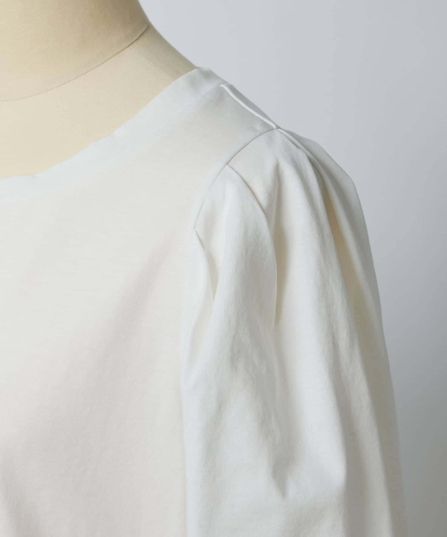 袖山に深めのタックを入れてボリュームを出しているので腕回りも華奢に見せてくれます。