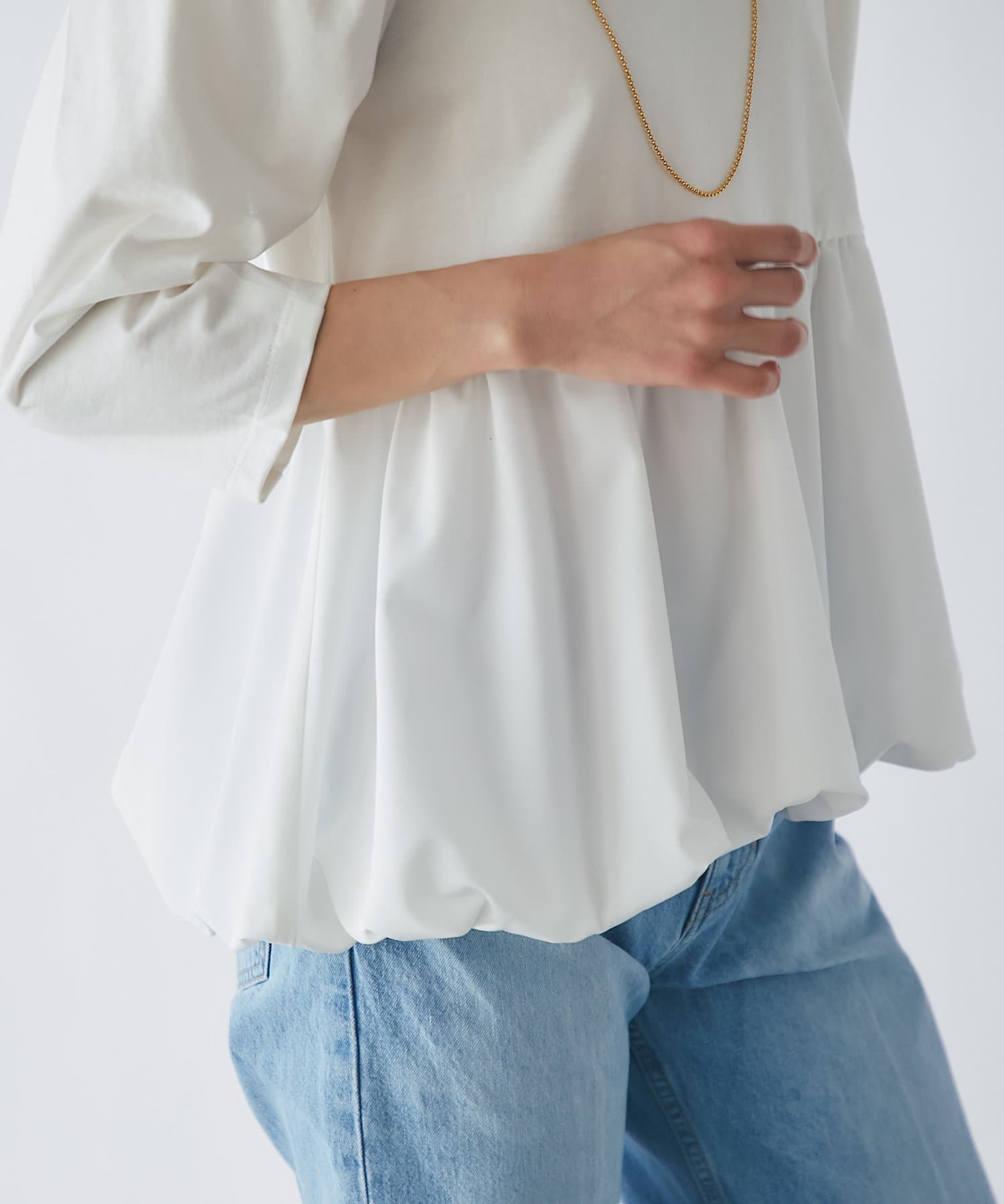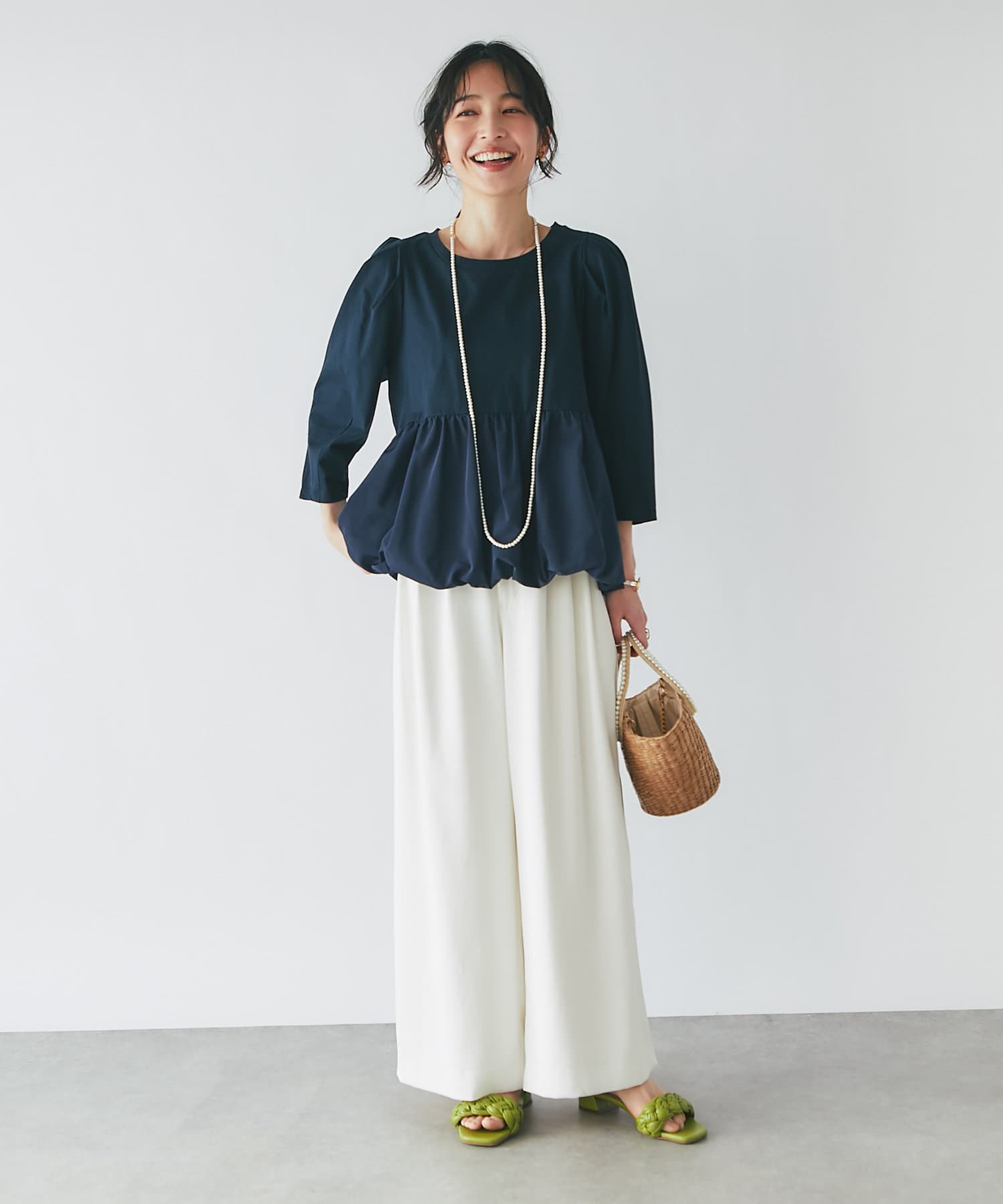 女性らしさも叶う、1枚で着て主役になるペプラムカットソー