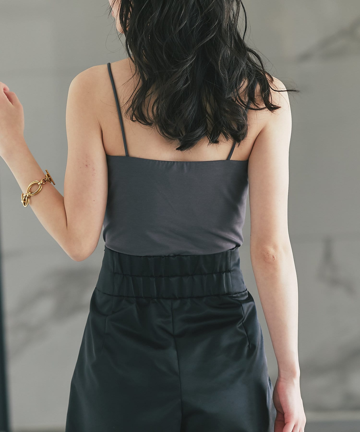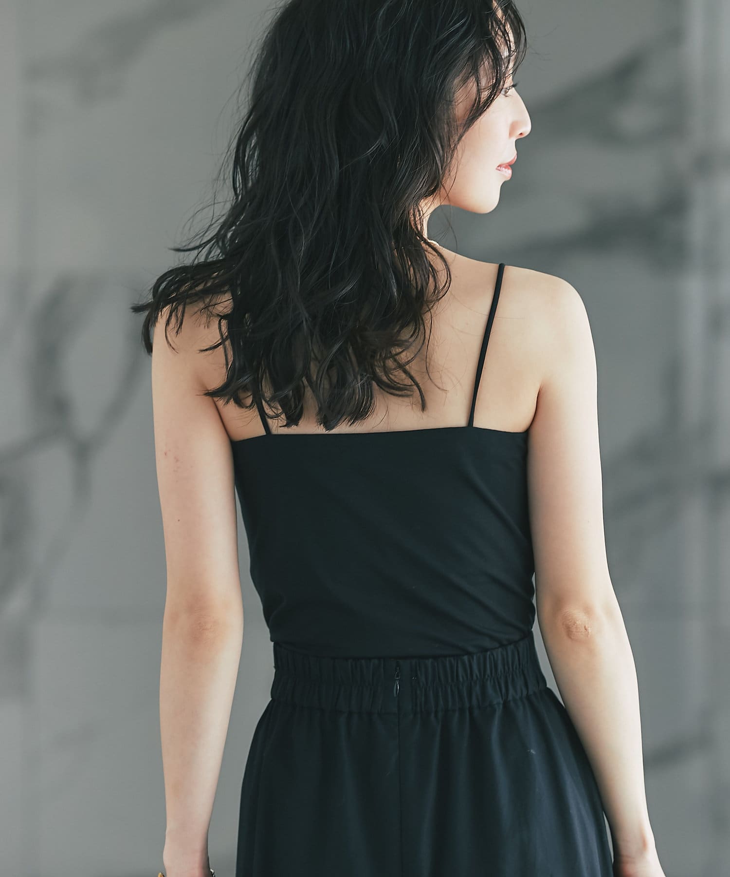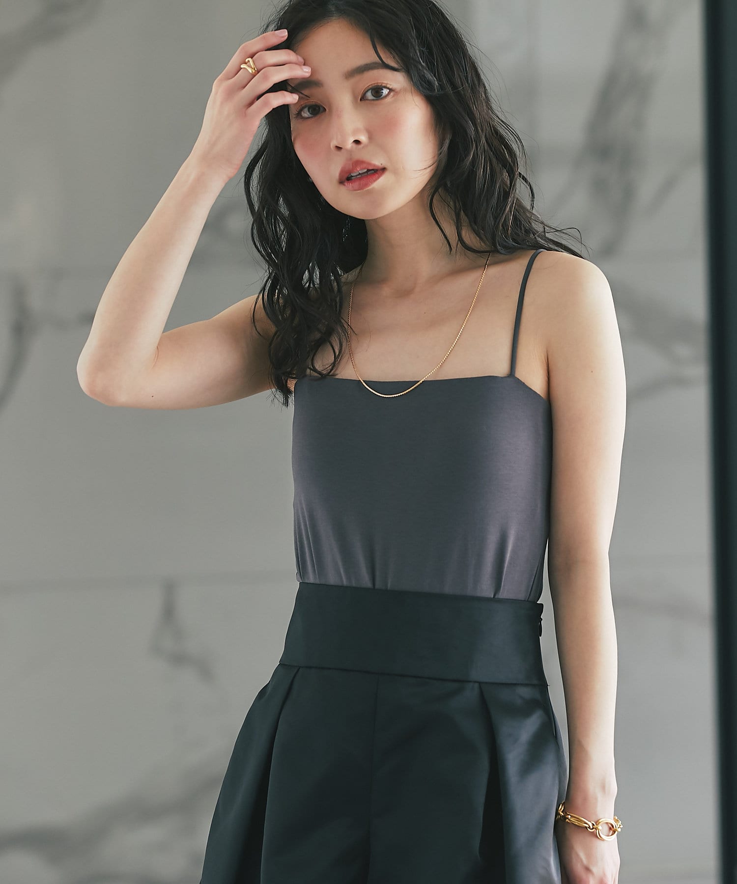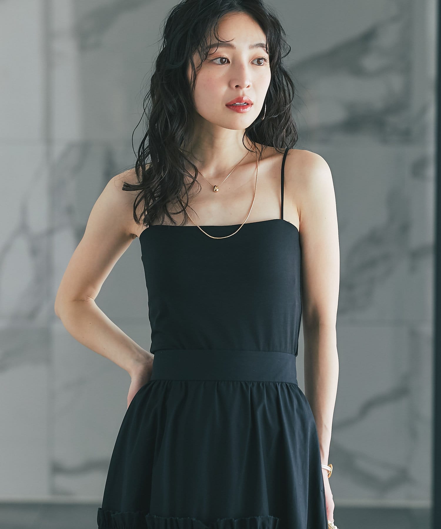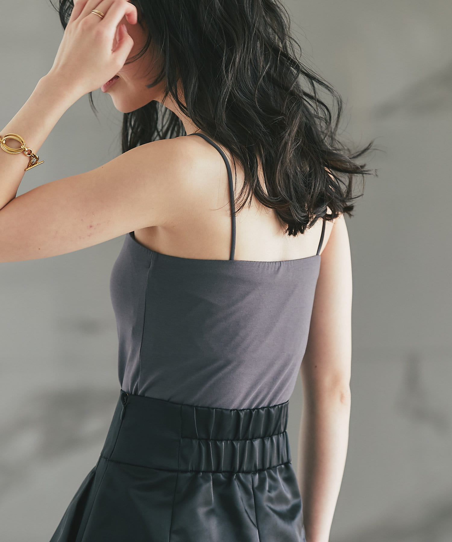 旬のシアコーデに欠かせない上品なキャップ付きキャミソールです。