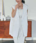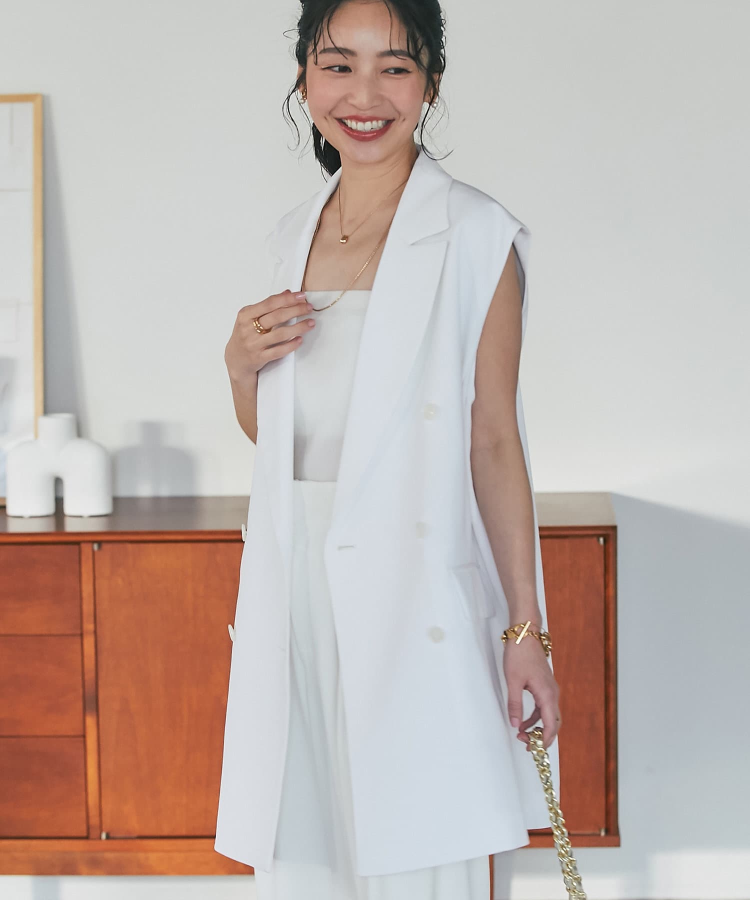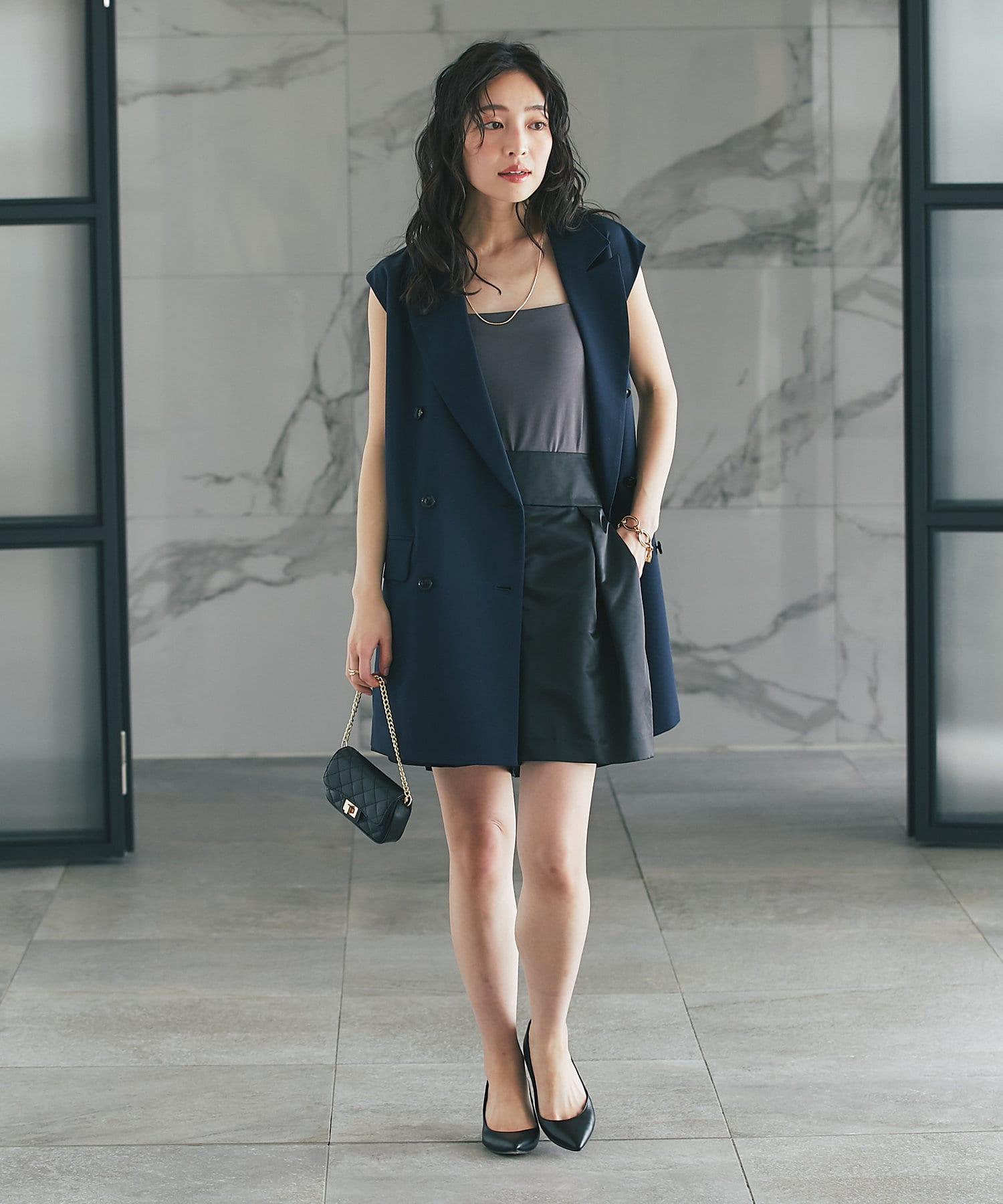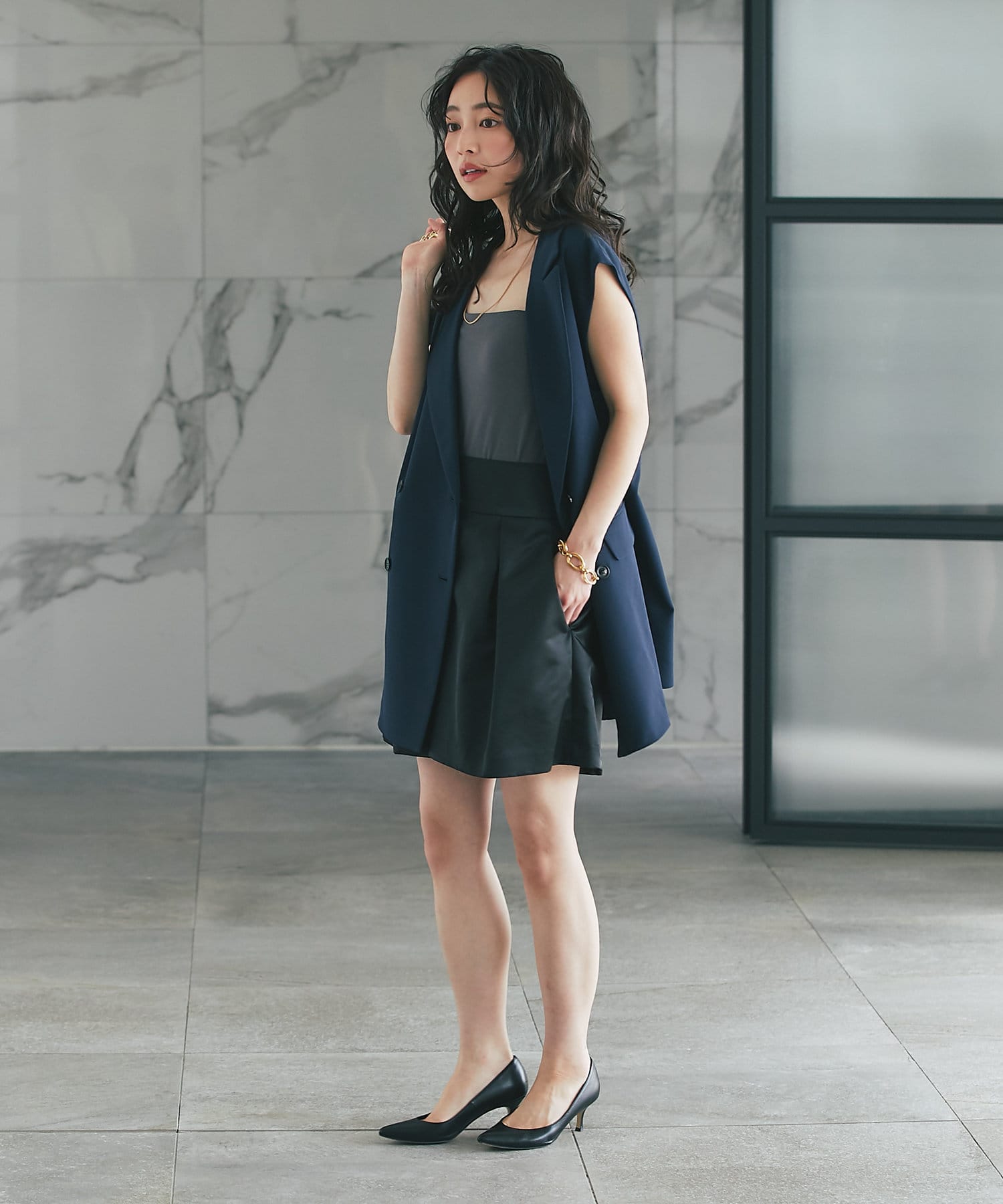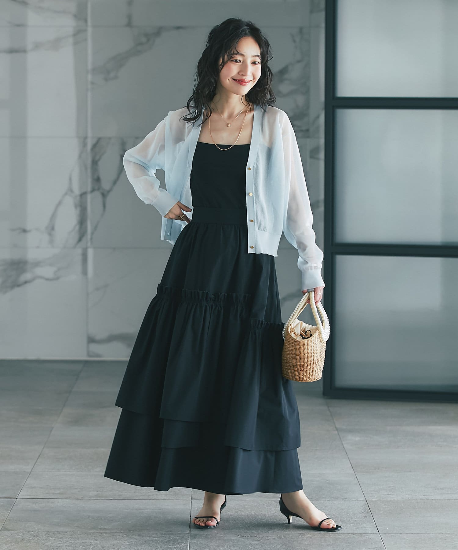 旬のシアコーデに欠かせない上品なキャップ付きキャミソールです。