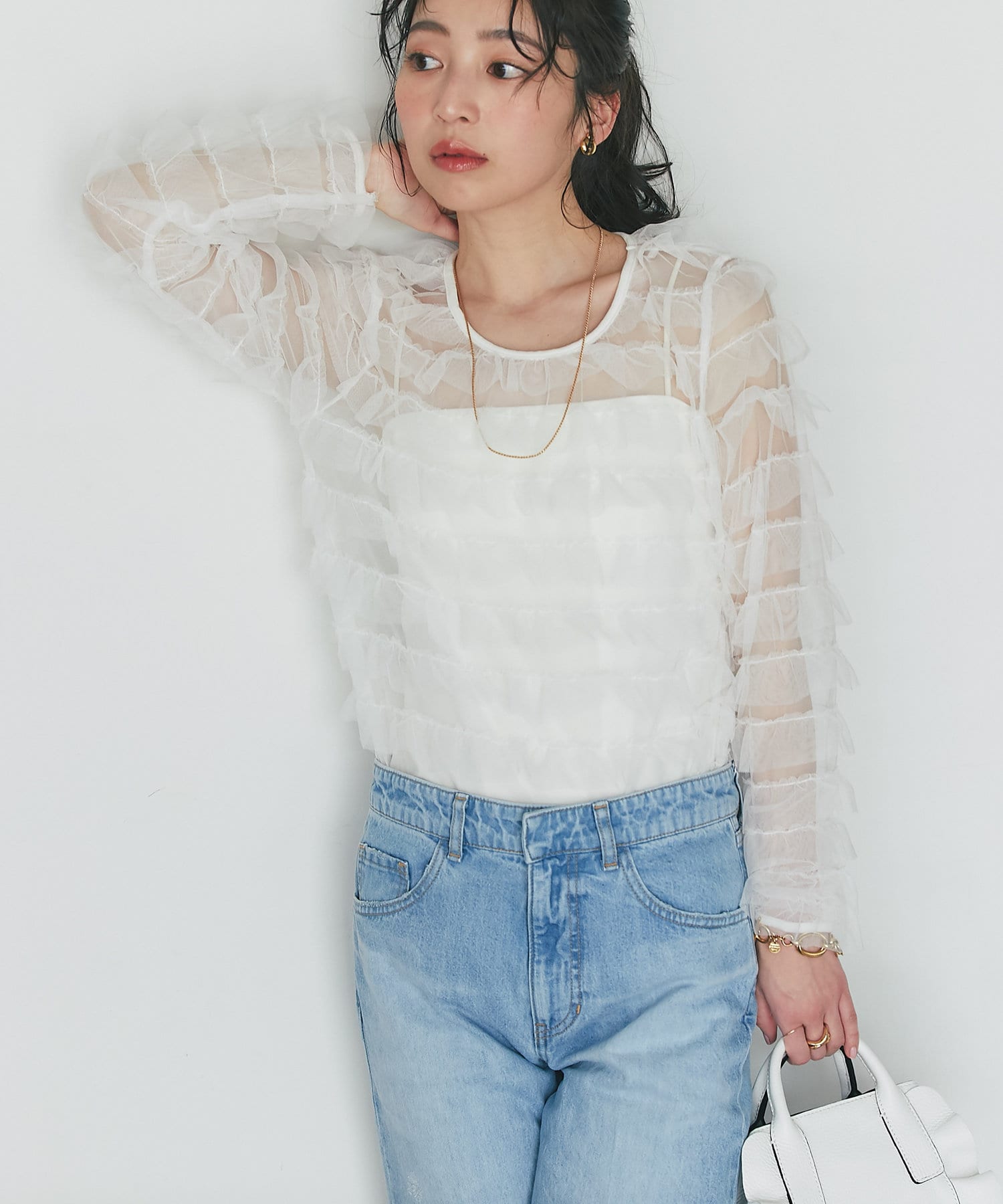 シアー素材のトップスや春夏のゆったりしたニットのインナーとしておすすめです。