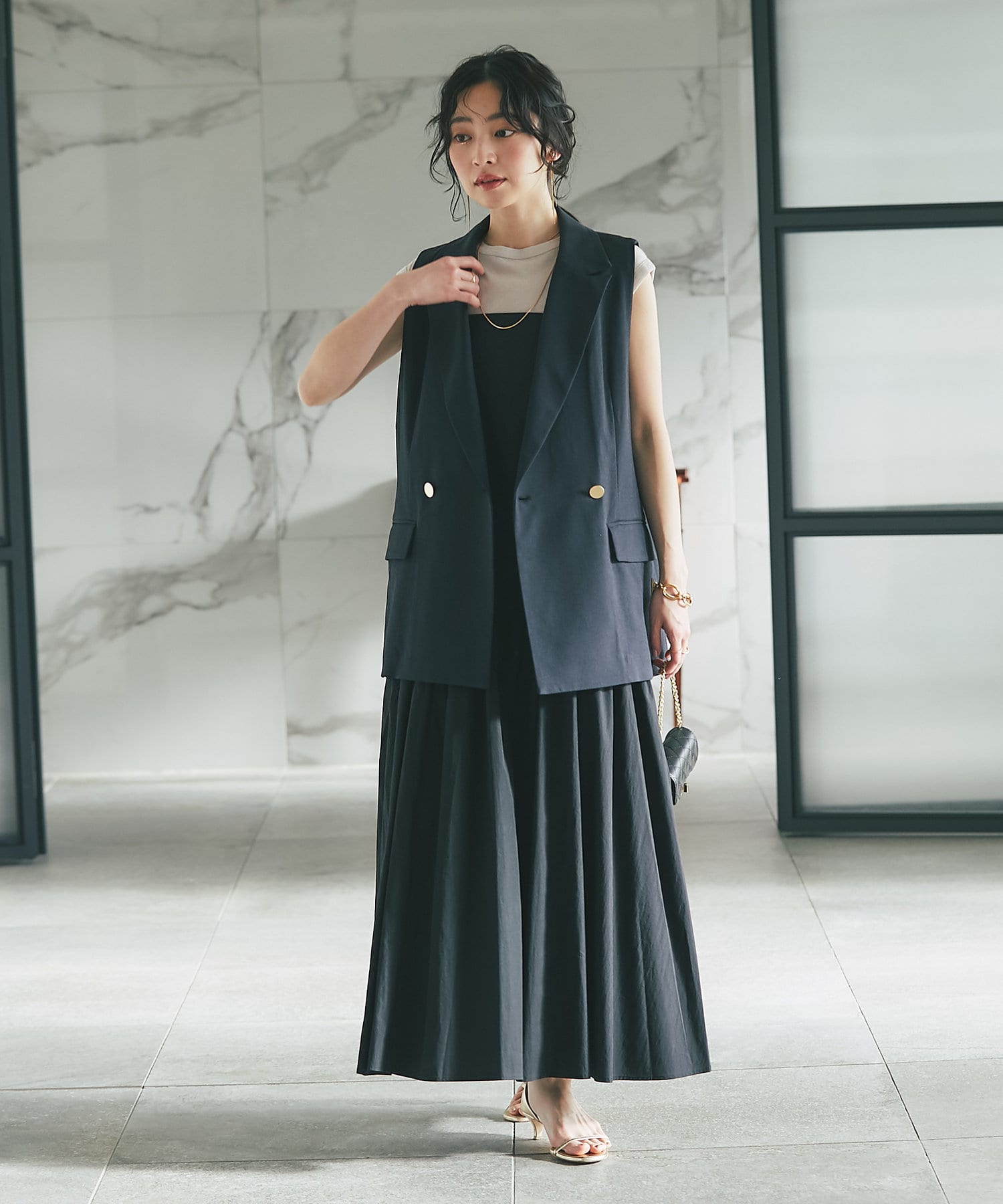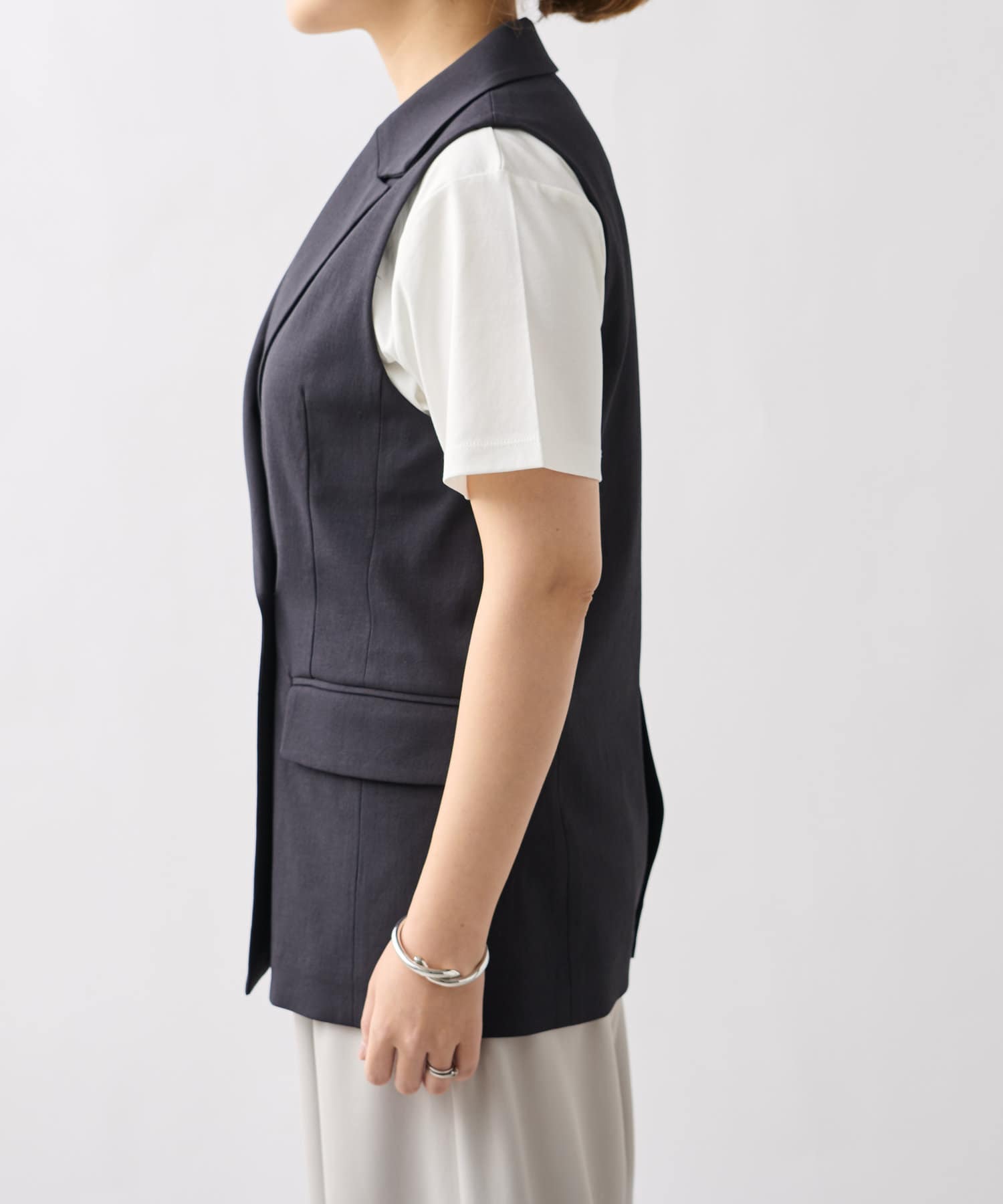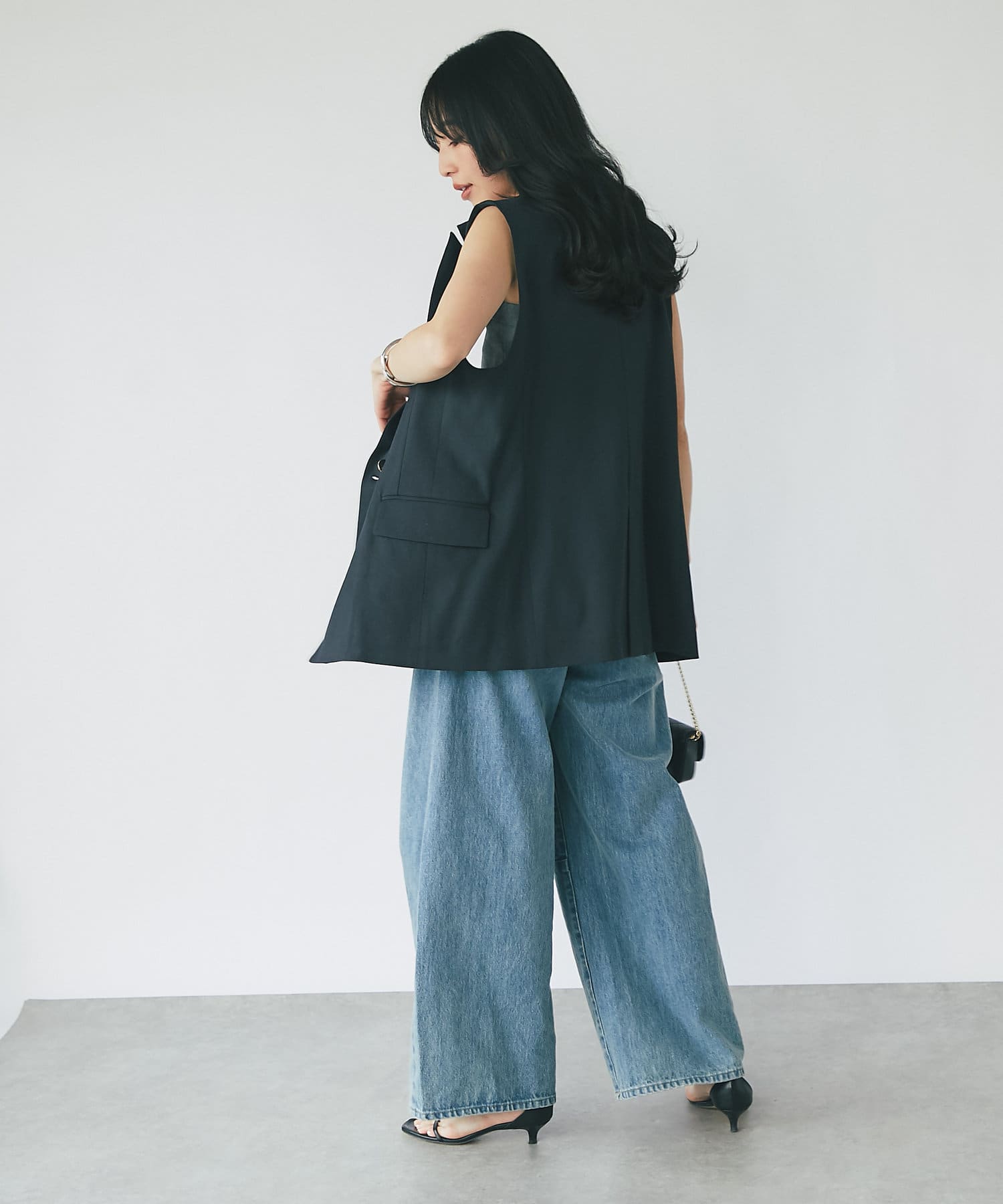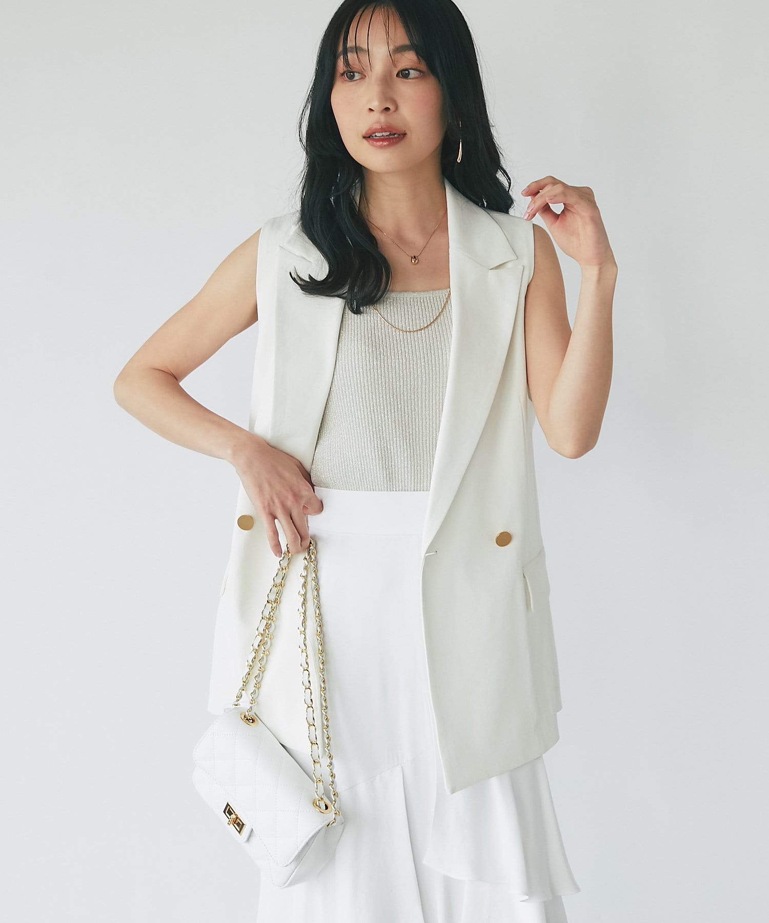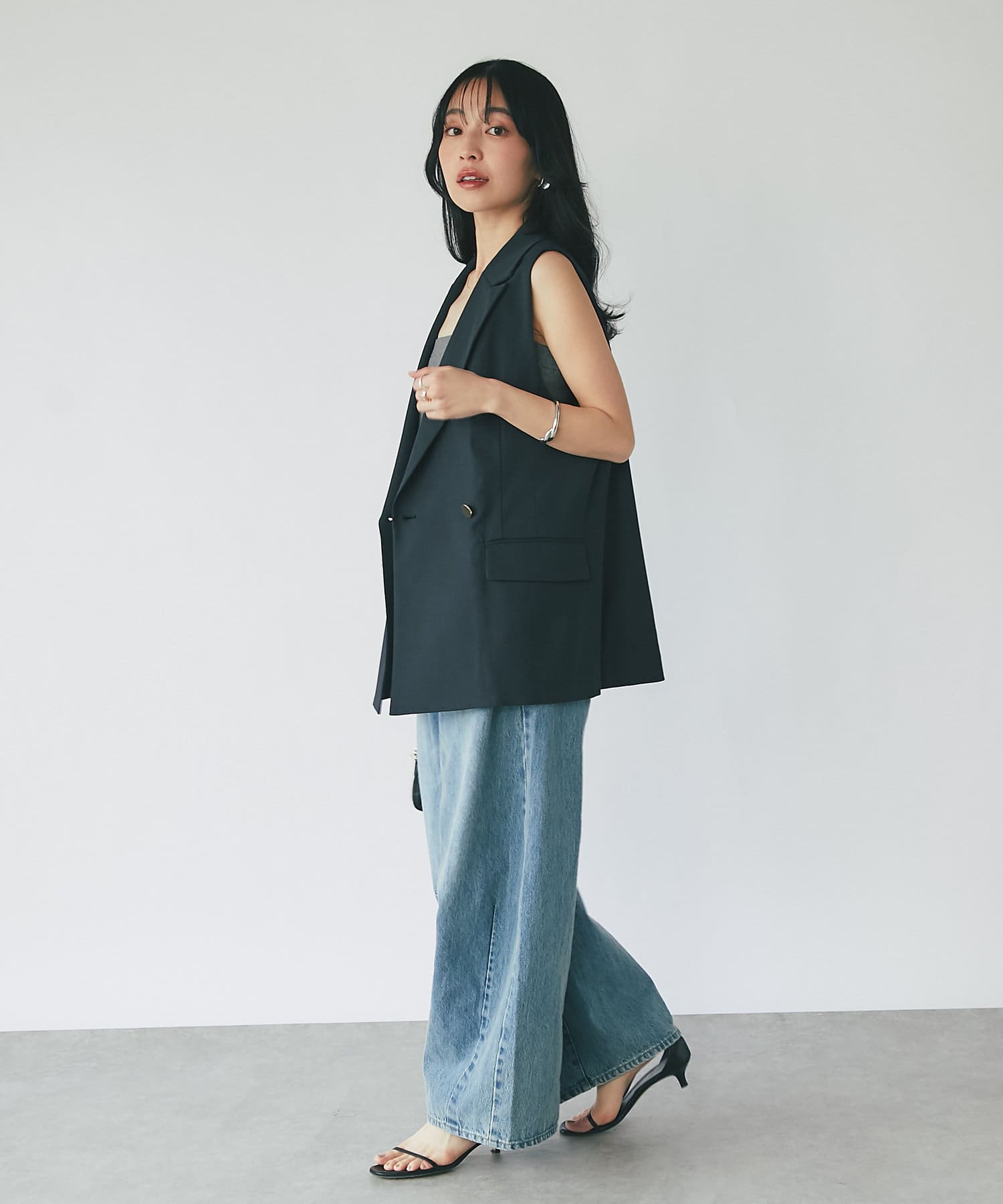 プラスワンするだけでこなれたスタイリングが完成するスリーブレスジャケット。