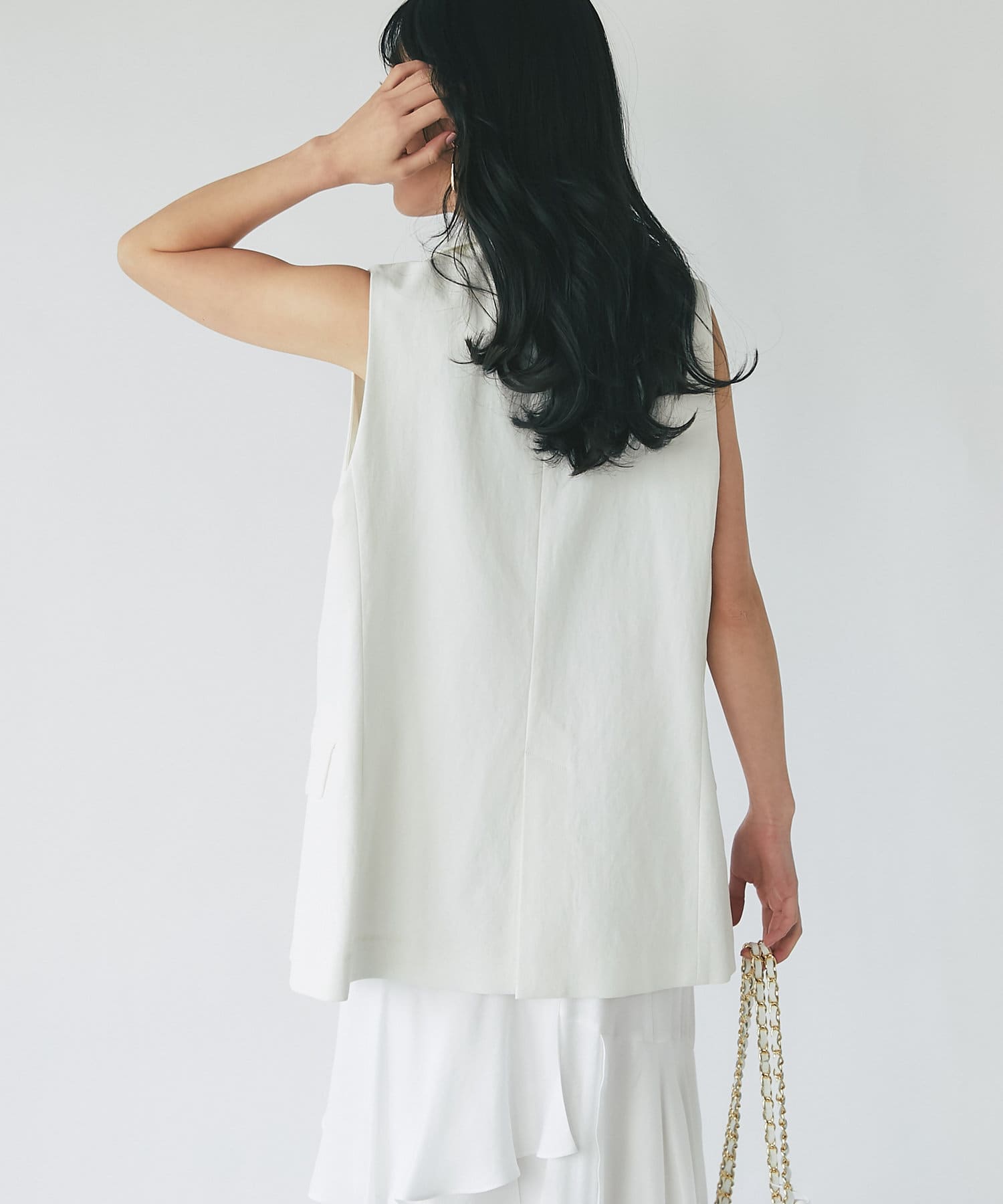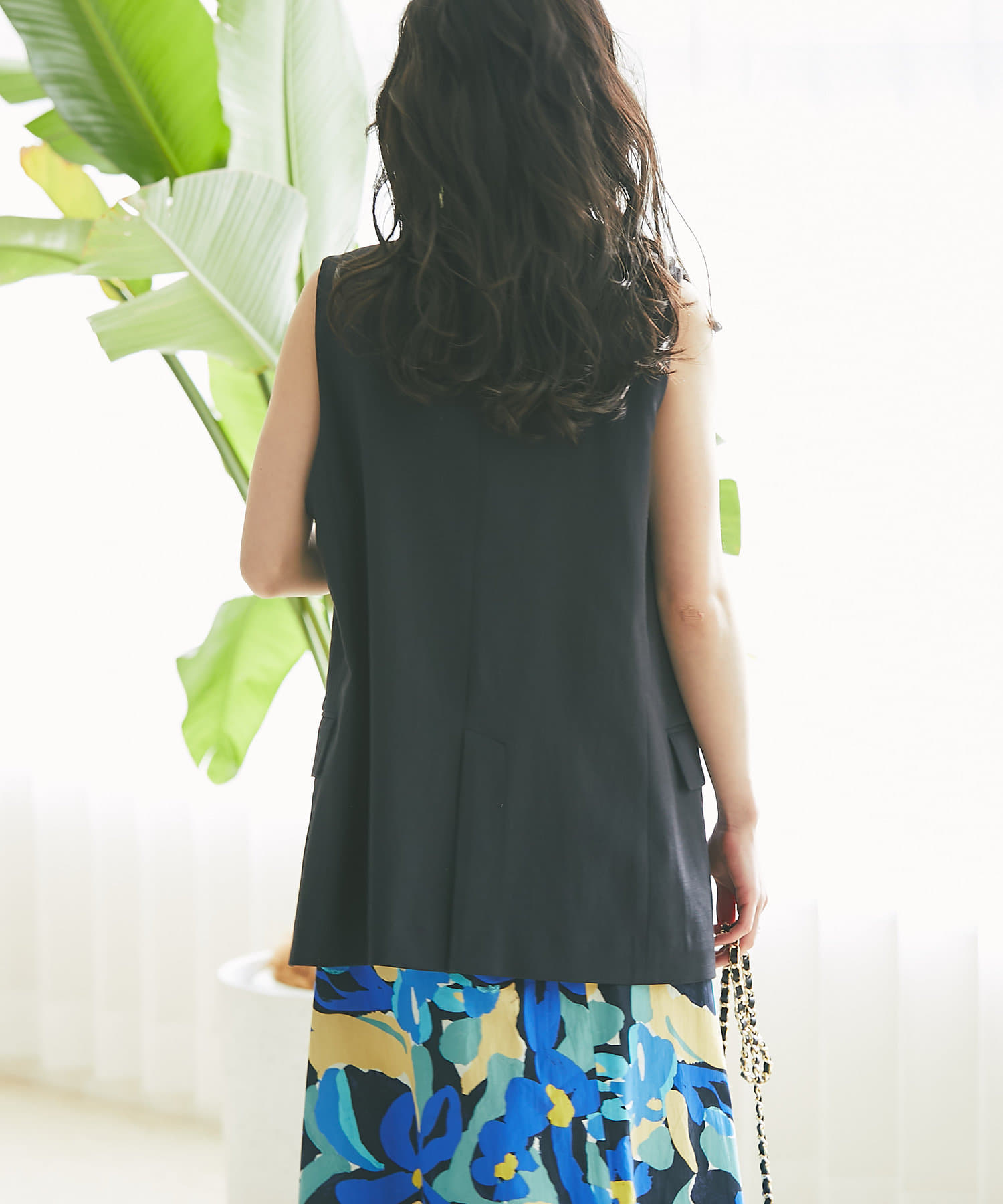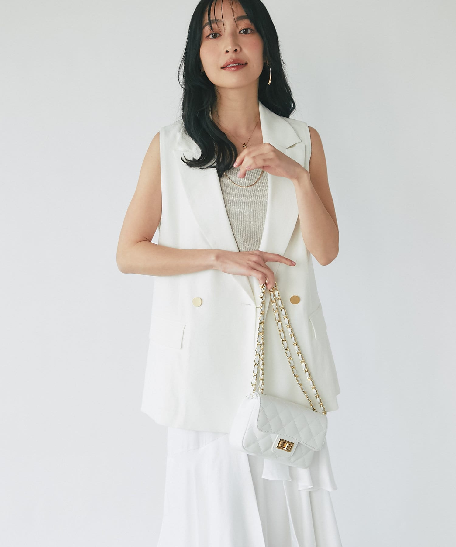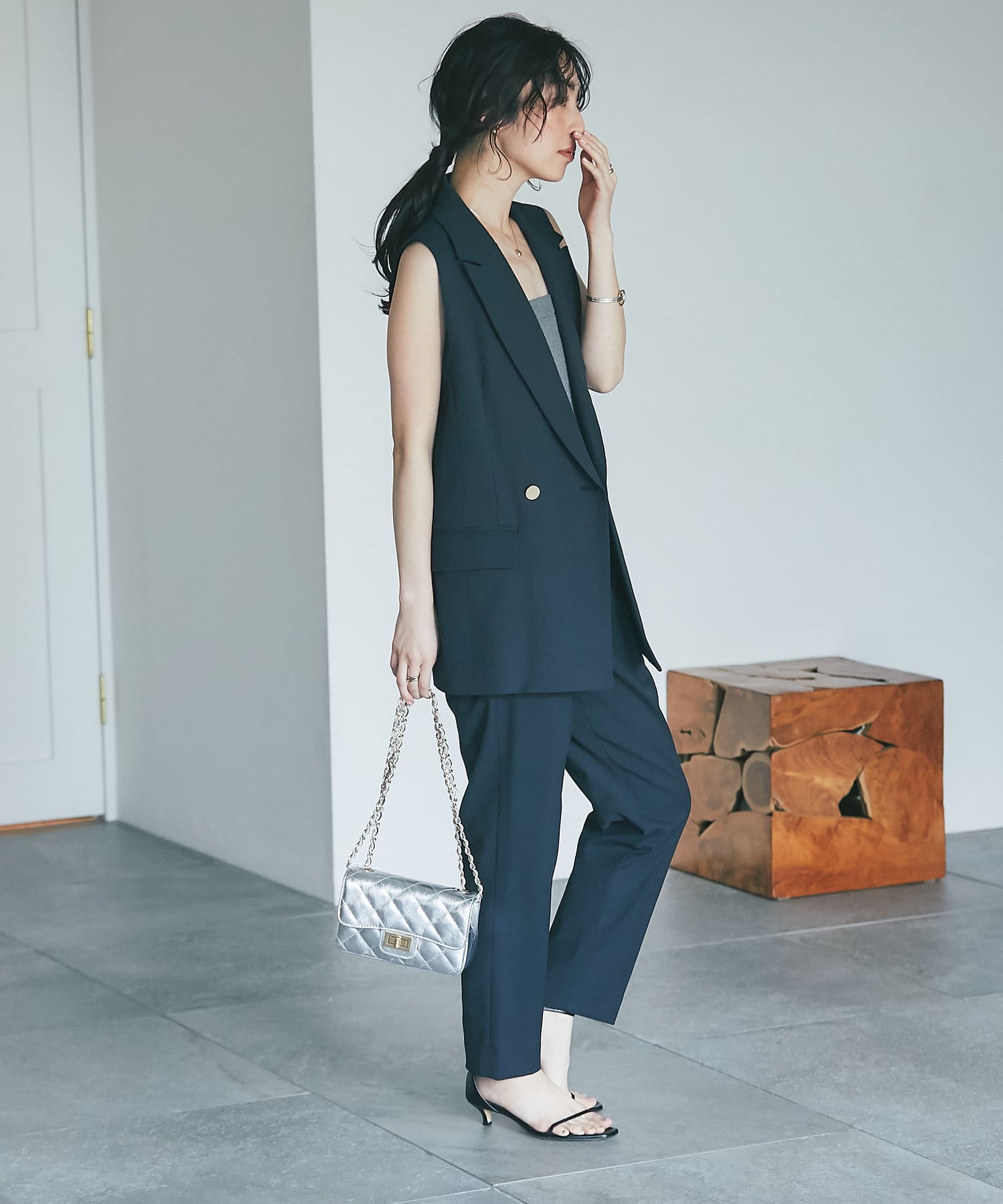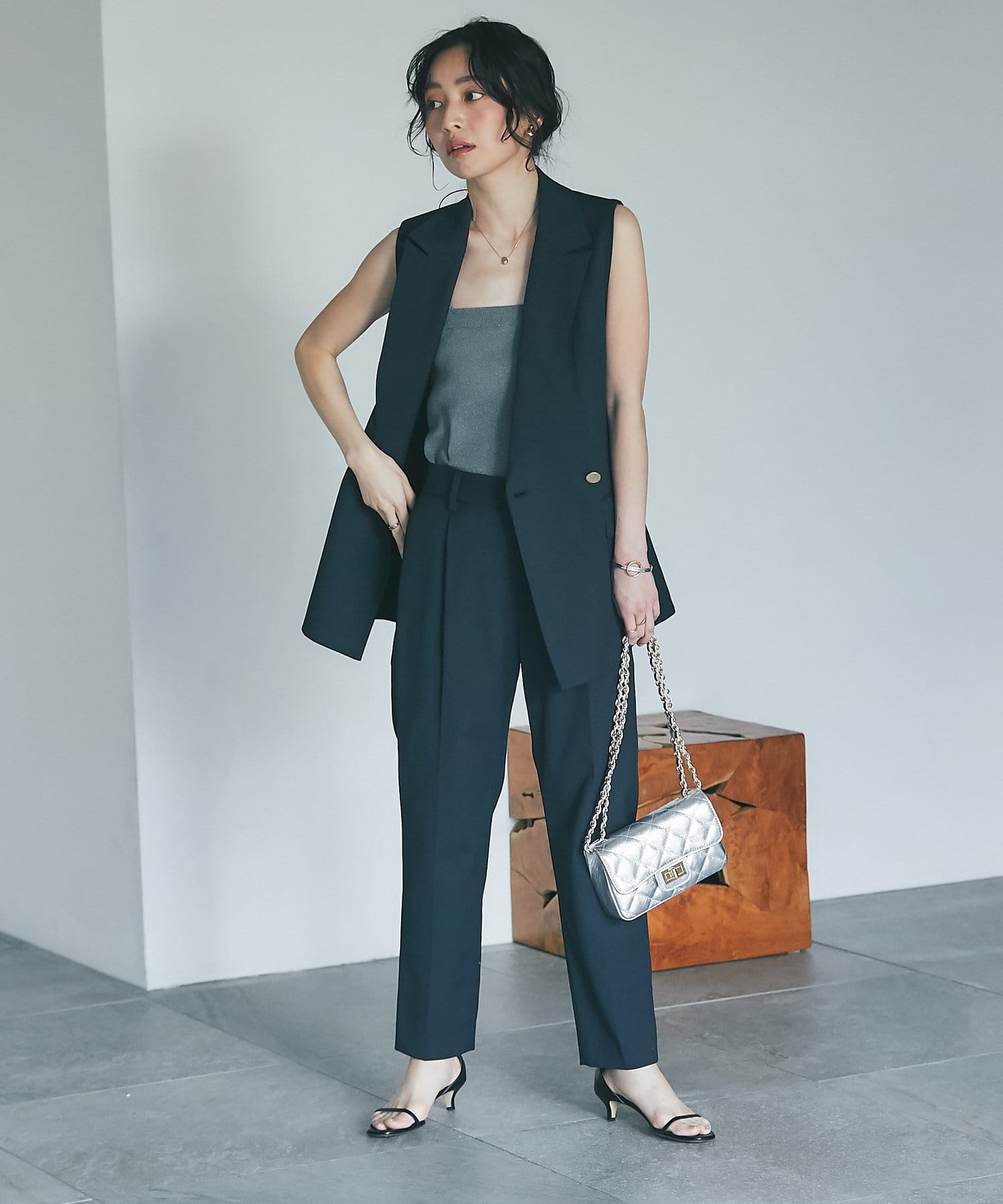 プラスワンするだけでこなれたスタイリングが完成するスリーブレスジャケット。