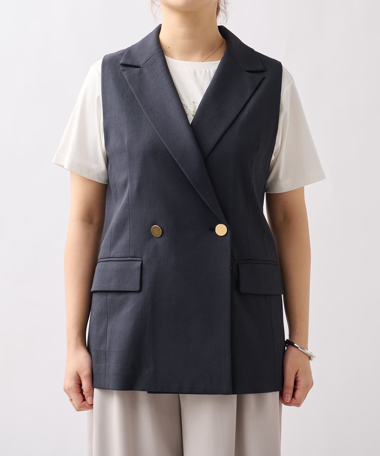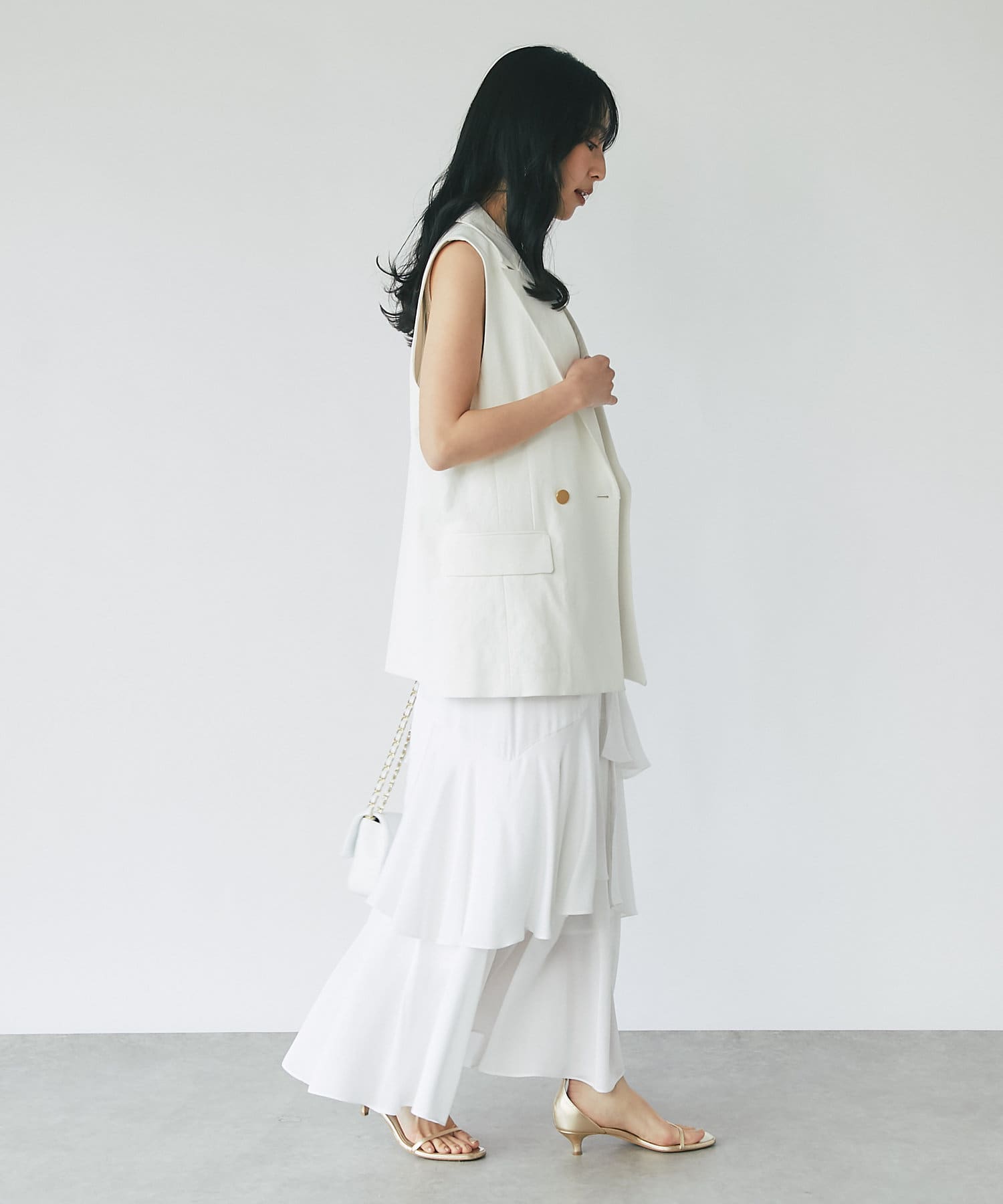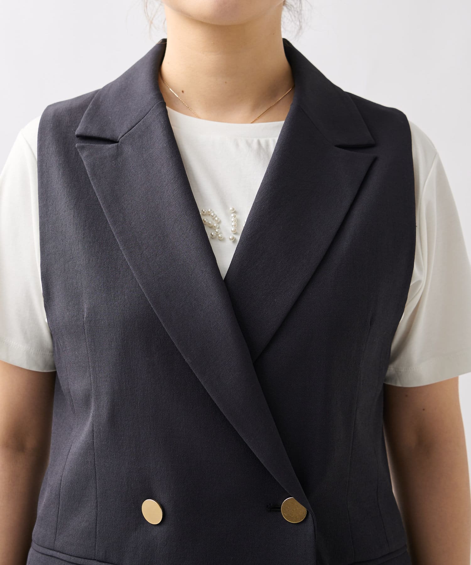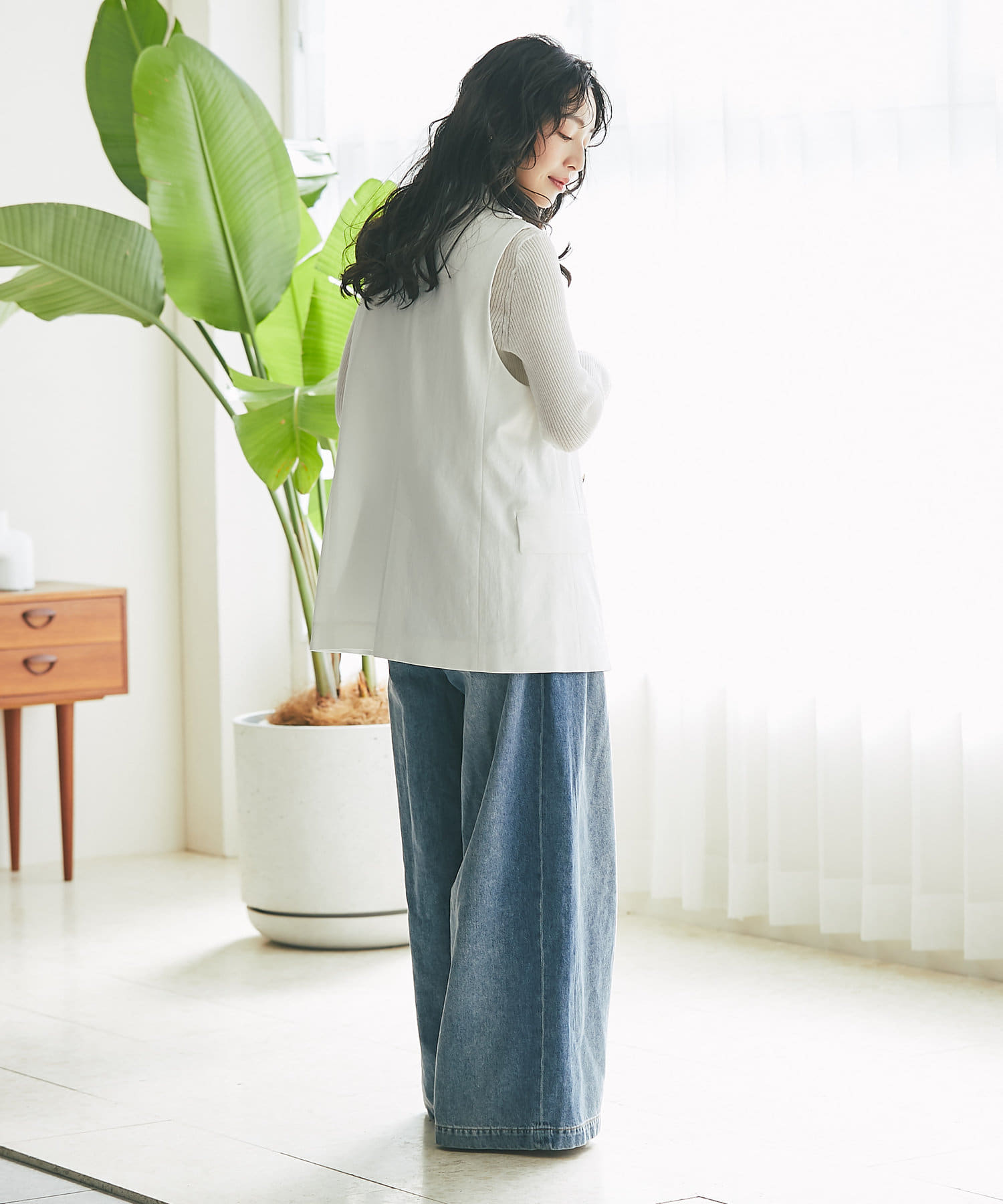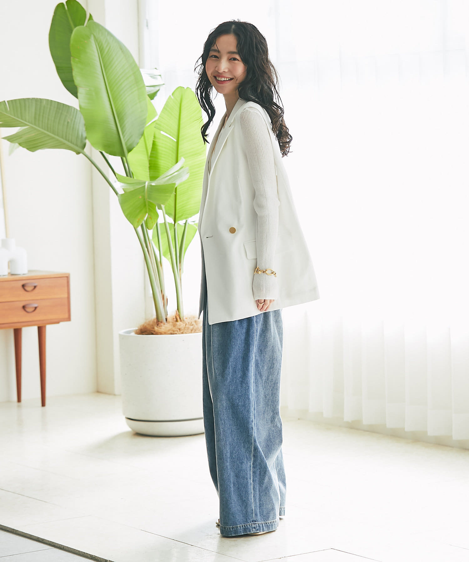 プラスワンするだけでこなれたスタイリングが完成するスリーブレスジャケット。