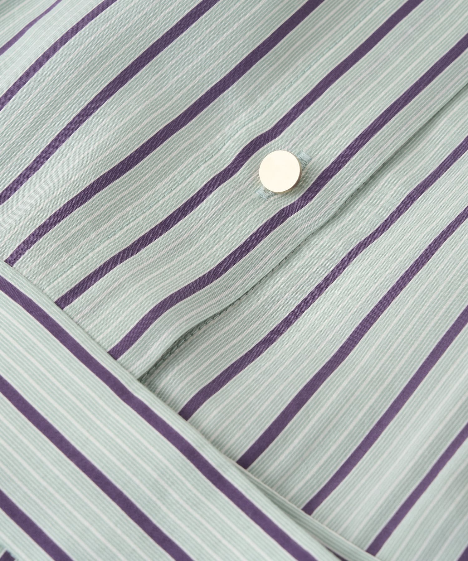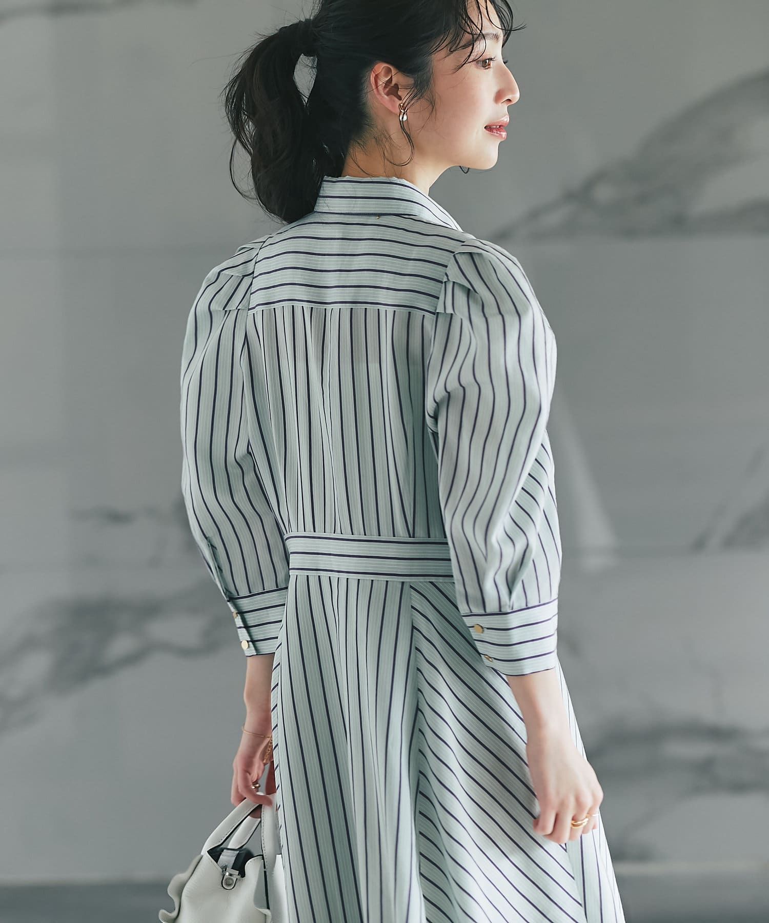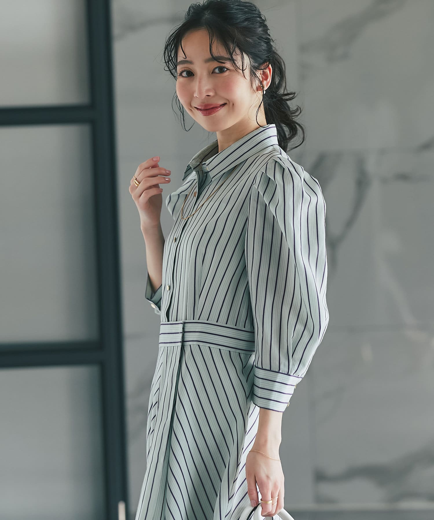 ミントカラーのストライプ柄が品よく爽やかで春らしい1枚。
