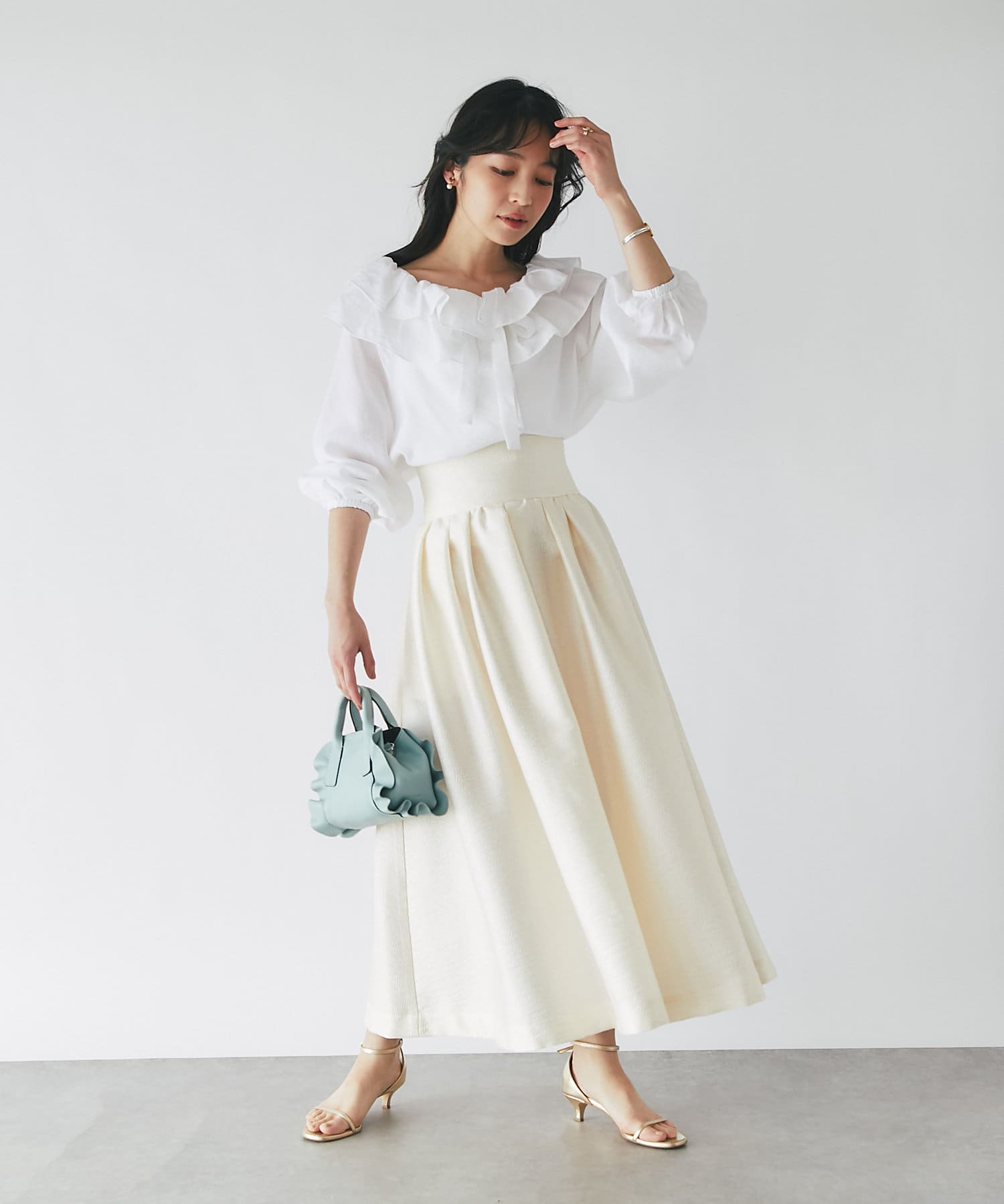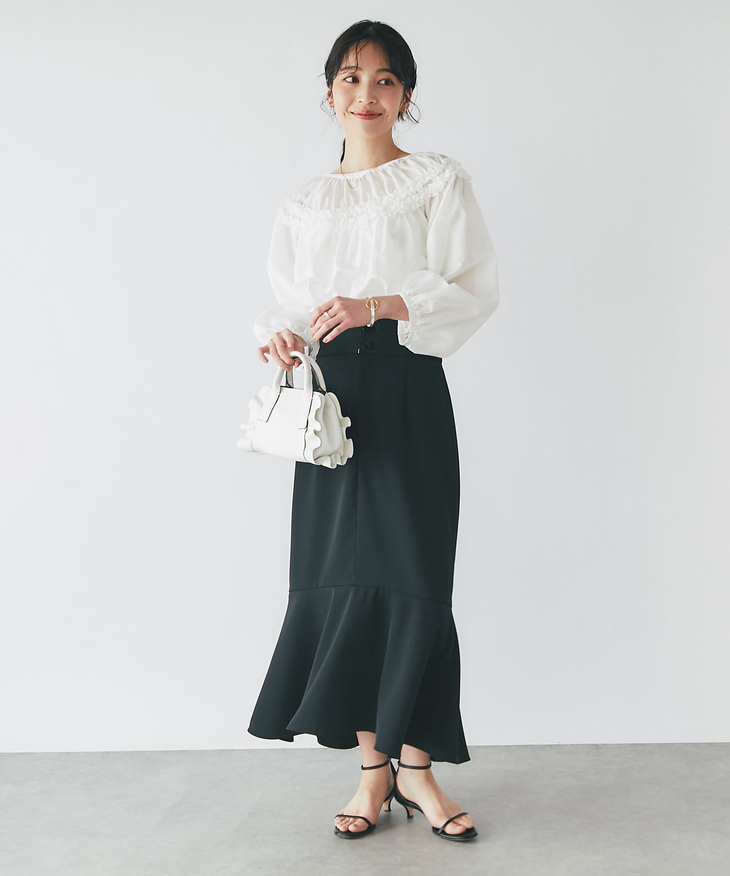 コーデに取り入れるだけど大人かわいいが叶うフリルバッグ。