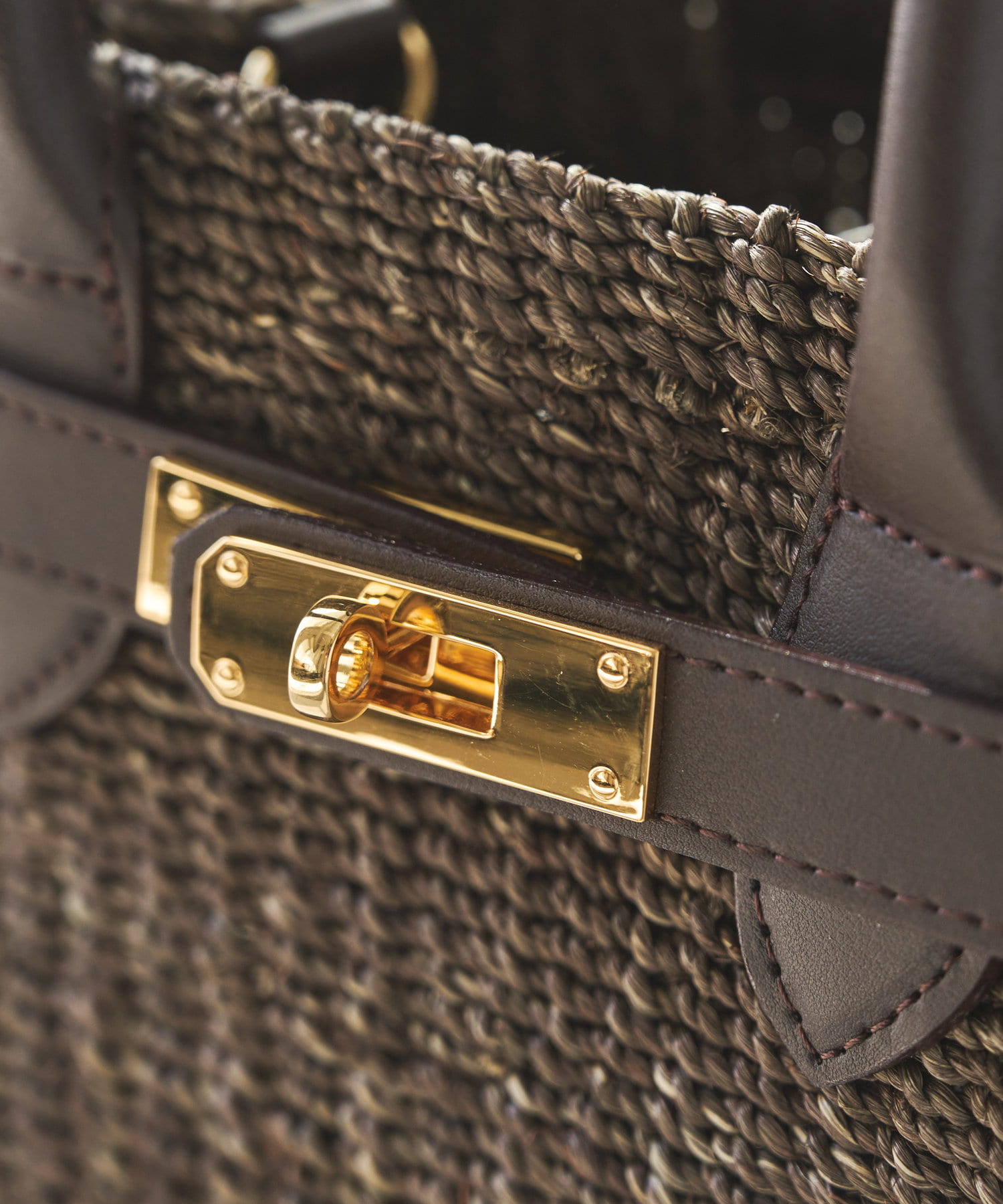 レザーハンドルとゴールドの金具が上品な印象のかごバッグ