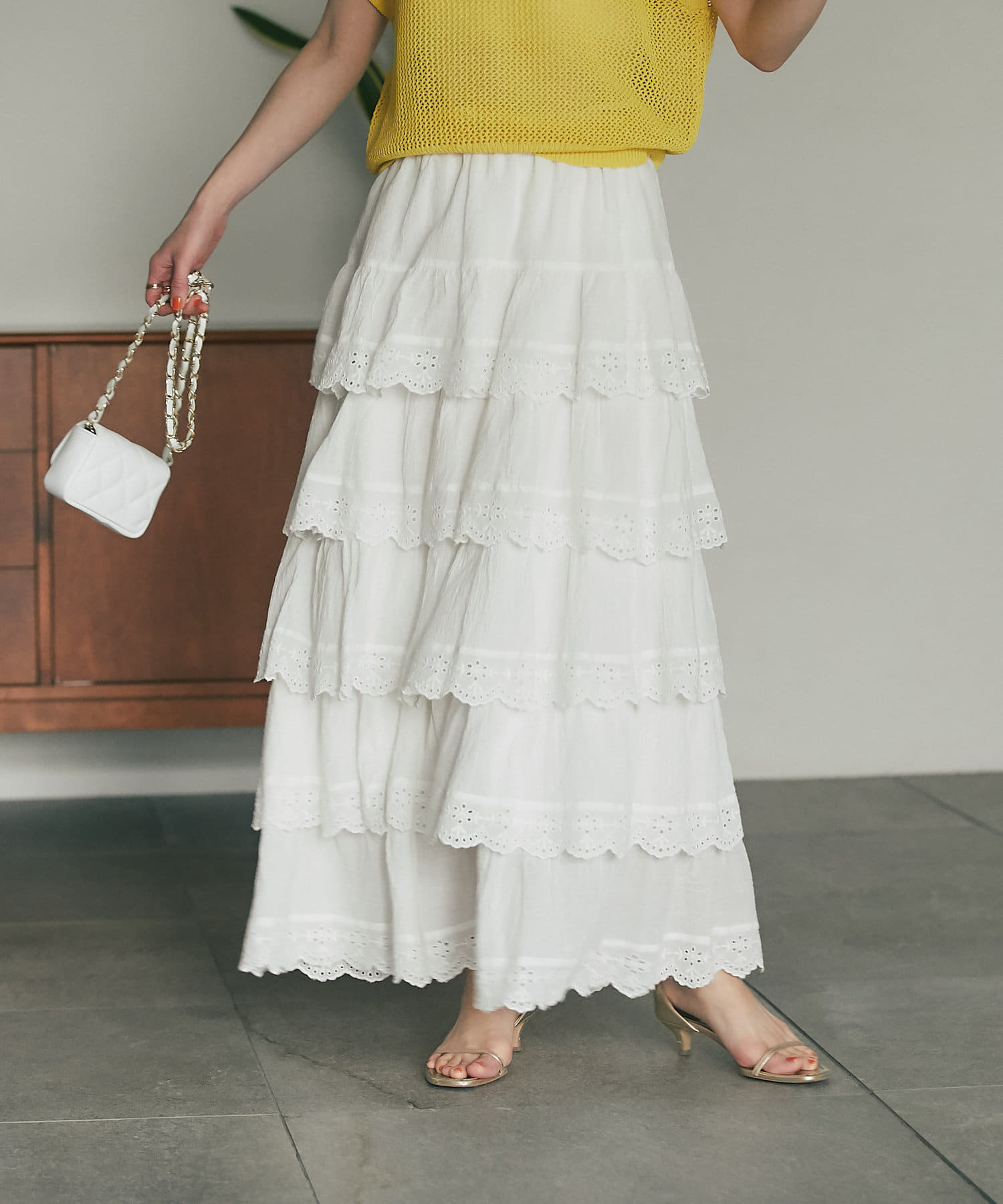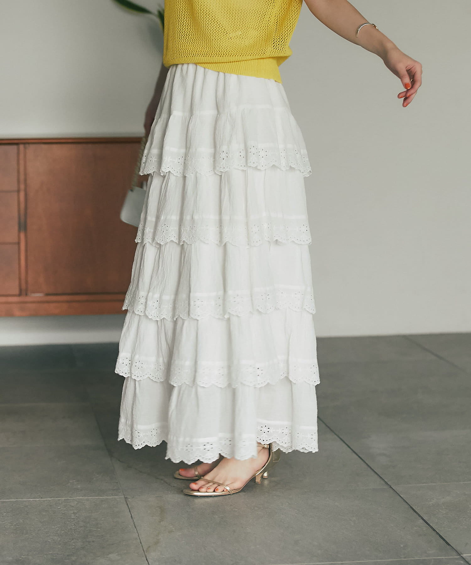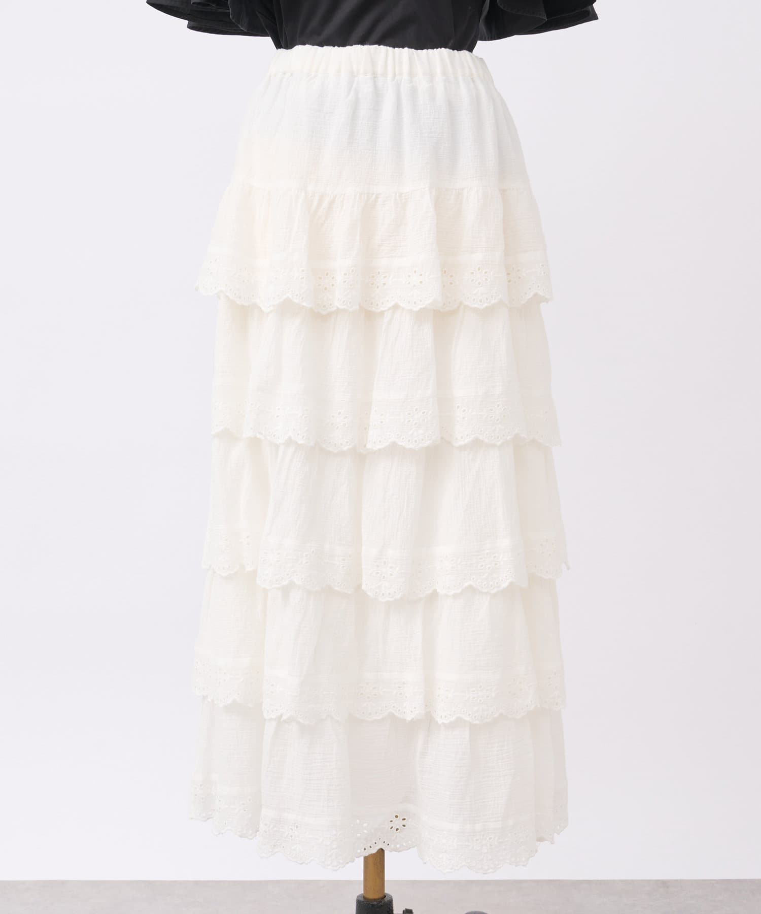スカラップレースティアードマキシスカート
