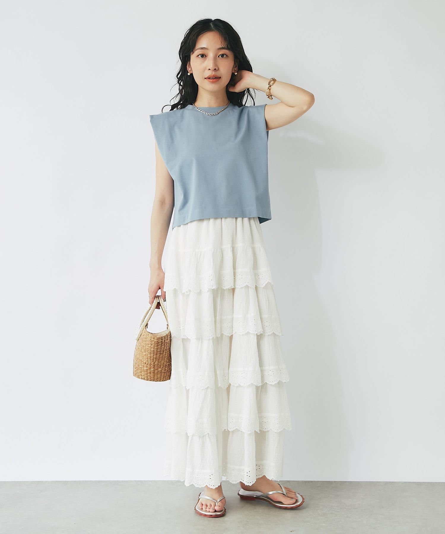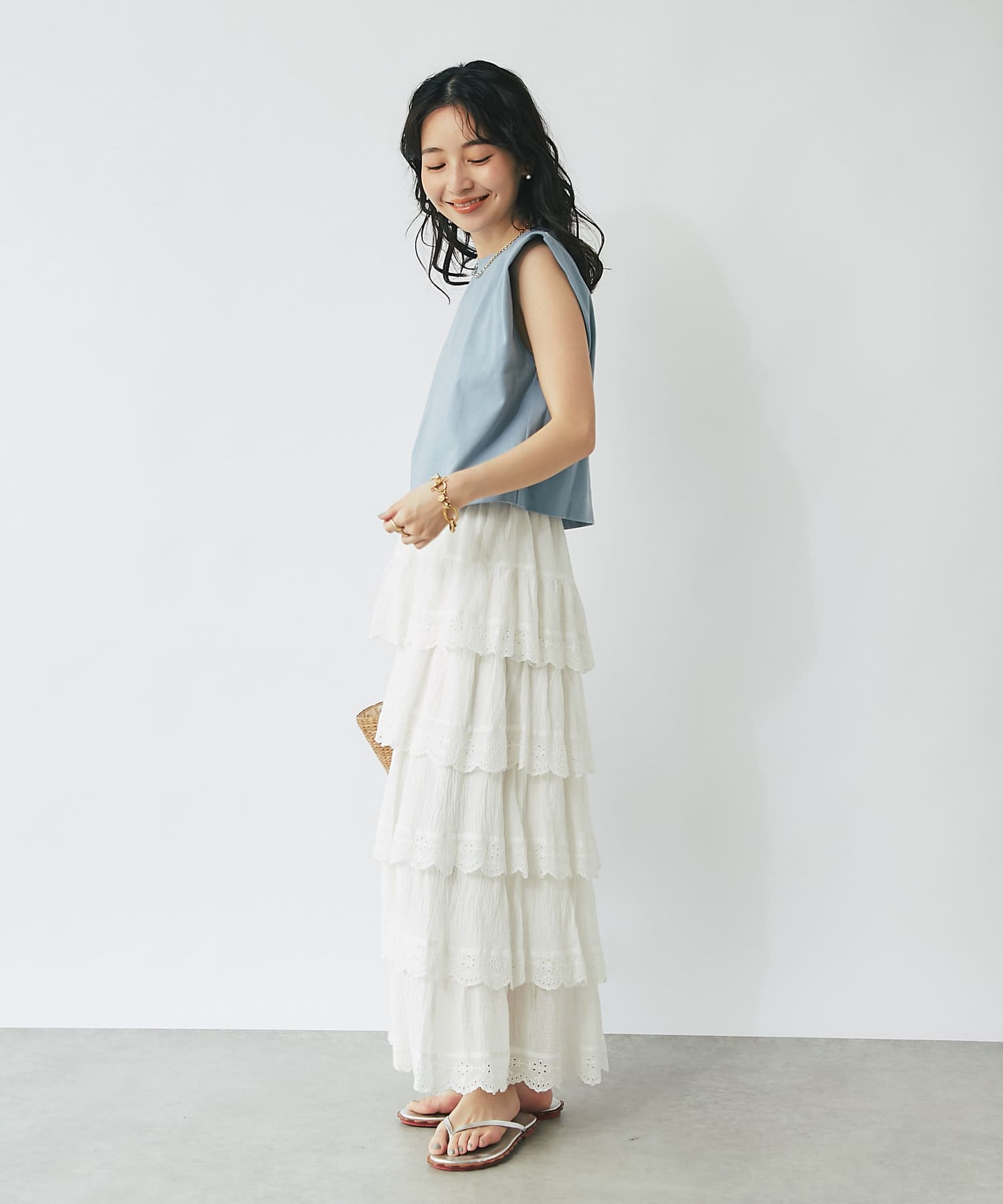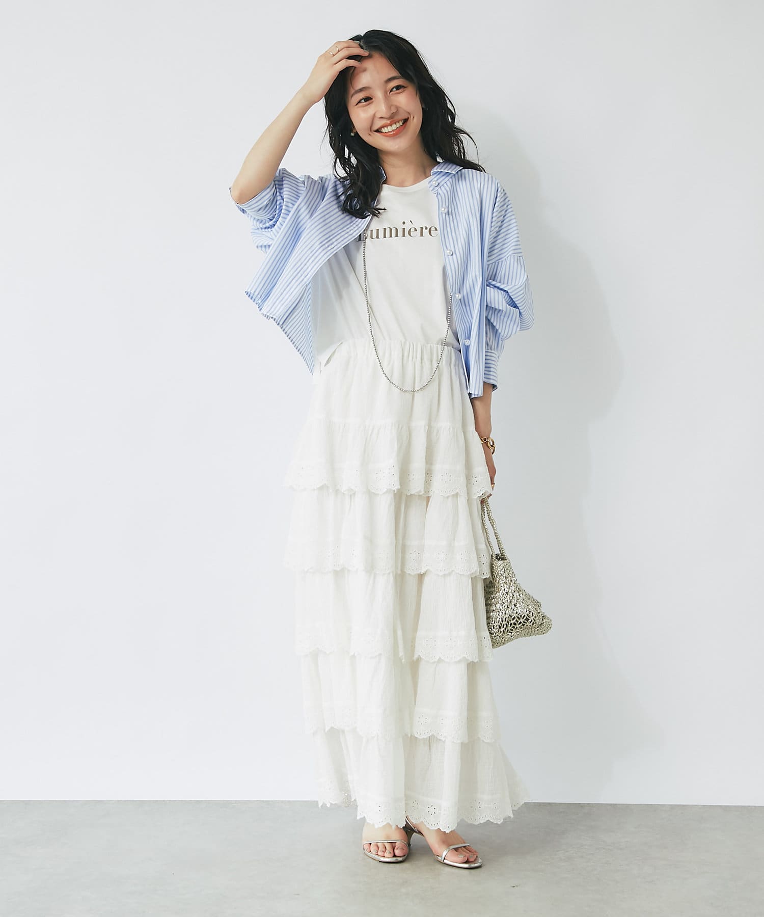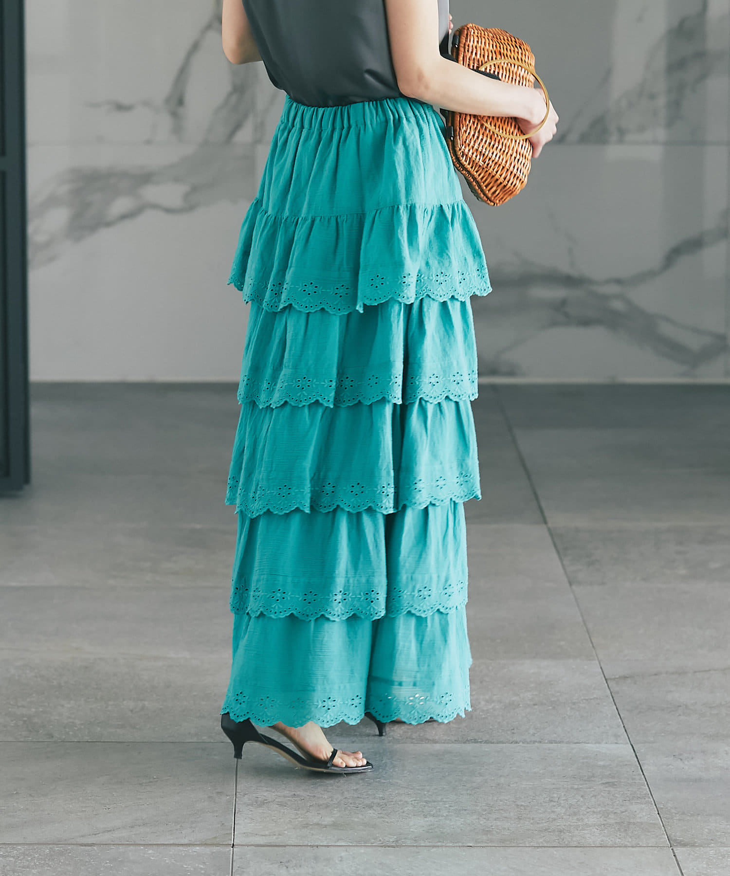 スカラップレースティアードマキシスカート