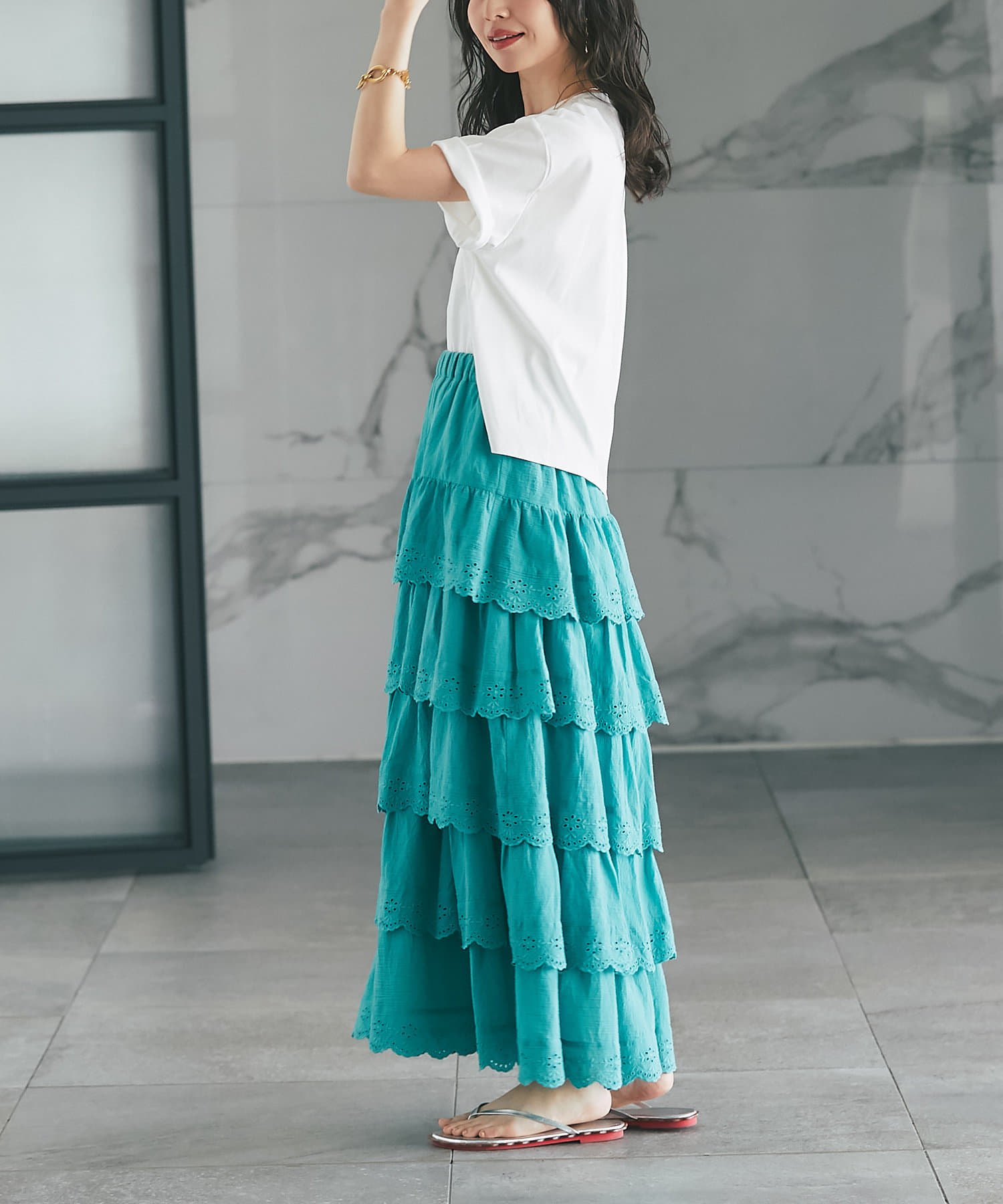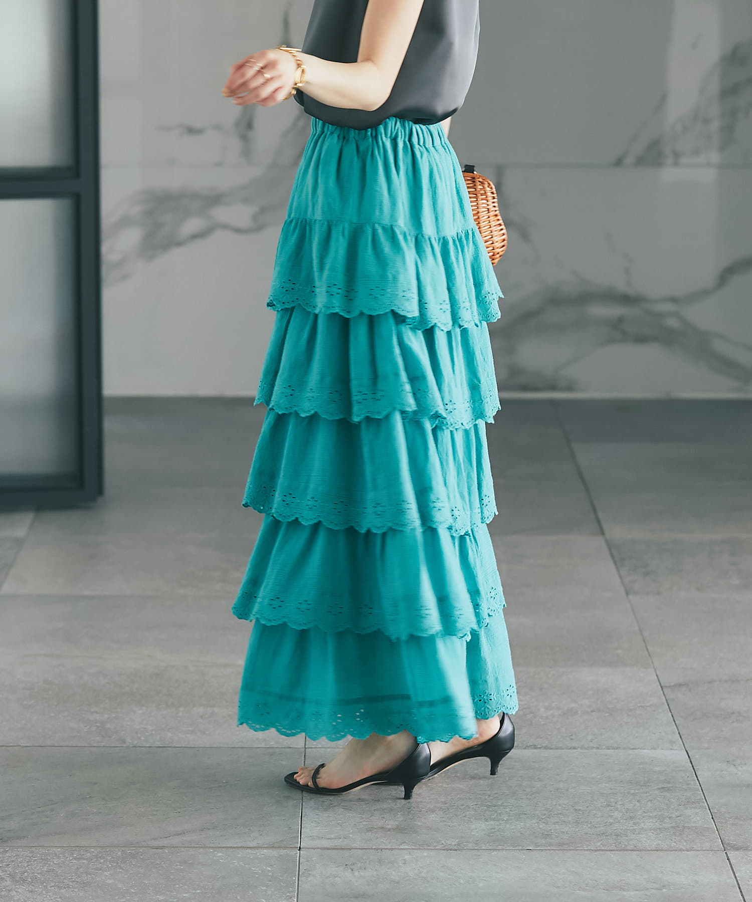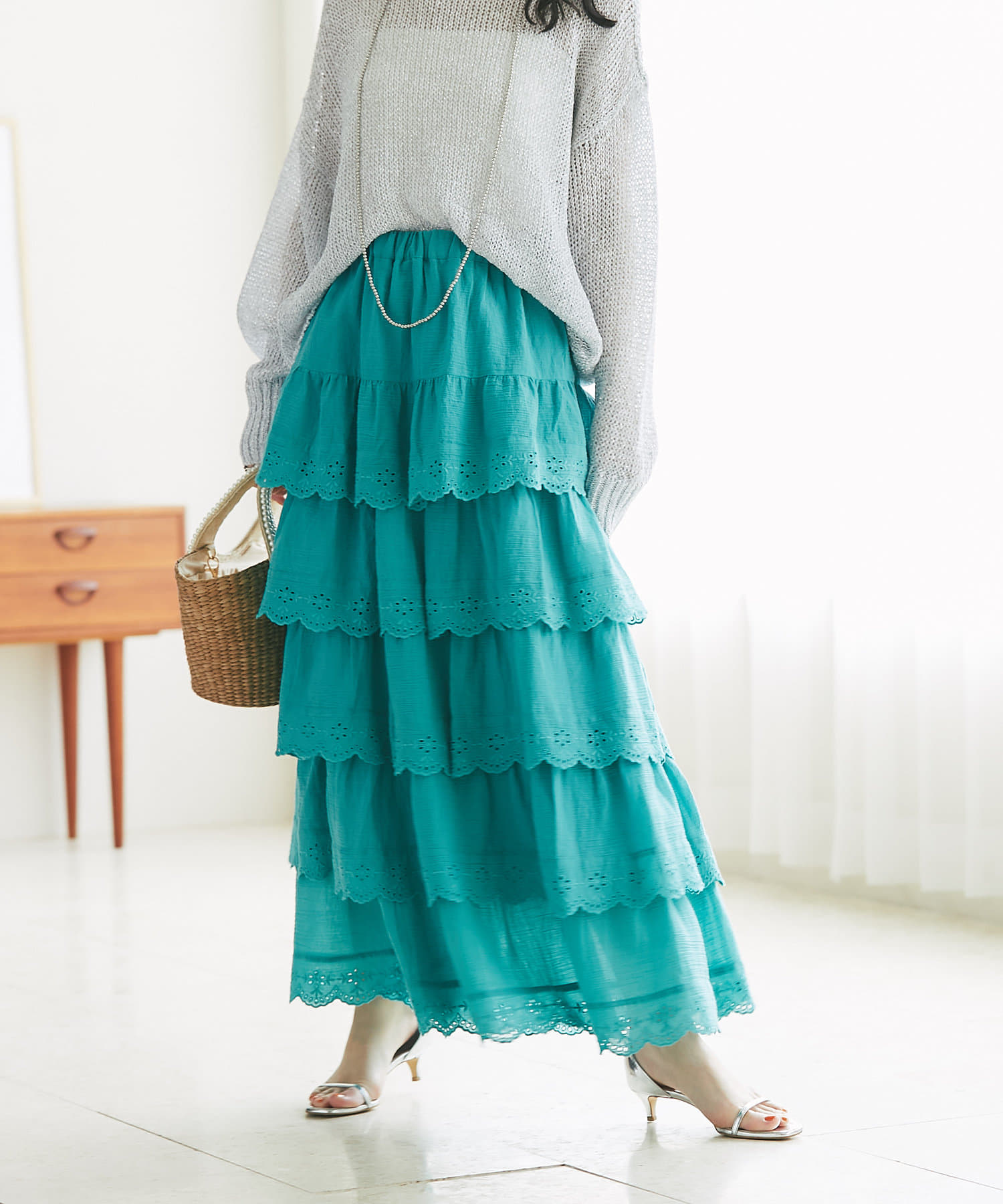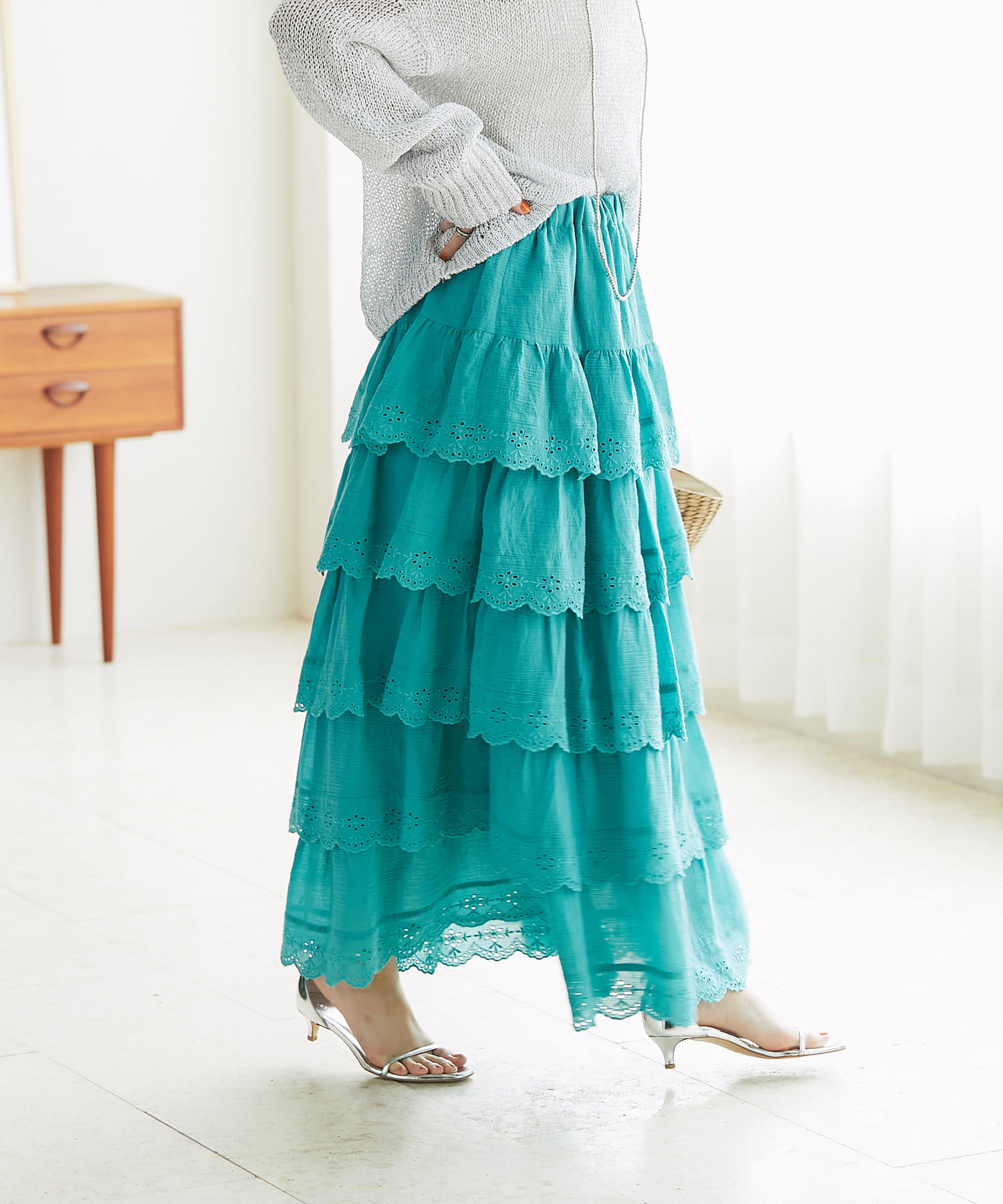 6段ティアードが動くたびに揺れて華やかな主役級アイテムです。