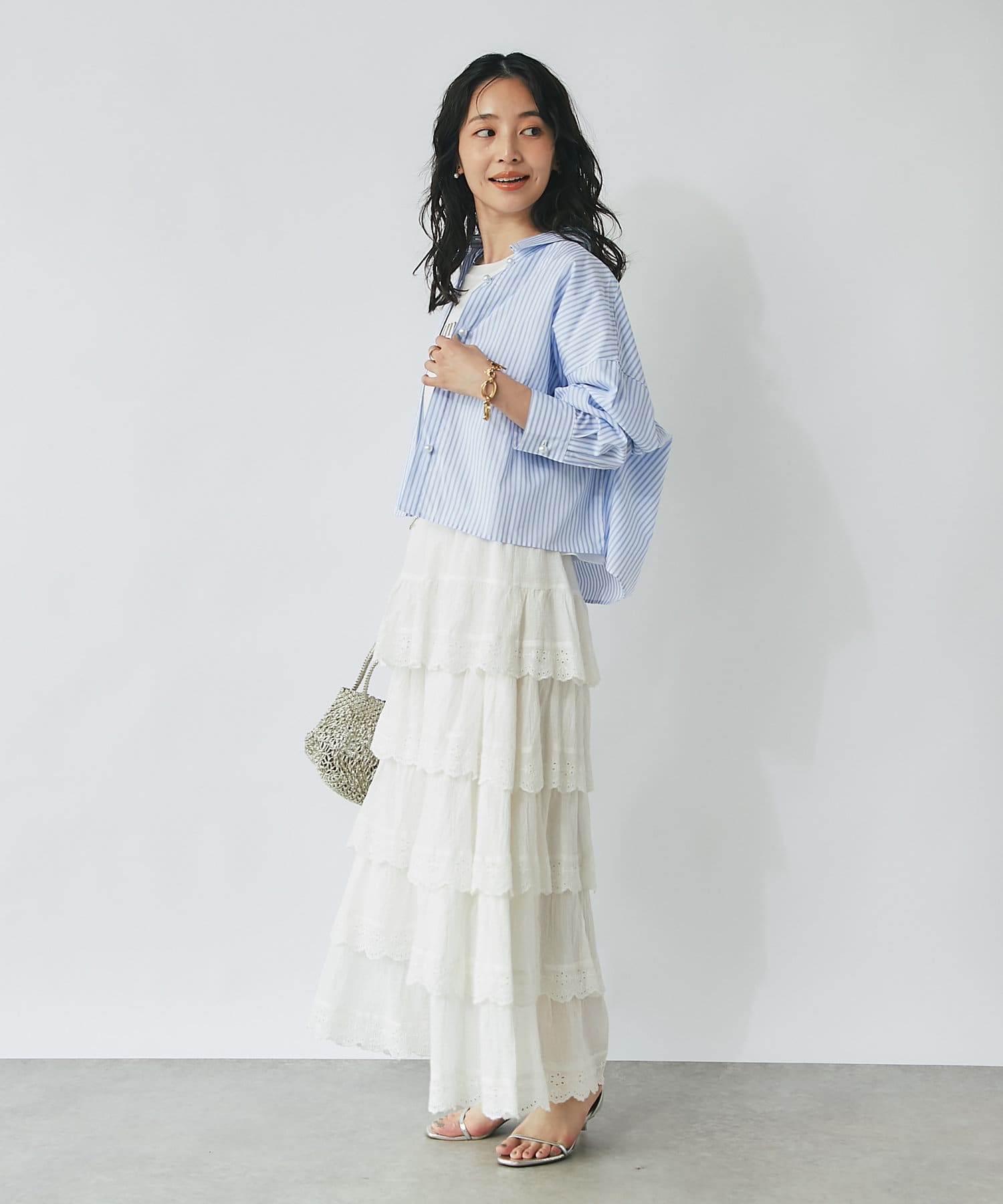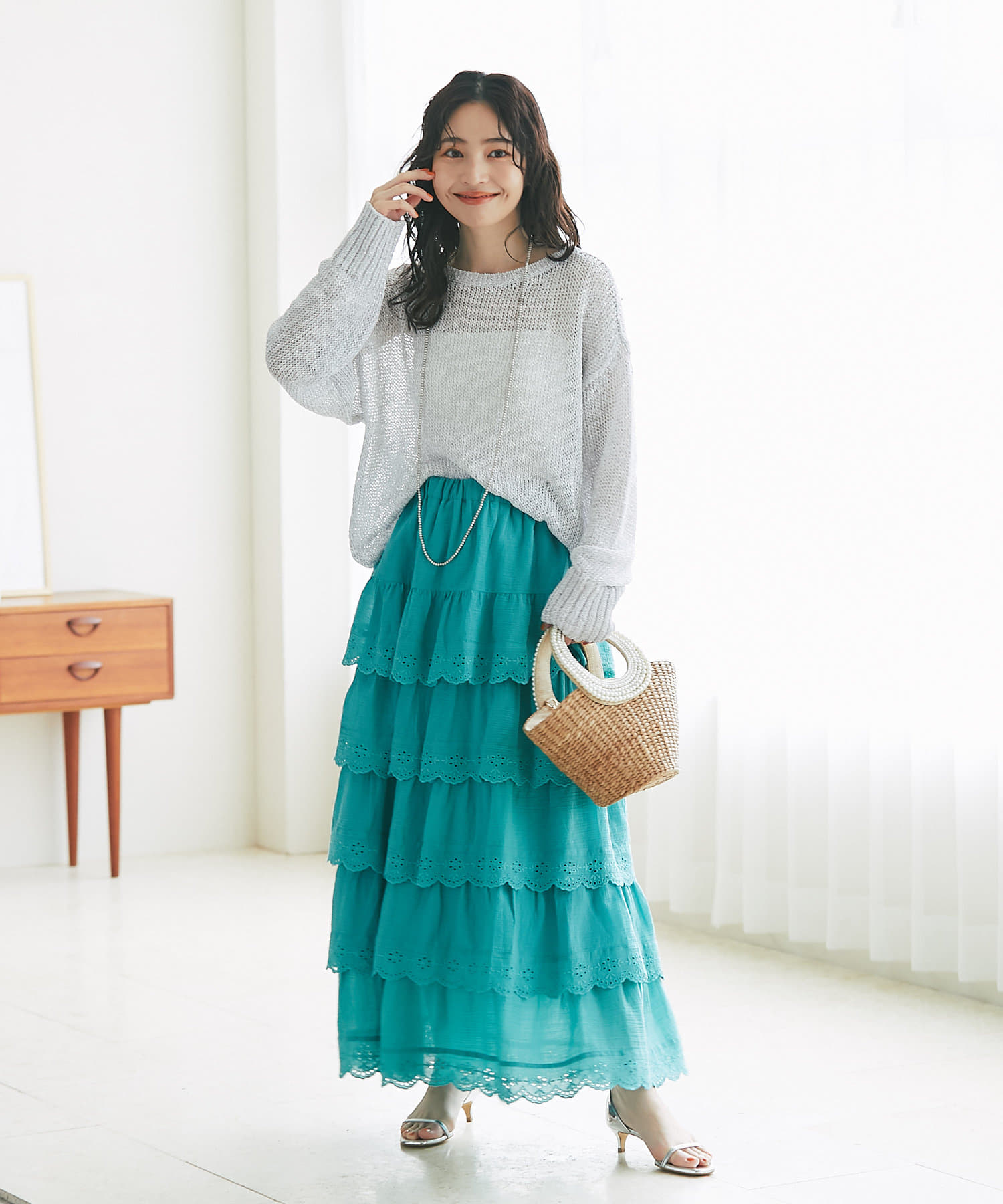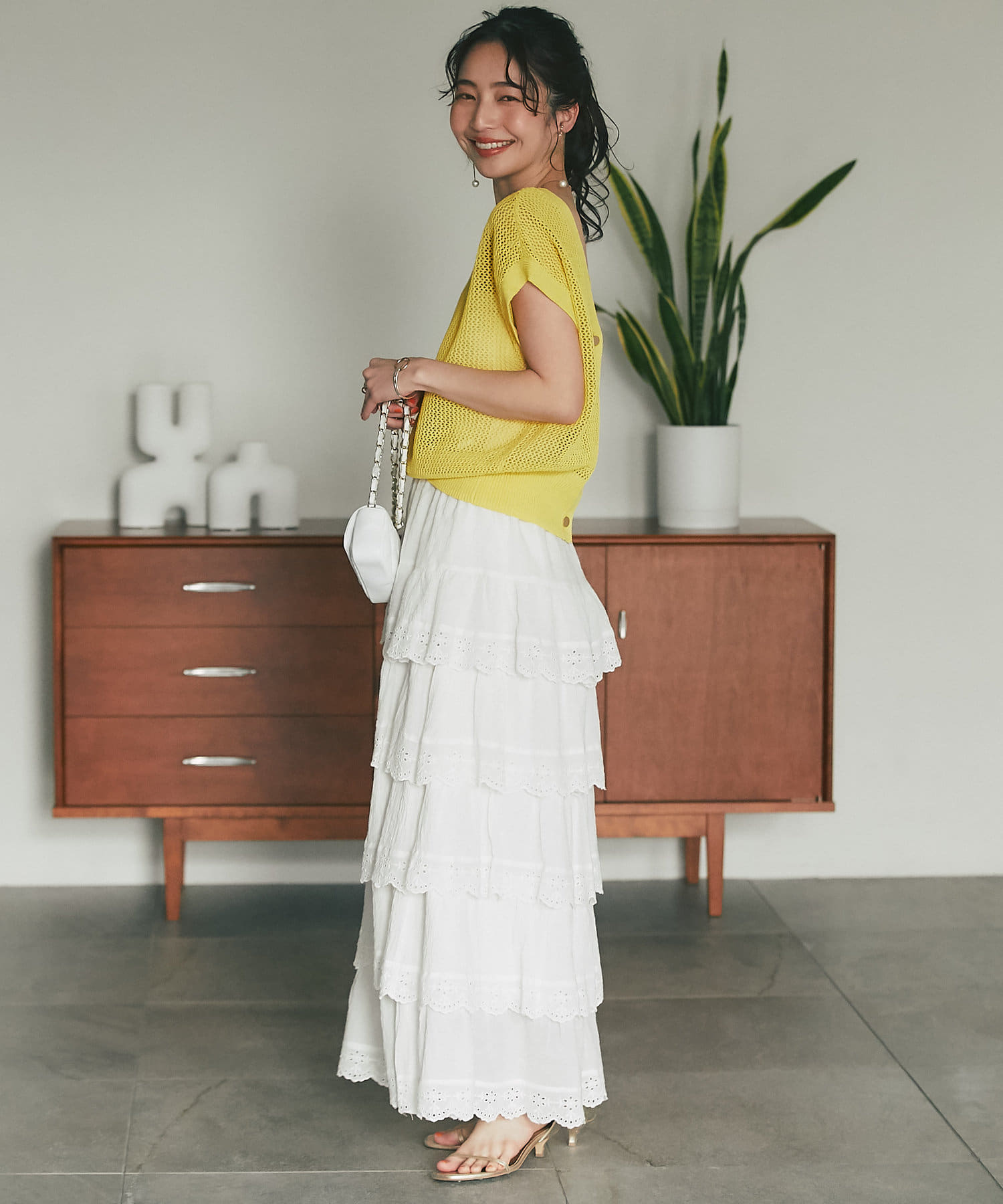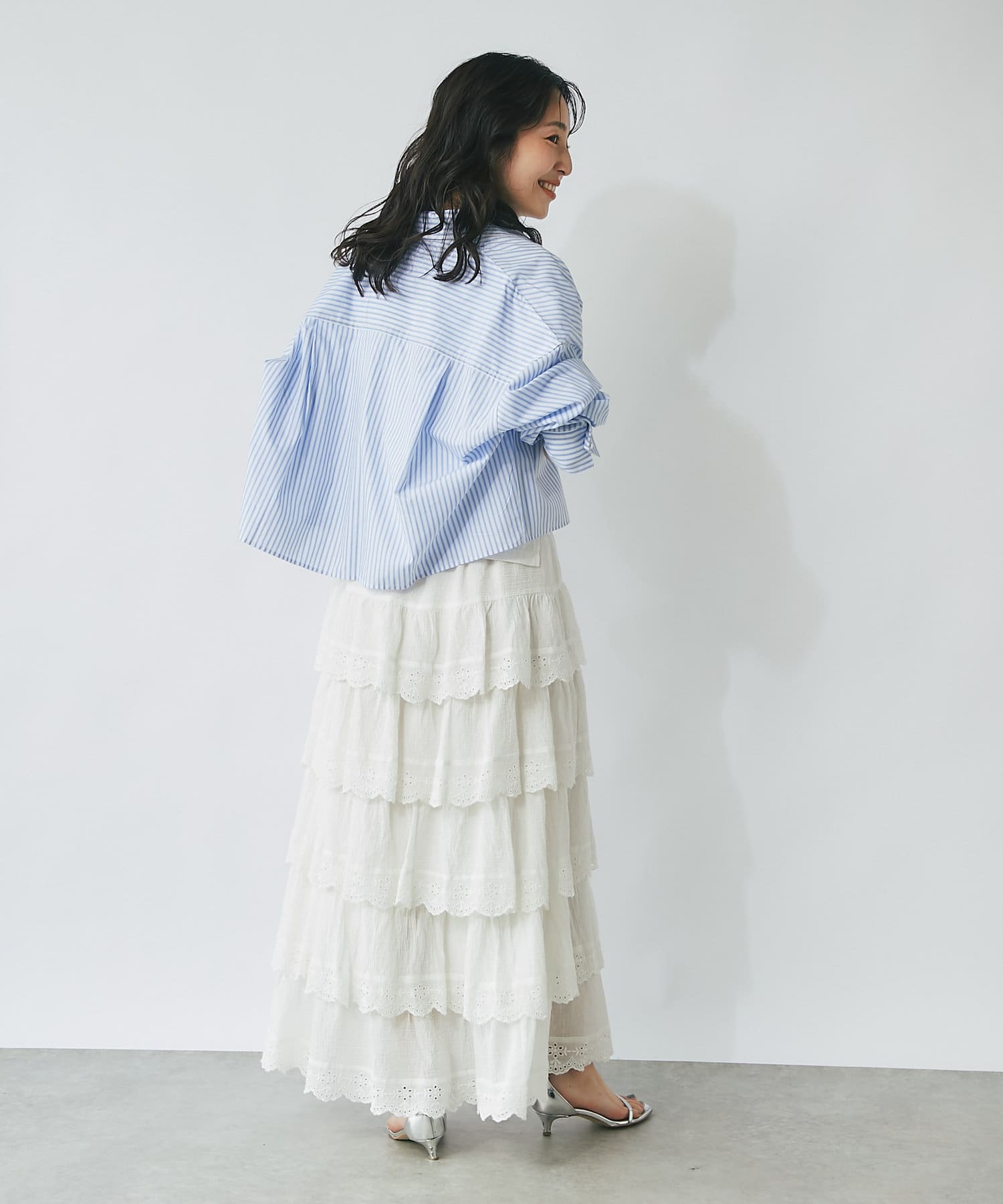 6段ティアードが動くたびに揺れて華やかな主役級アイテムです。