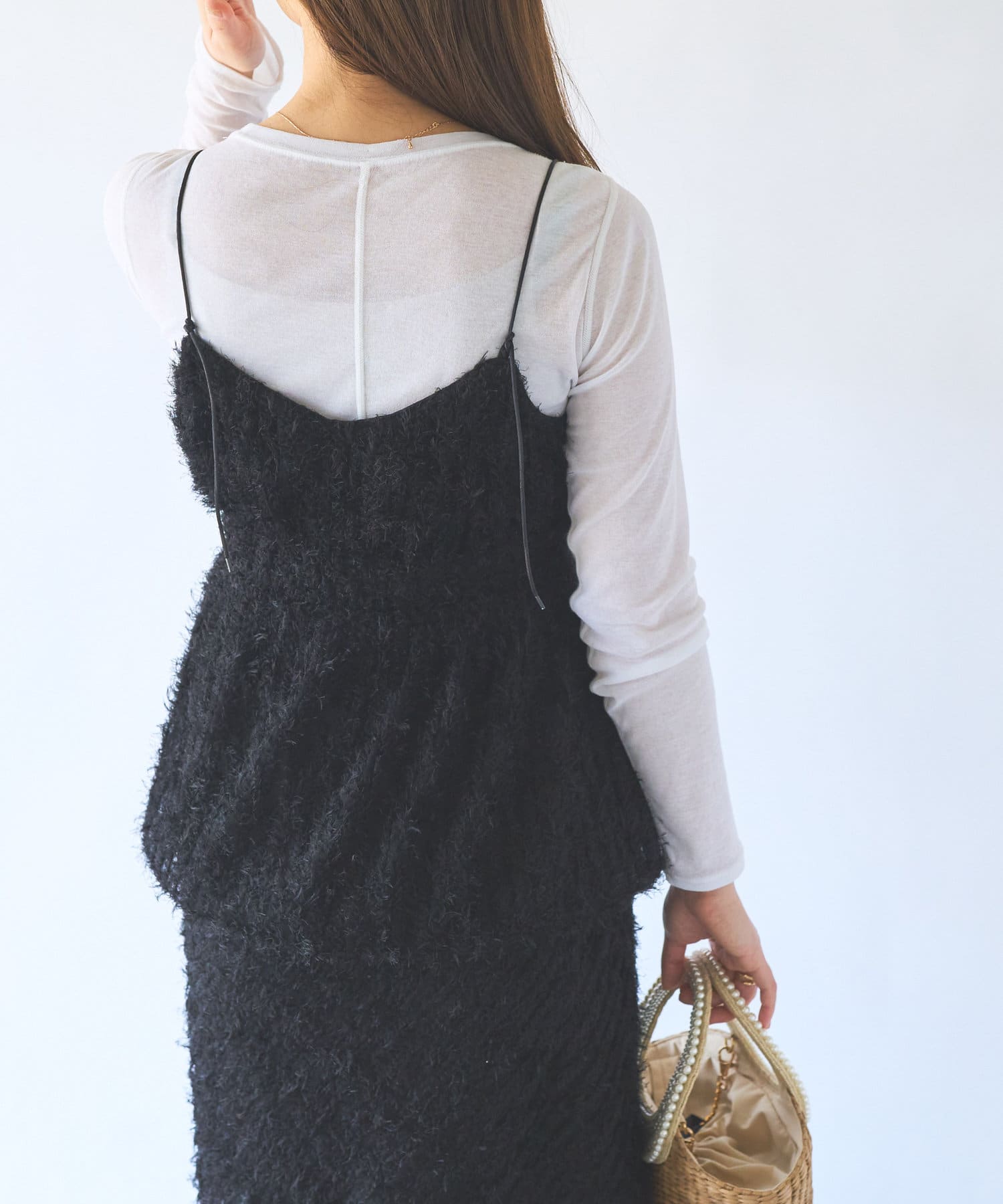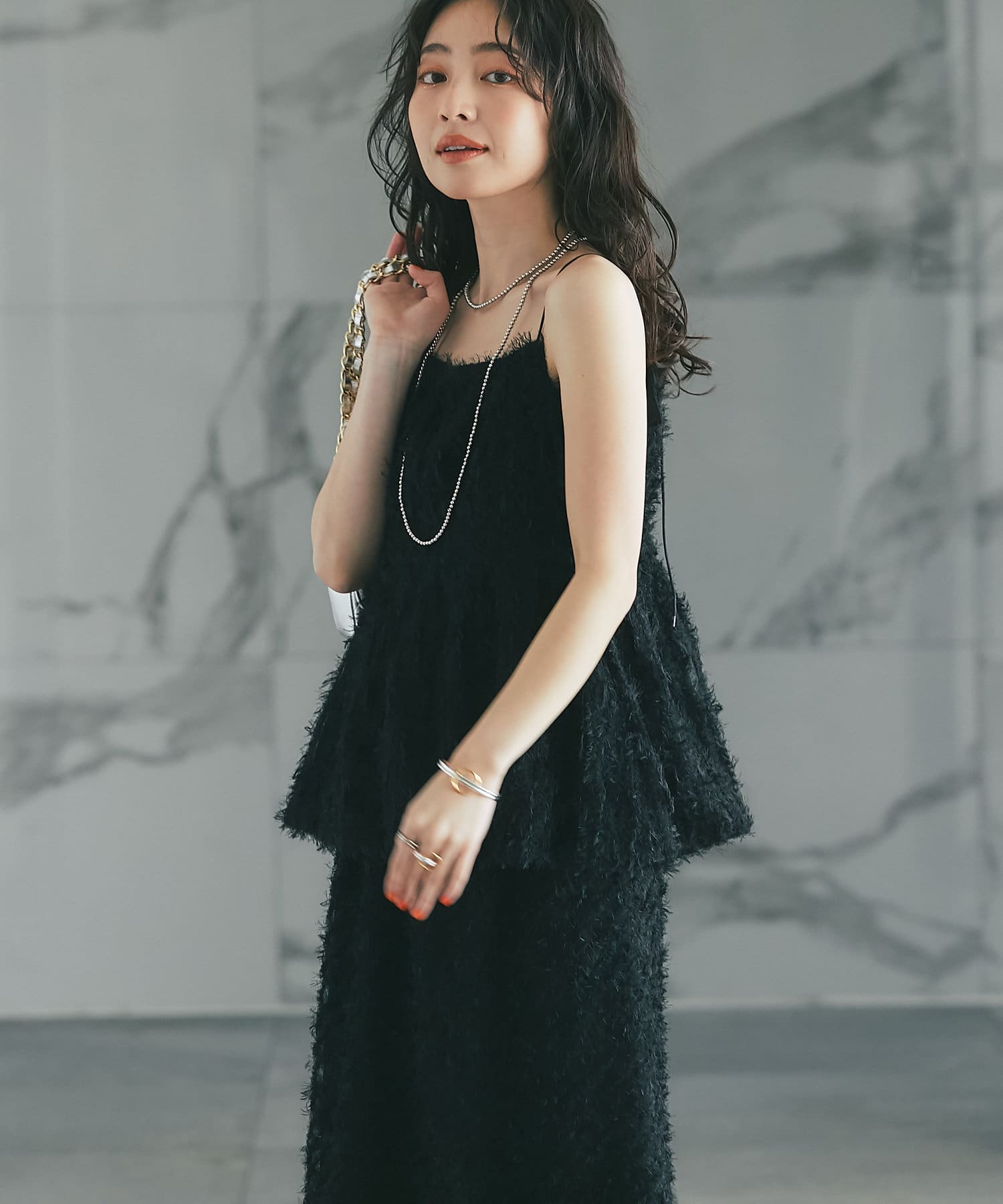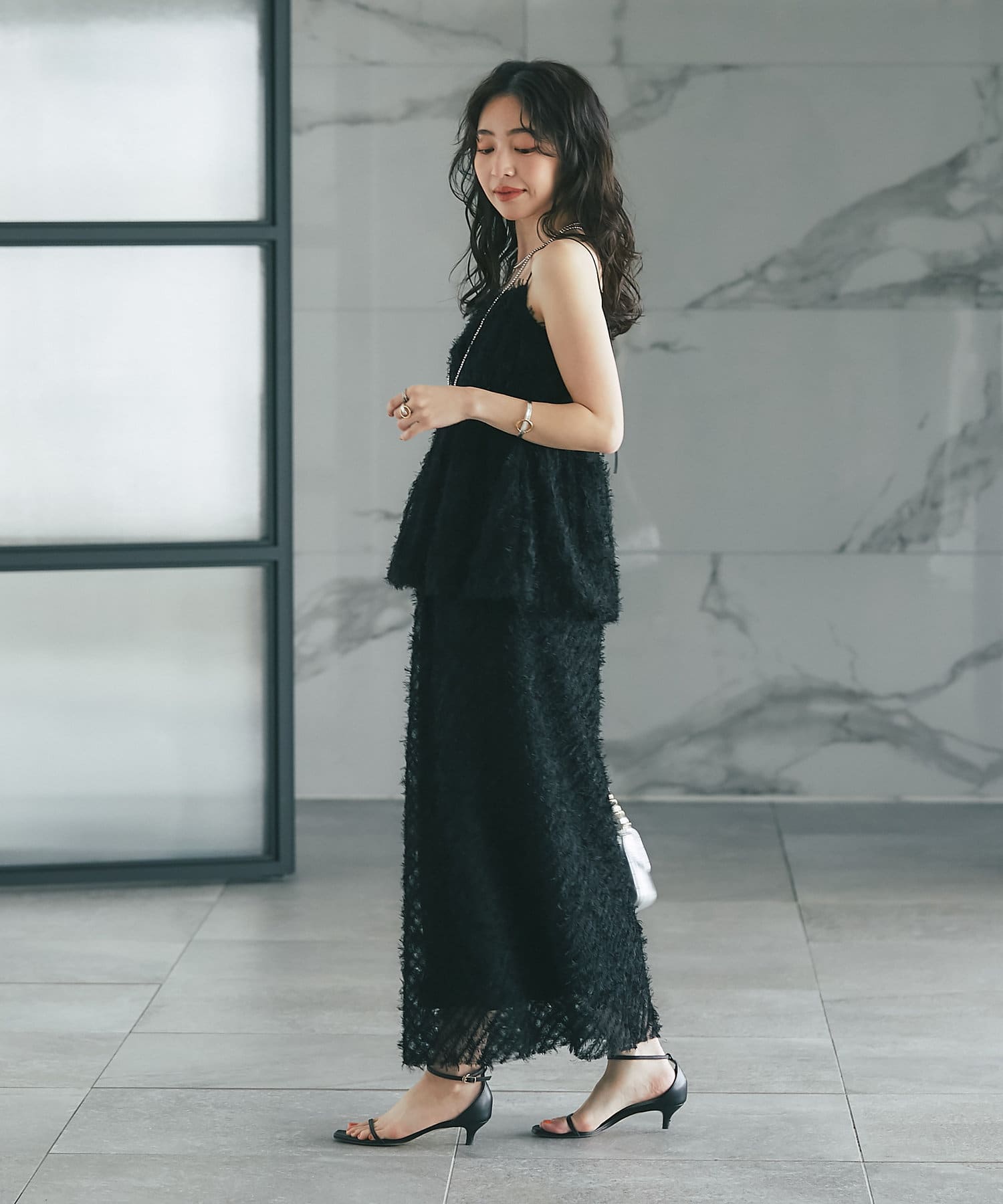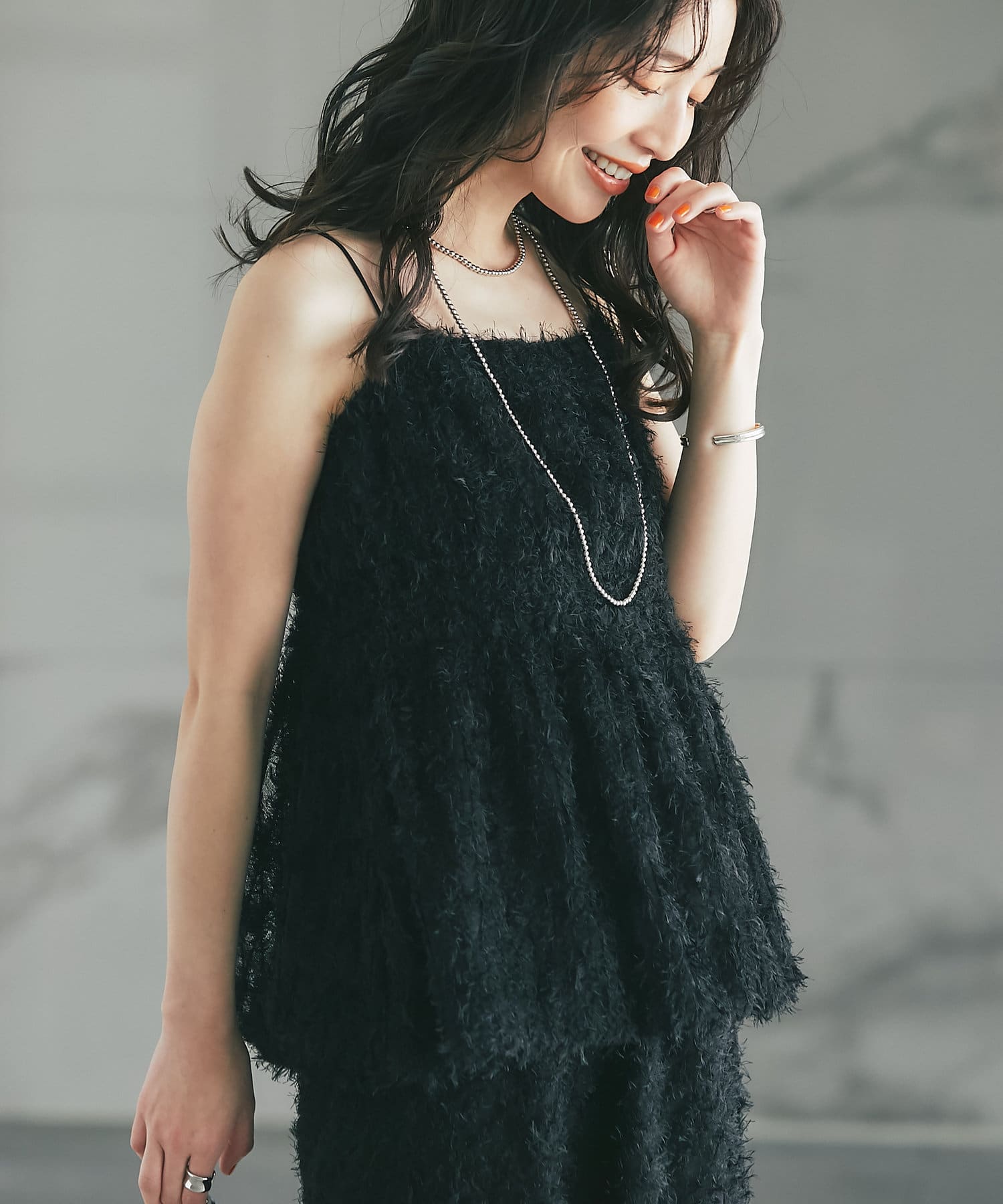 存在感のある素材の表情と、女性らしい華奢見えバランスが絶妙なキャミソールです。
