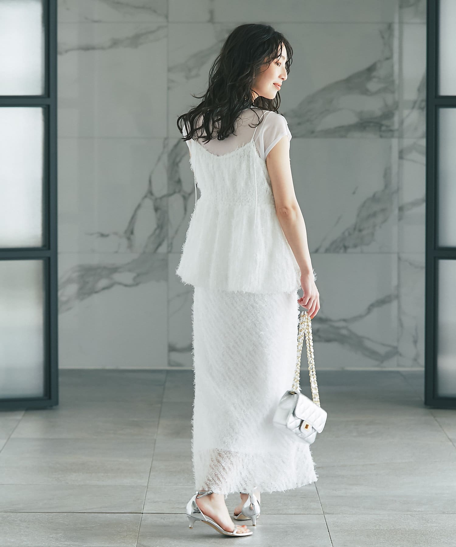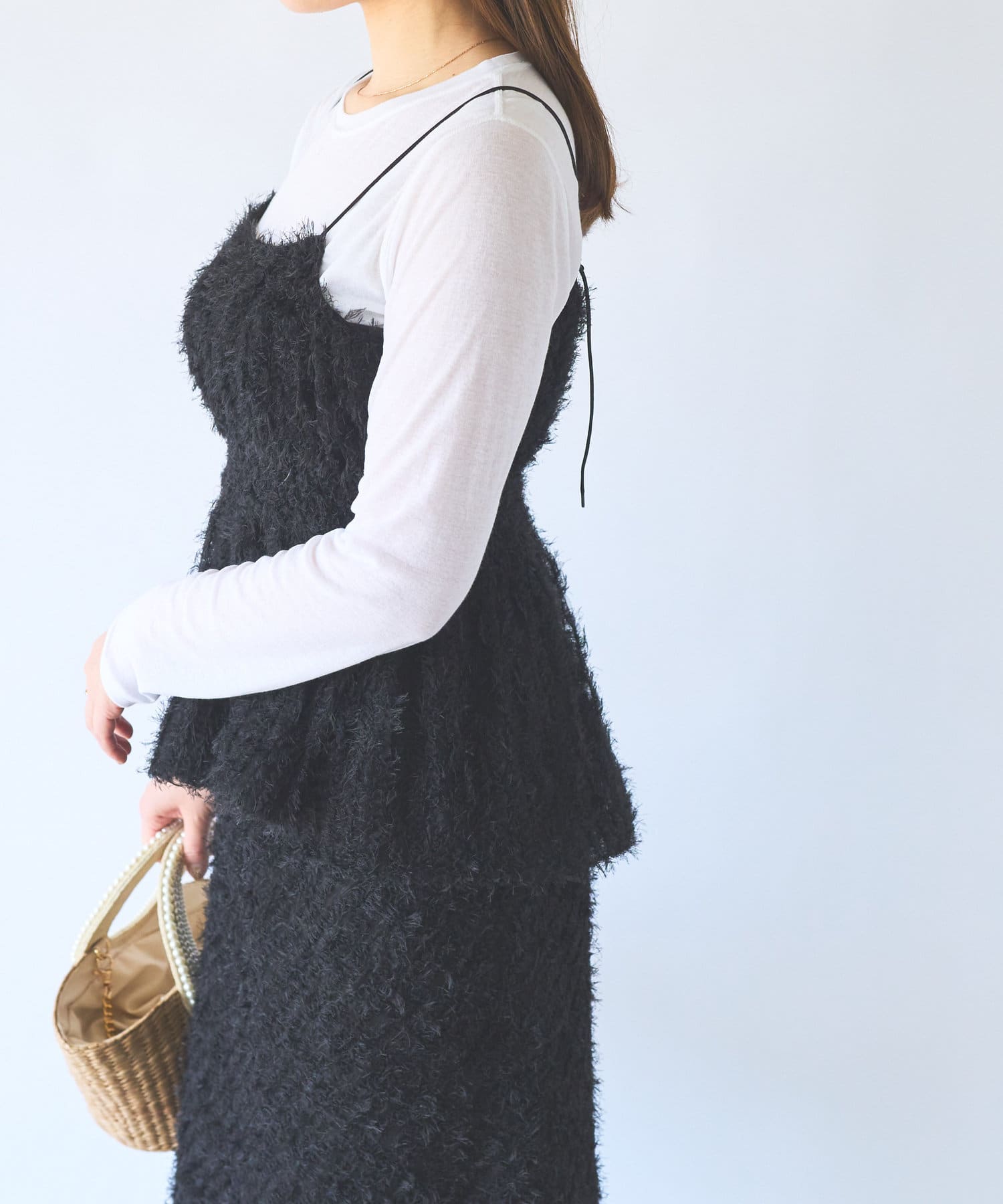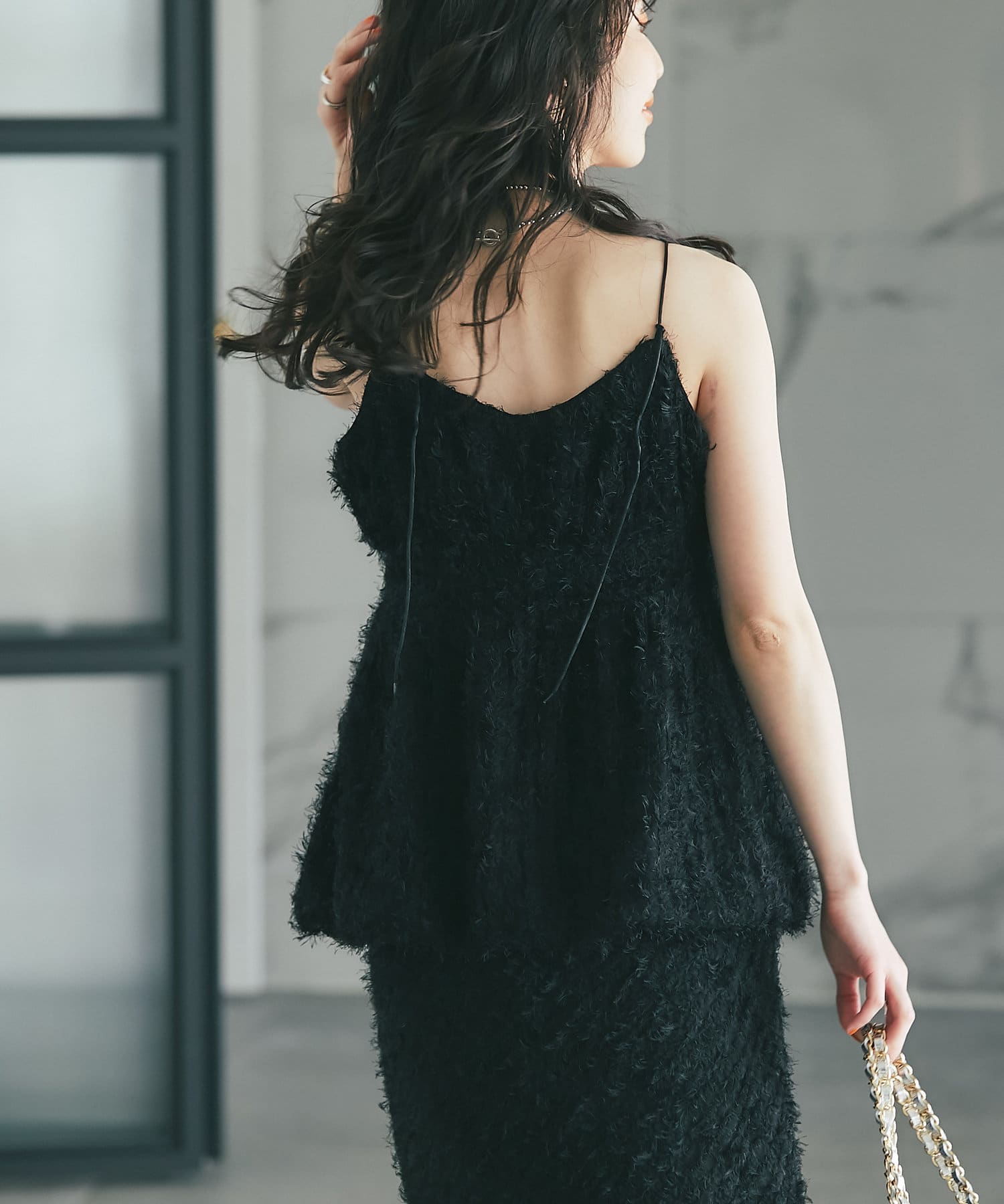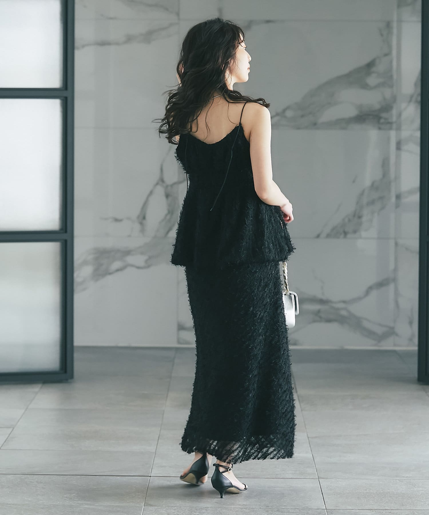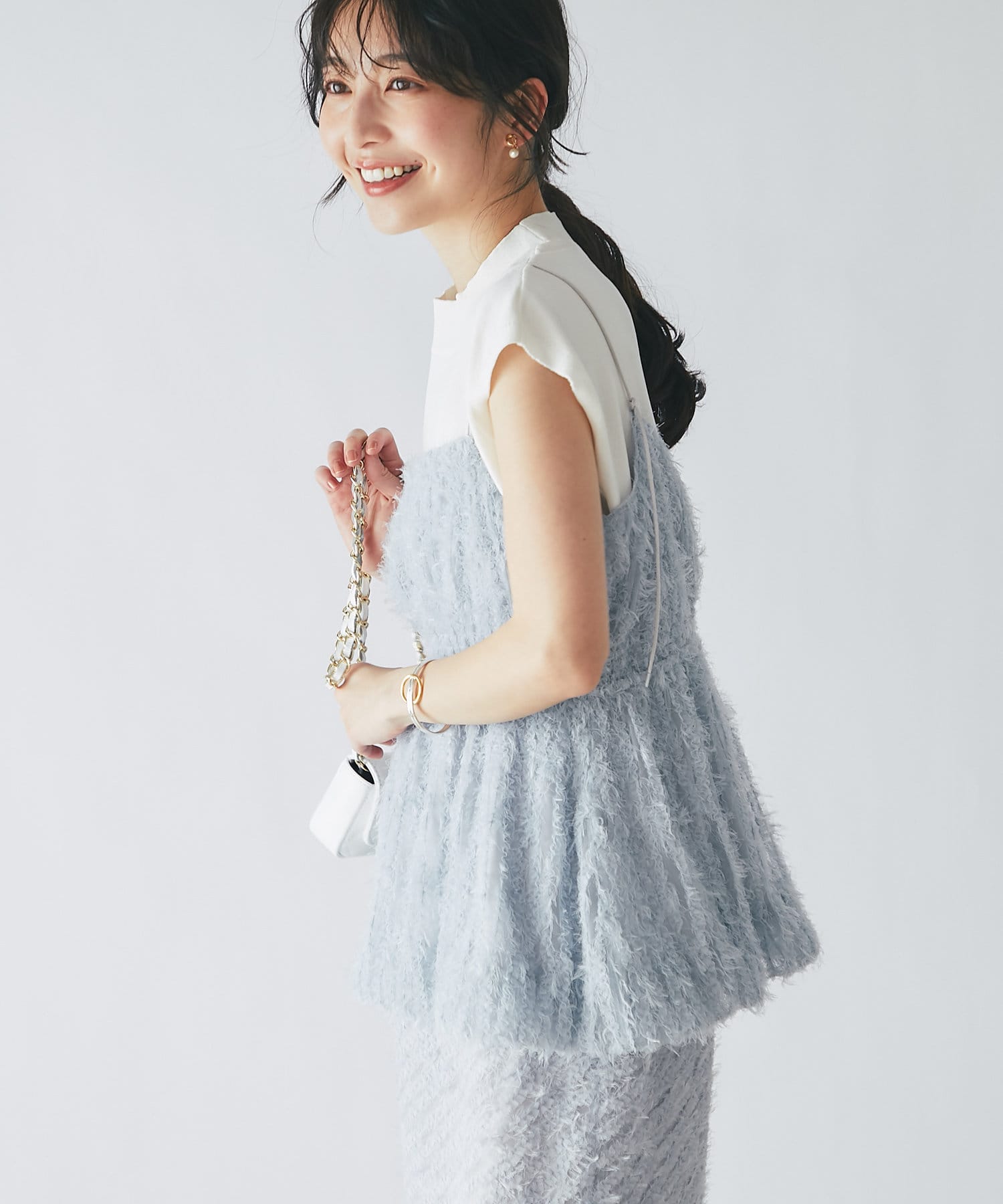 存在感のある素材の表情と、女性らしい華奢見えバランスが絶妙なキャミソールです。