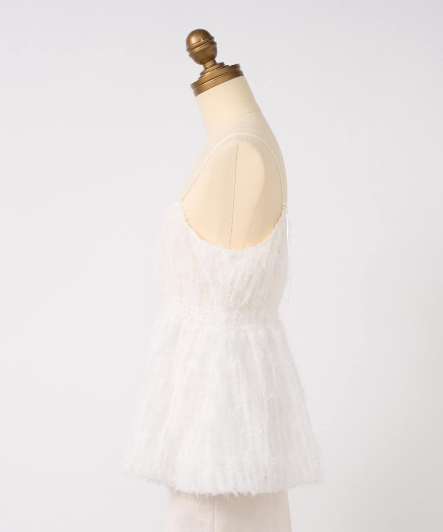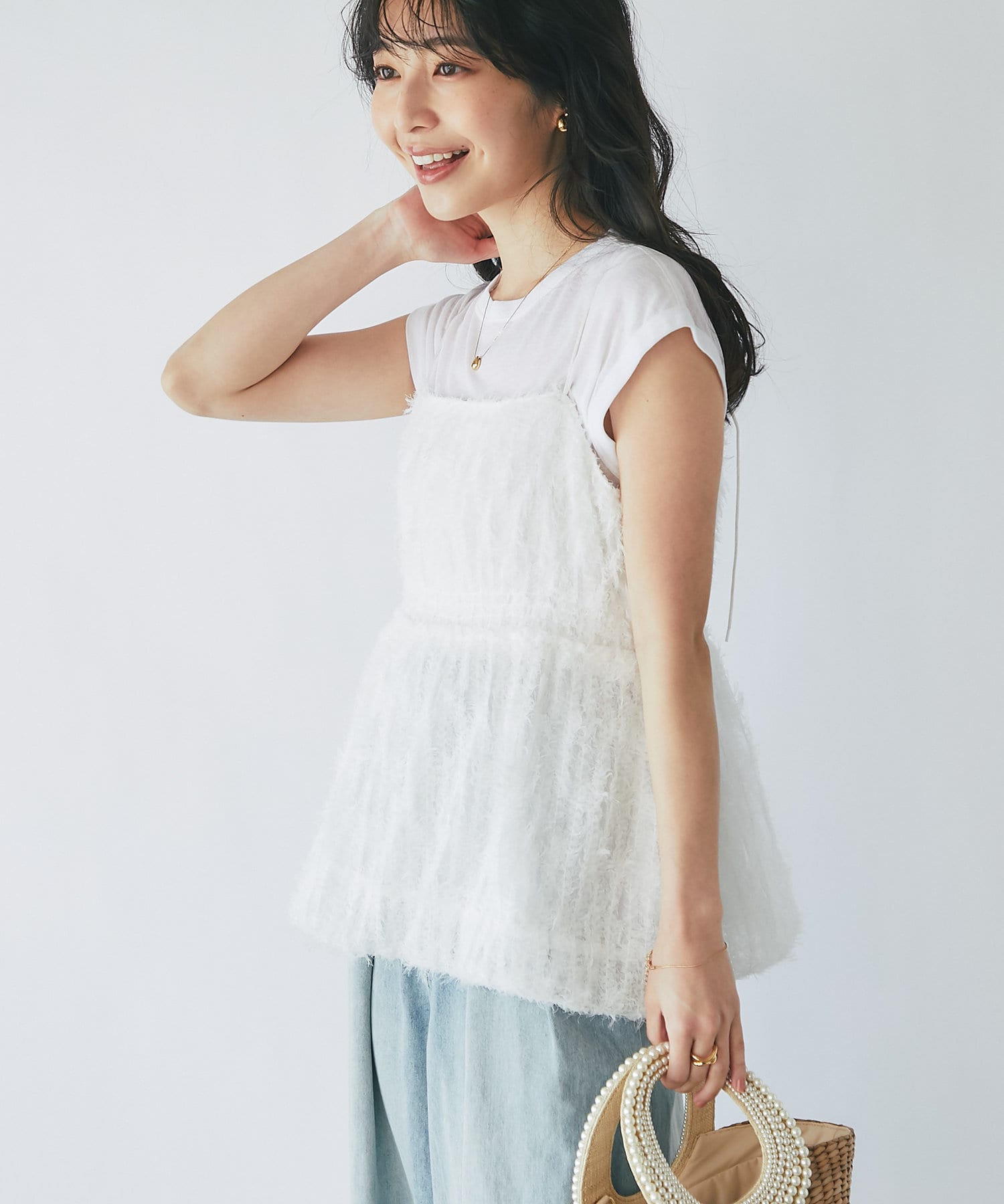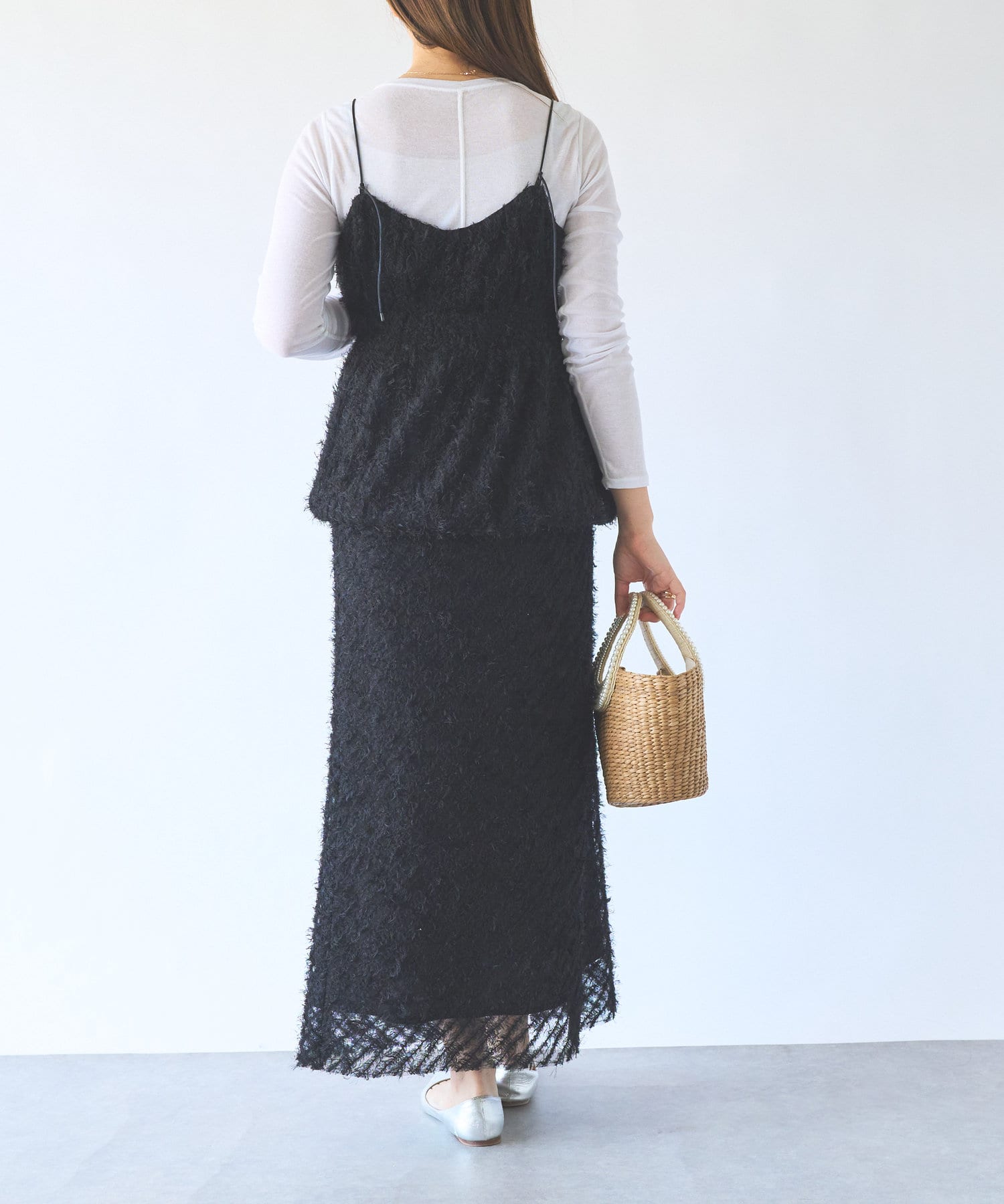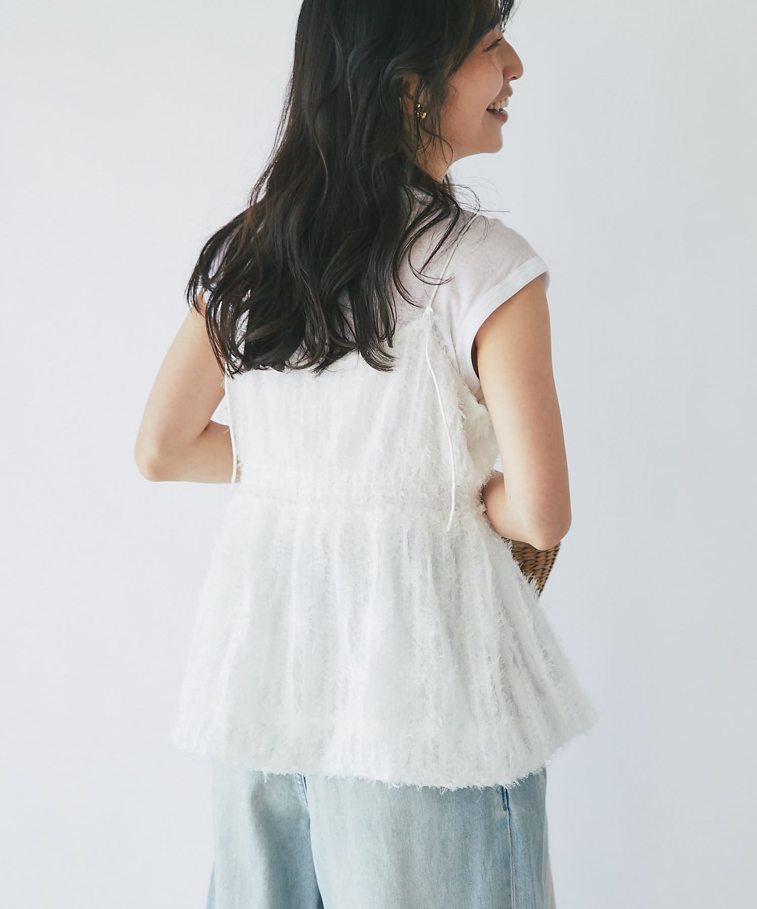 存在感のある素材の表情と、女性らしい華奢見えバランスが絶妙なキャミソールです。