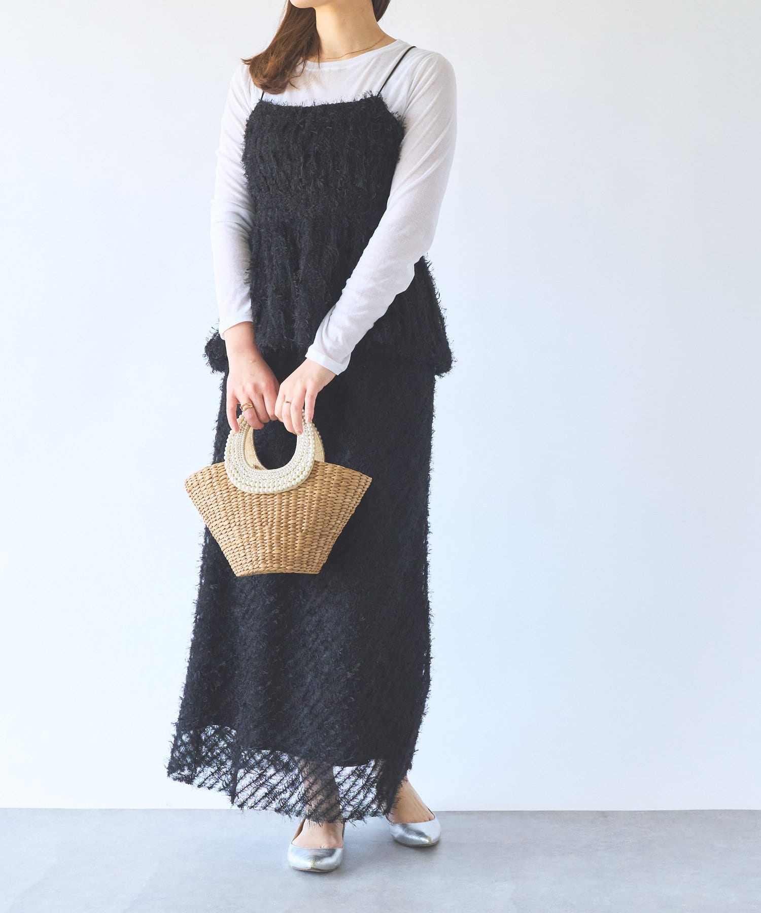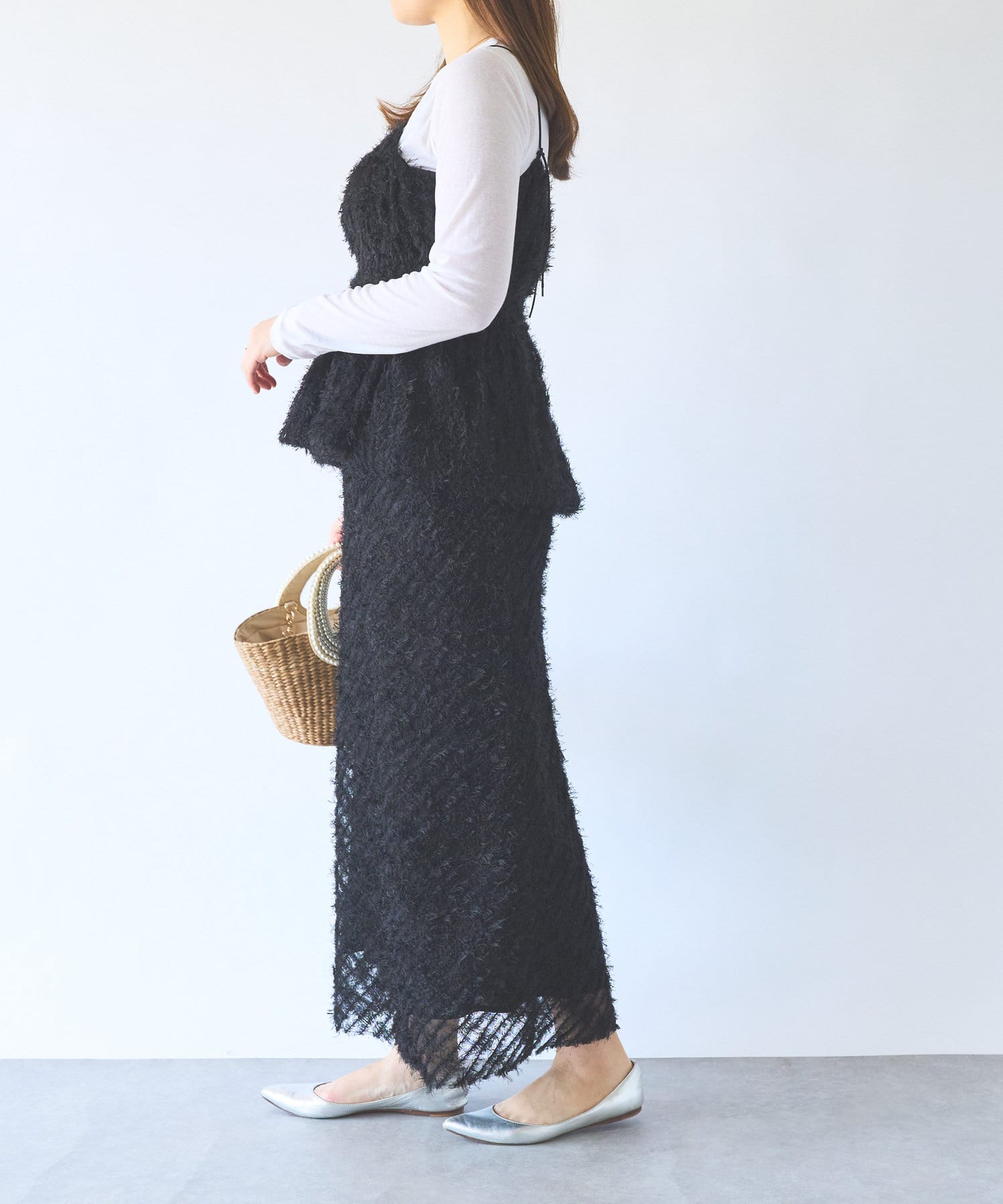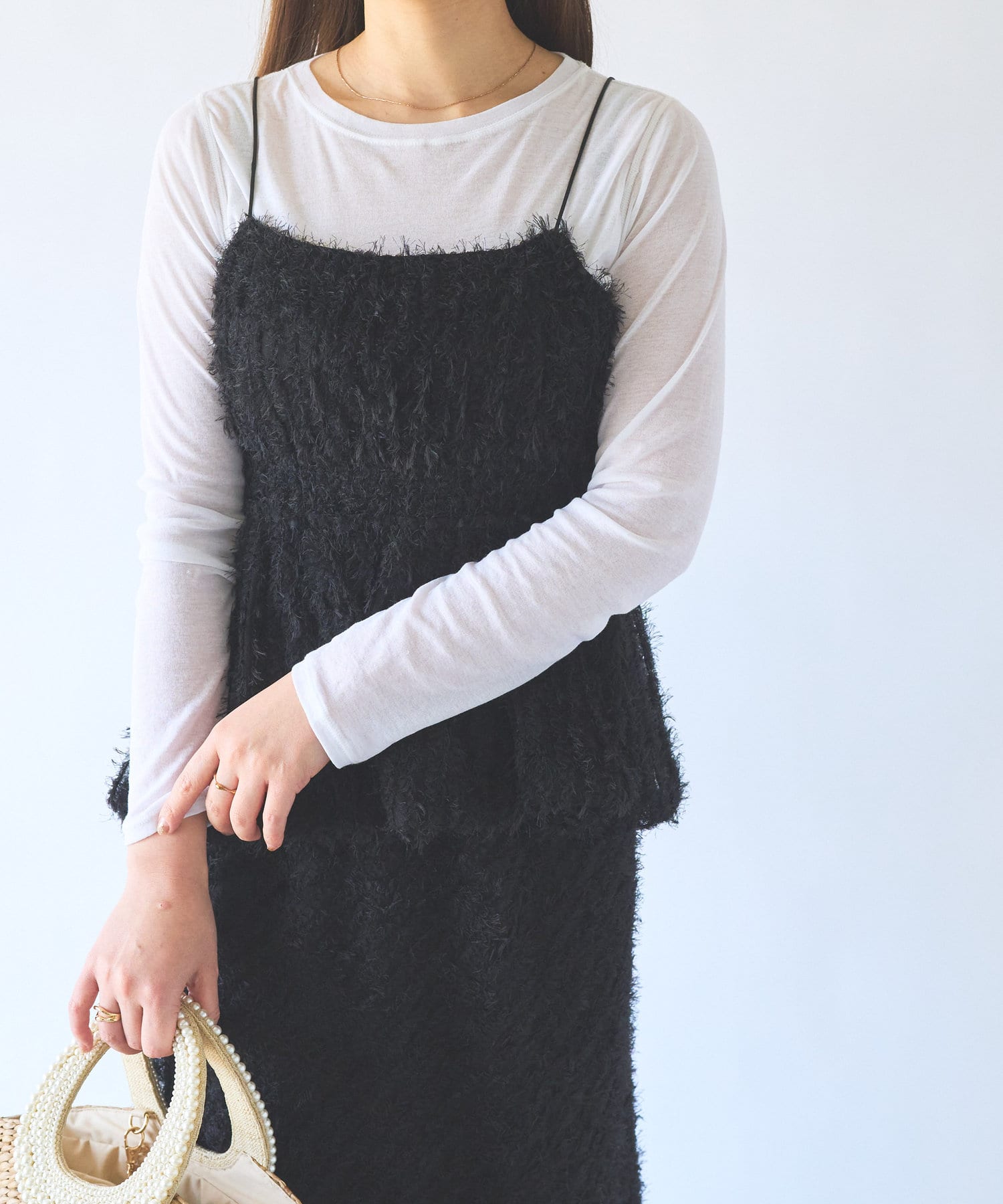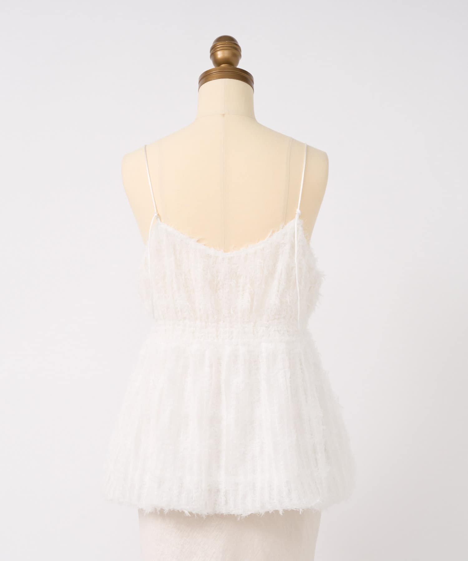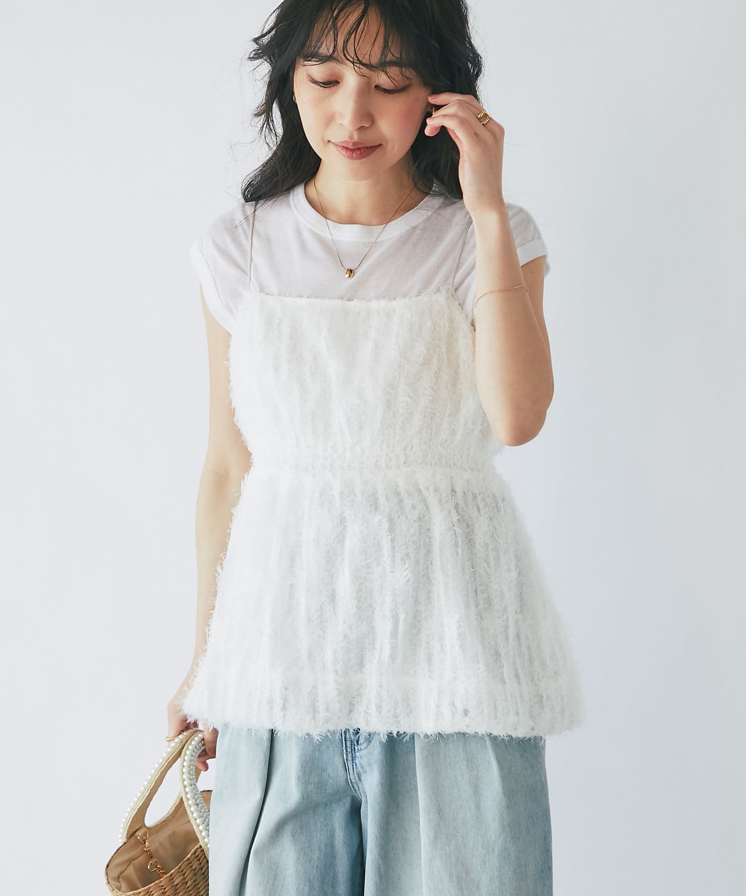 存在感のある素材の表情と、女性らしい華奢見えバランスが絶妙なキャミソールです。