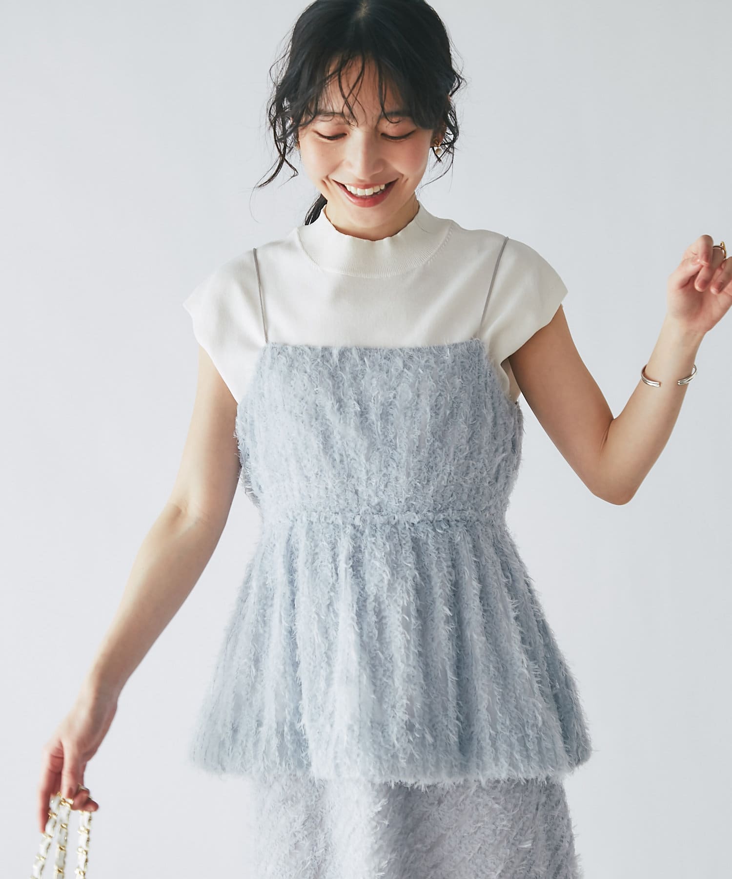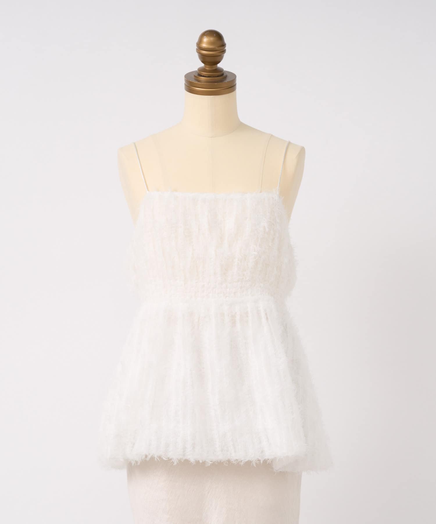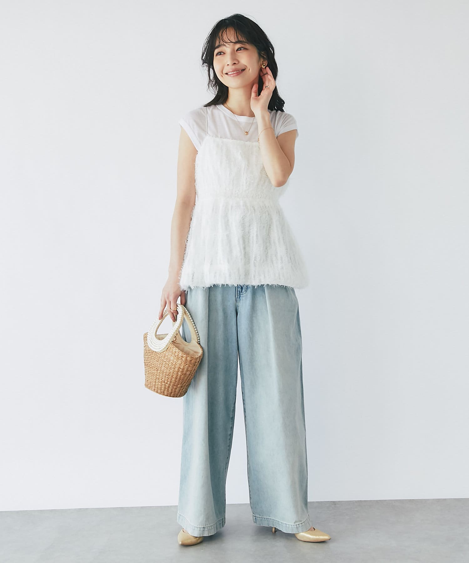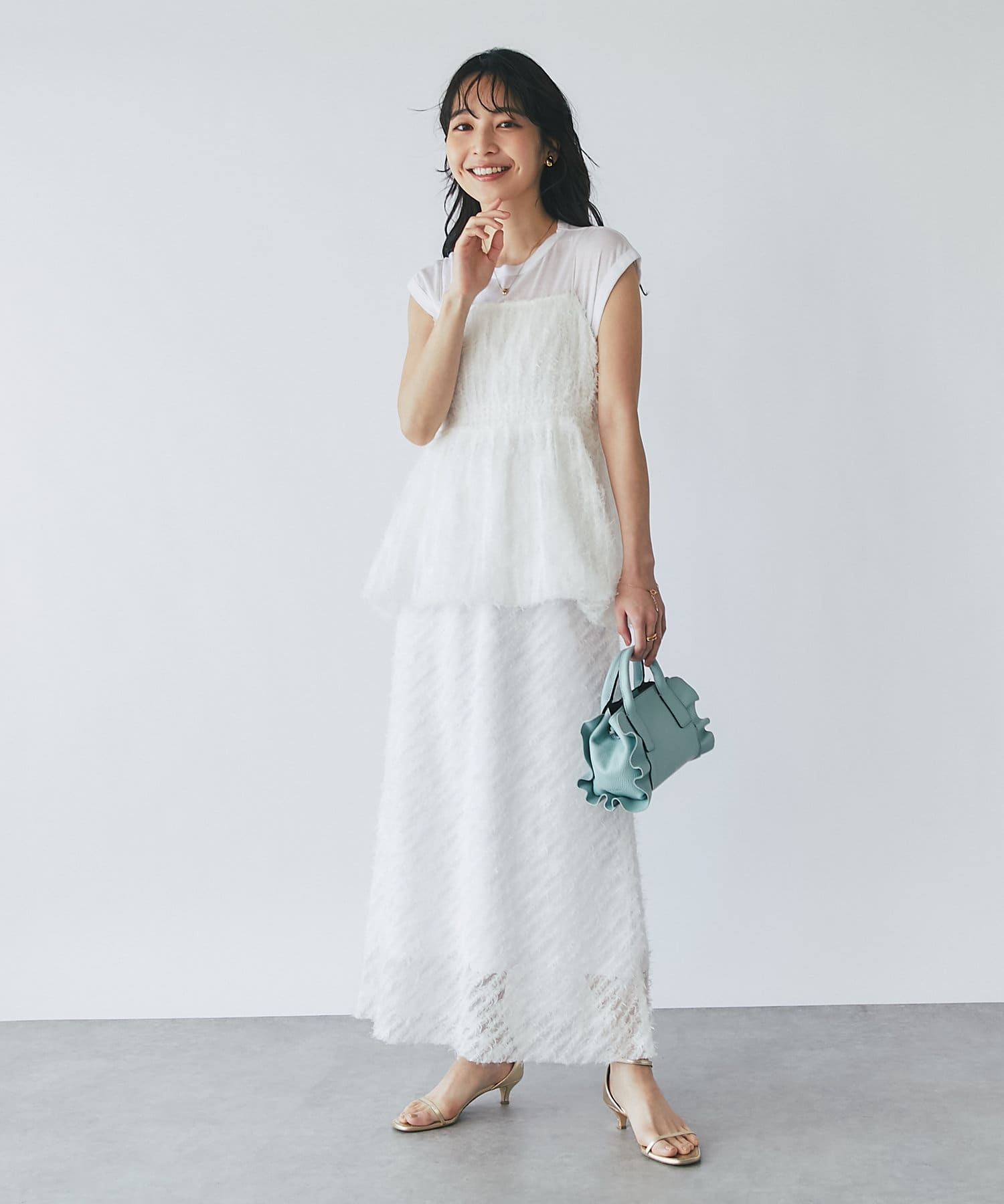 存在感のある素材の表情と、女性らしい華奢見えバランスが絶妙なキャミソールです。