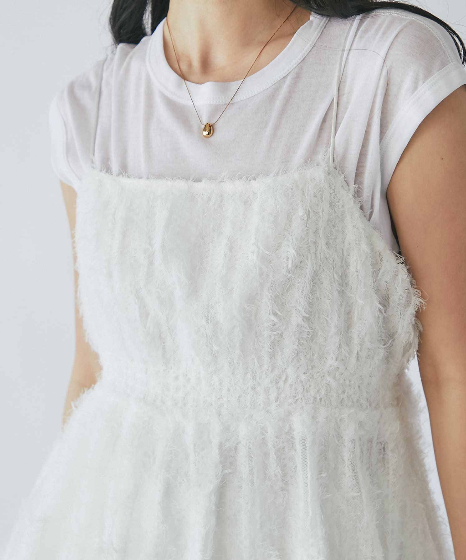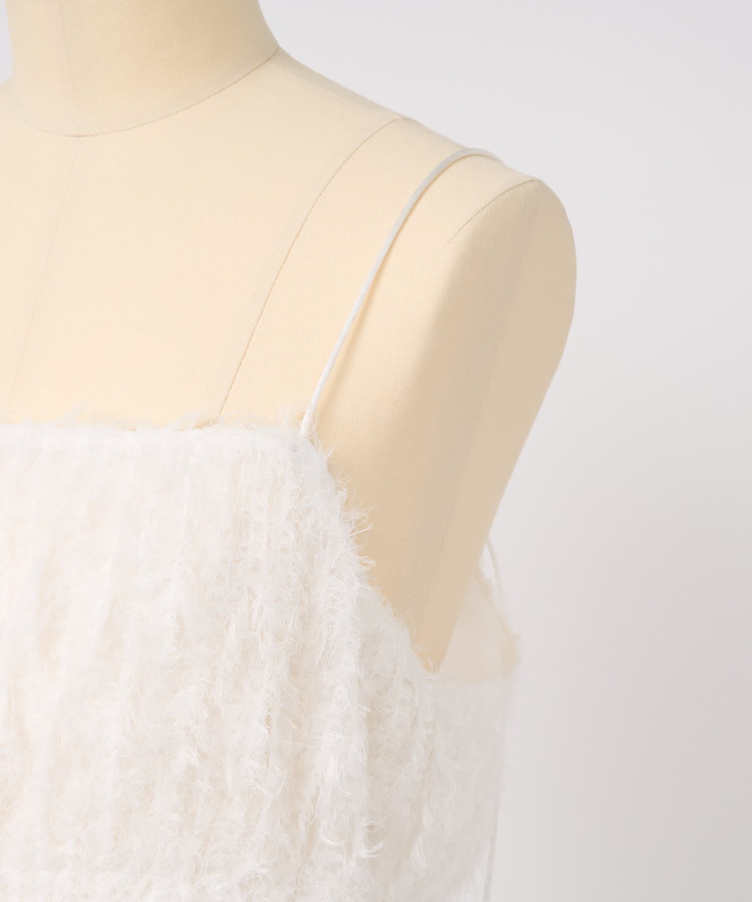 繊細な細い肩紐で華奢に見えるように仕上げているのがこだわりのポイント。