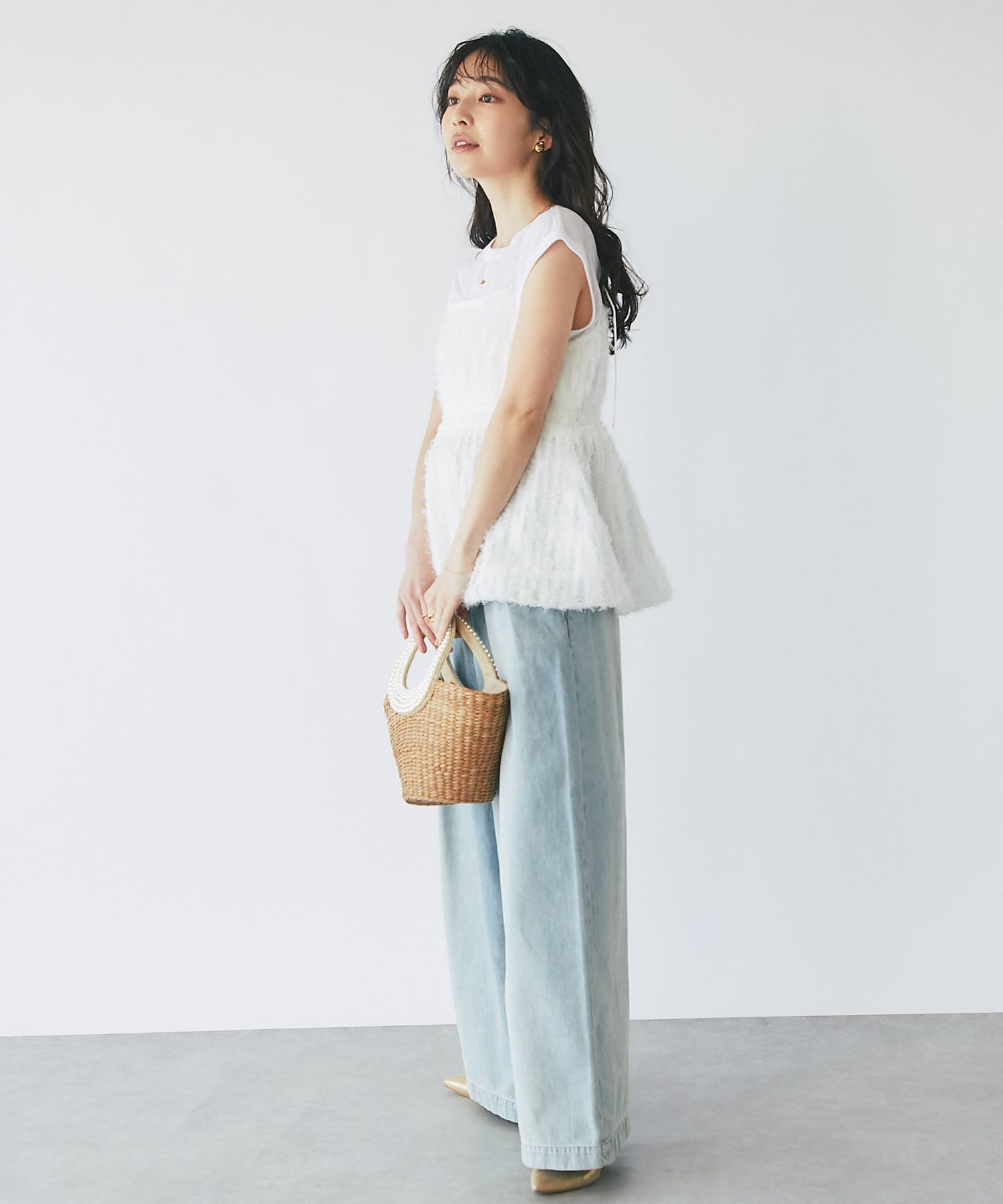 ペプラム布にギャザーをたっぷり入れて、ふんわりとさせたデザイン。
