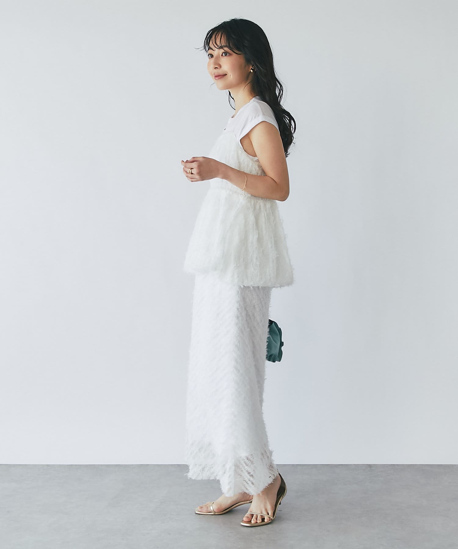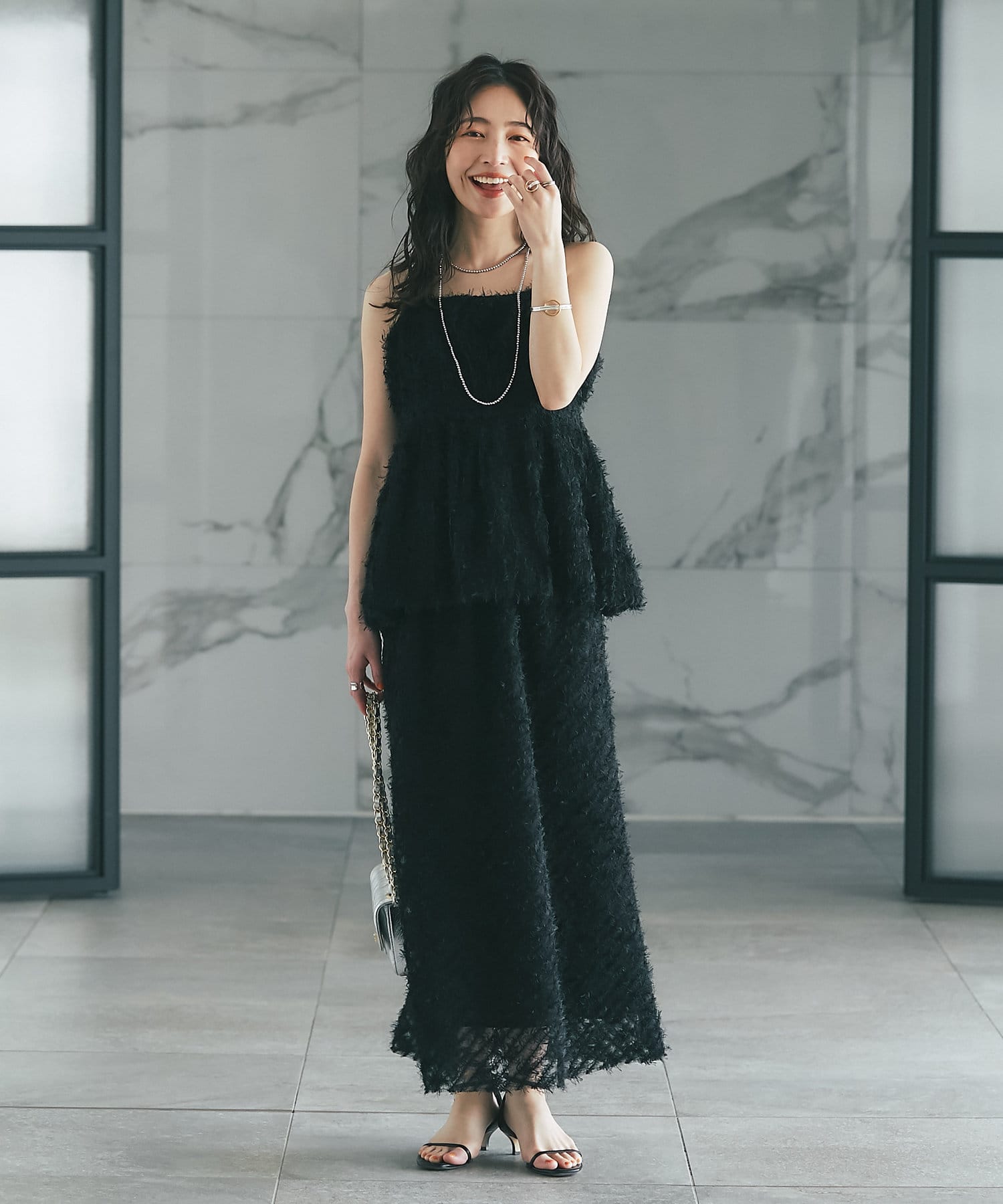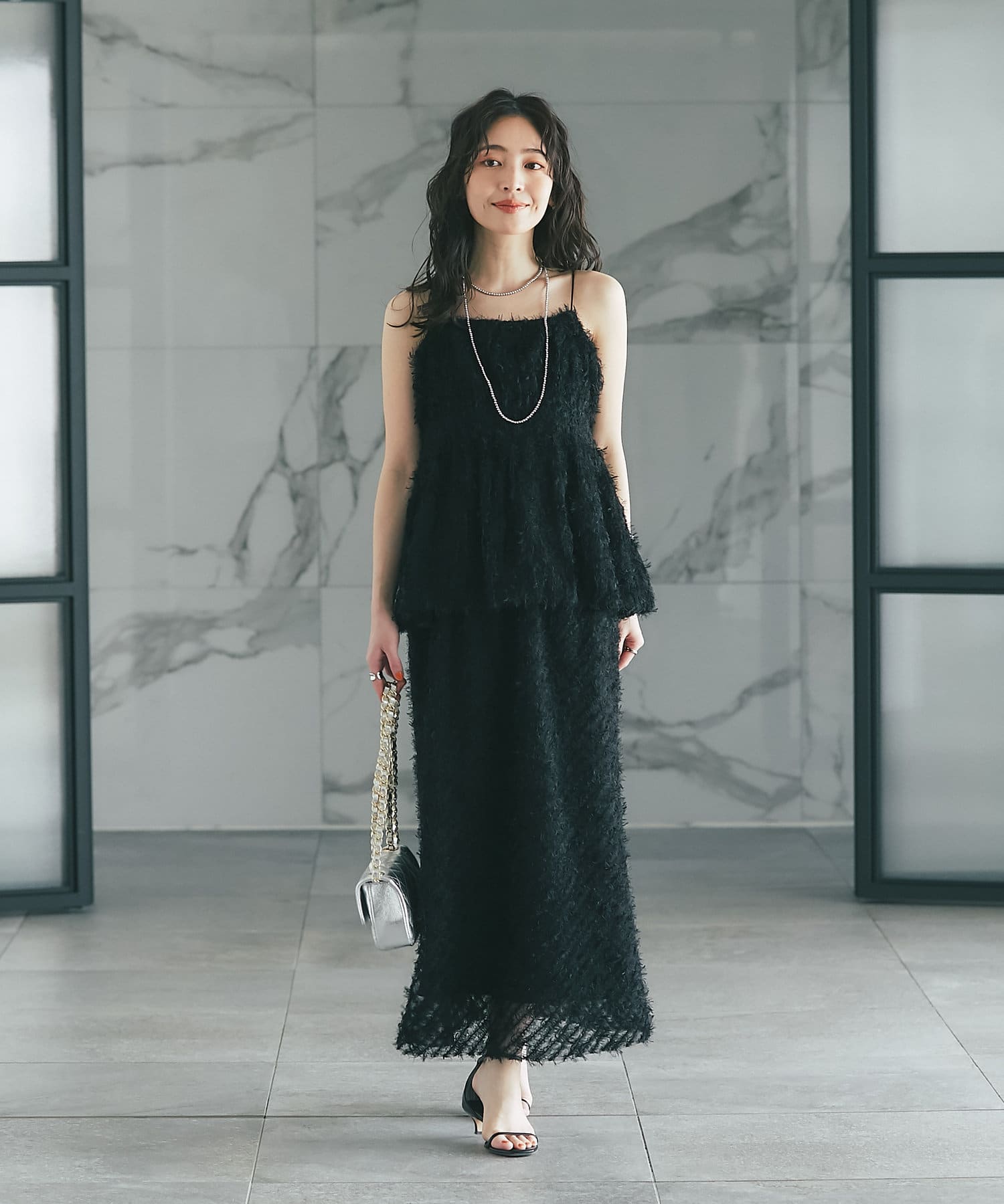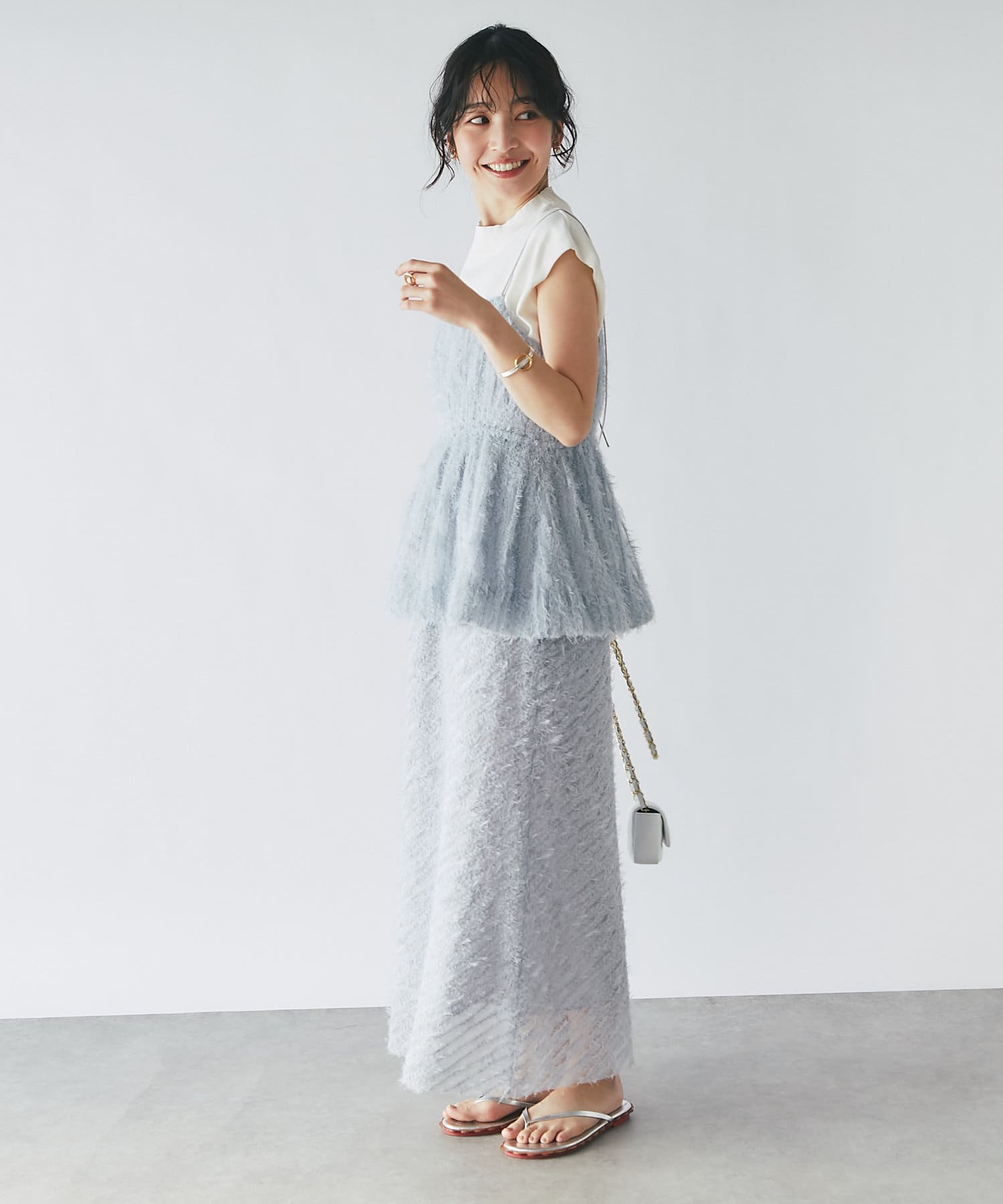 セットアップで着用いただくのはもちろん、単品でも華やかなアイテム。