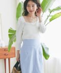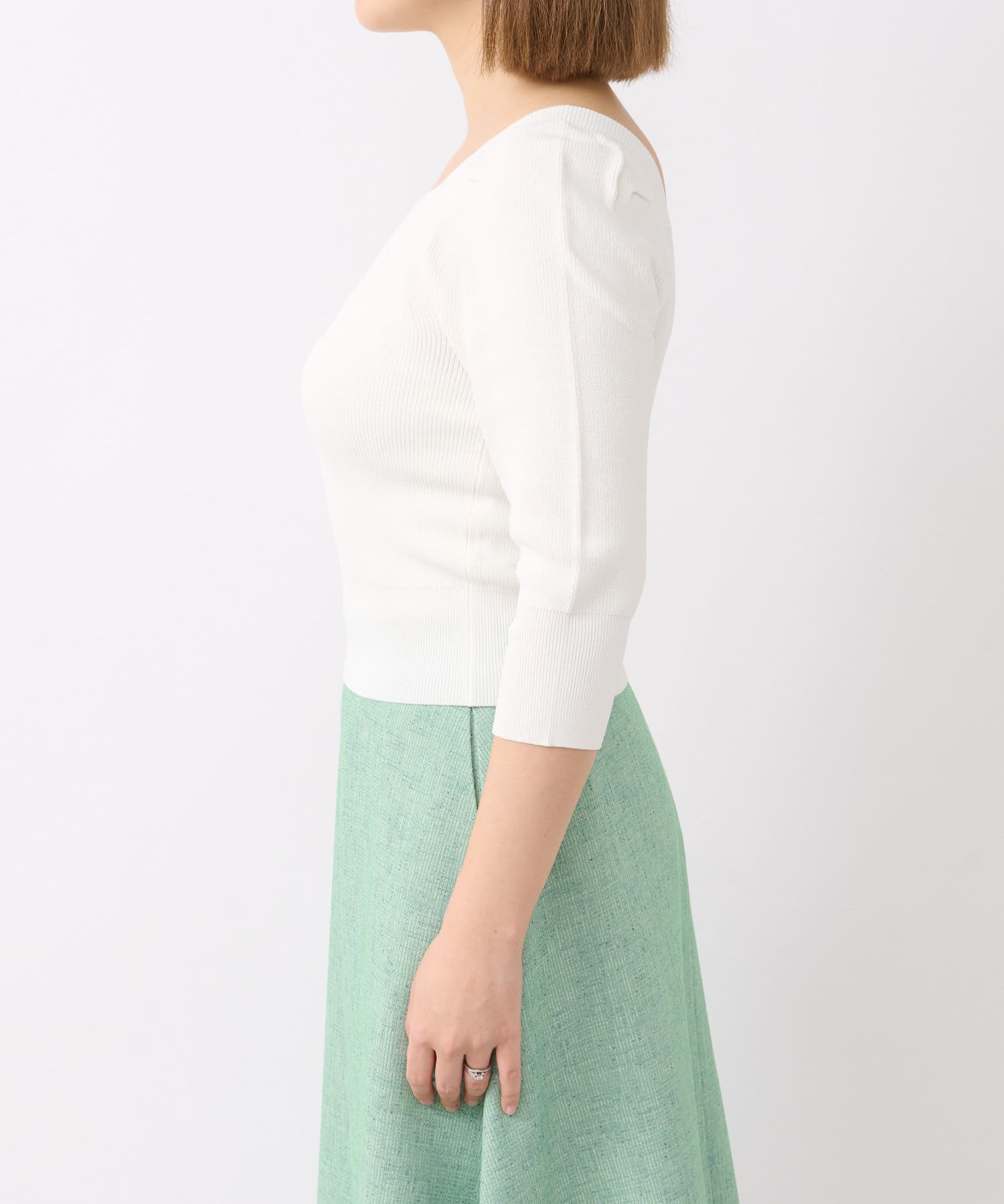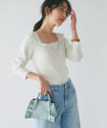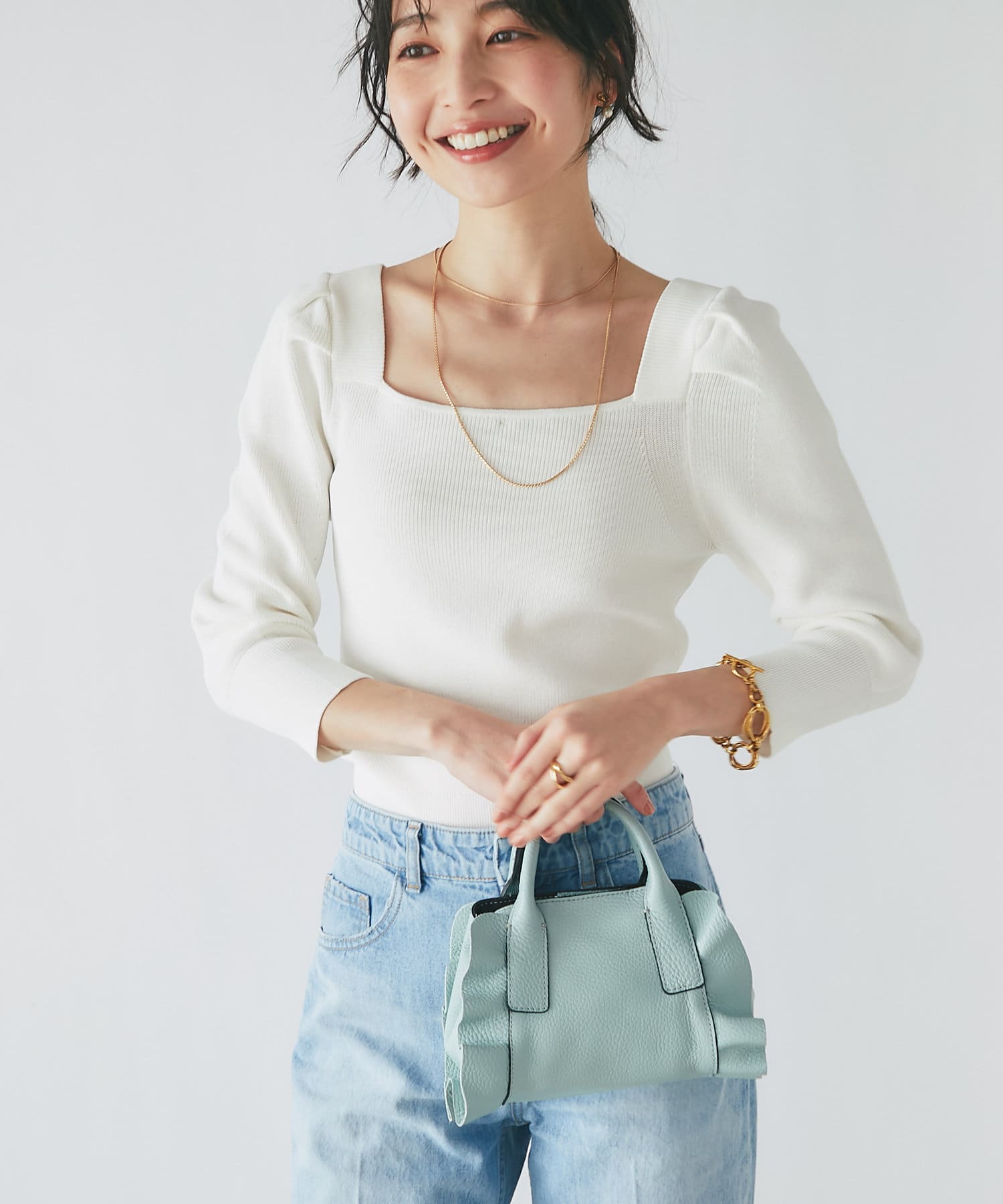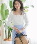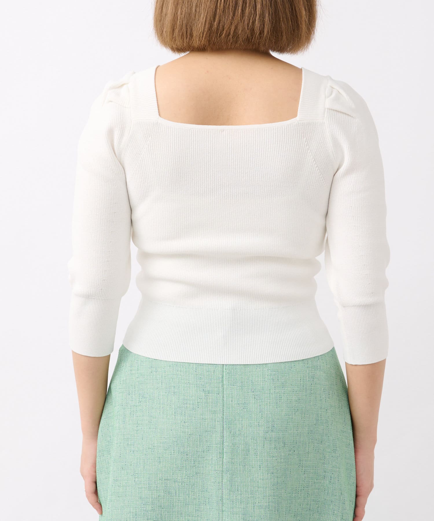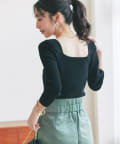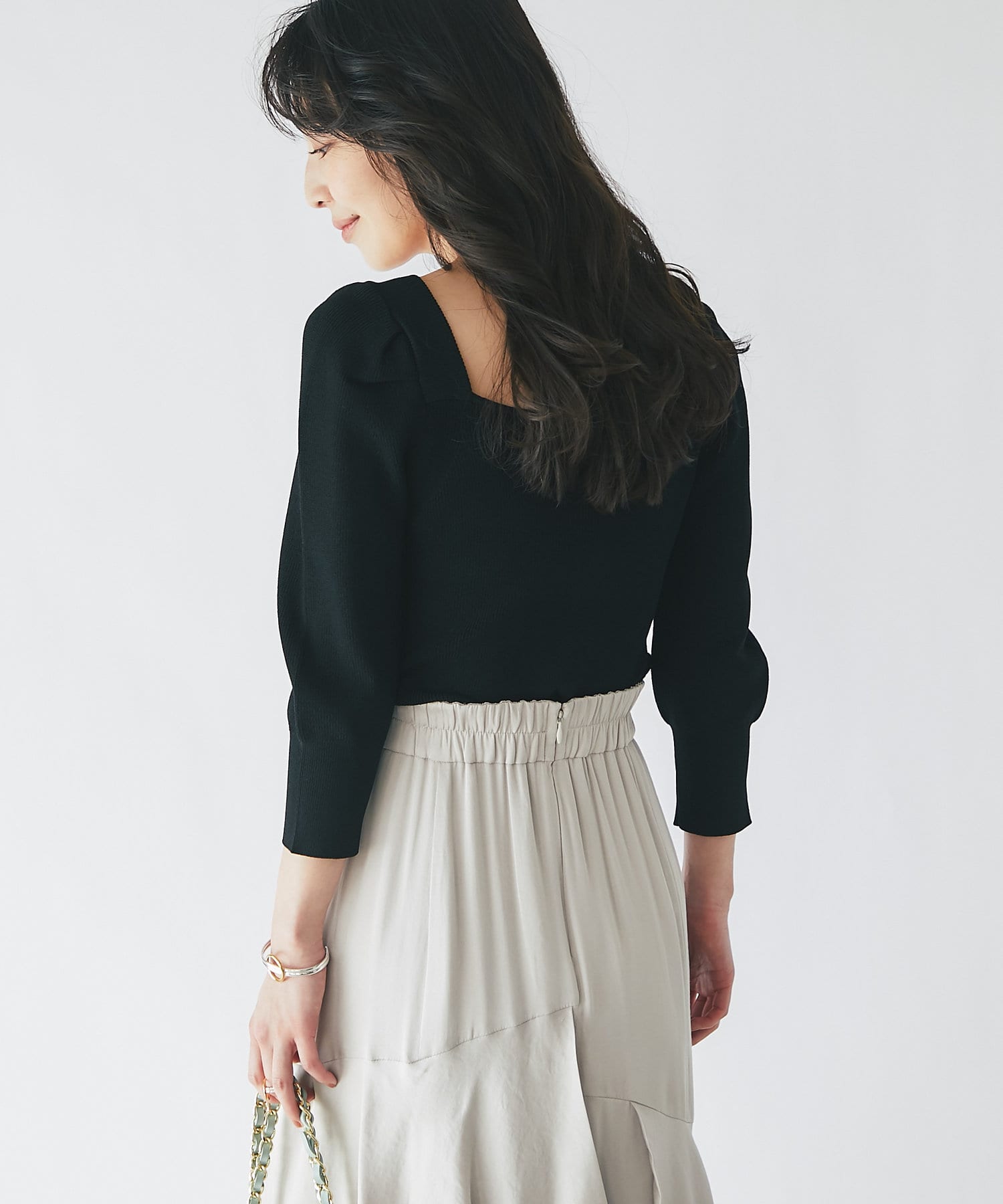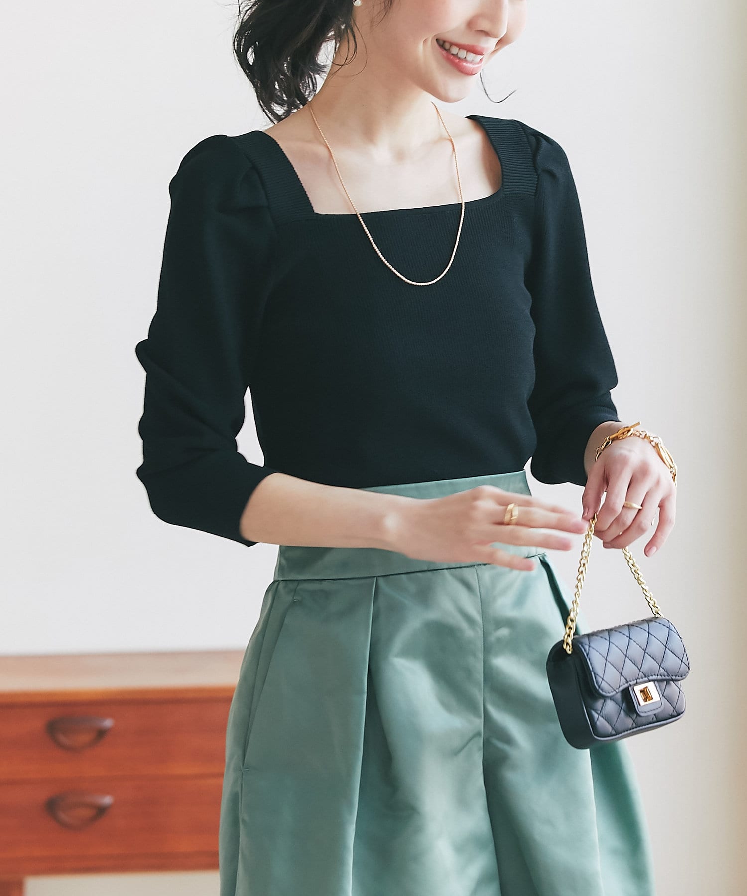 デコルテラインをきれいに見せるスクエアネックのニットです。