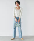 シンプルなアイテムなのでどんなボトムとも相性がいいです。
