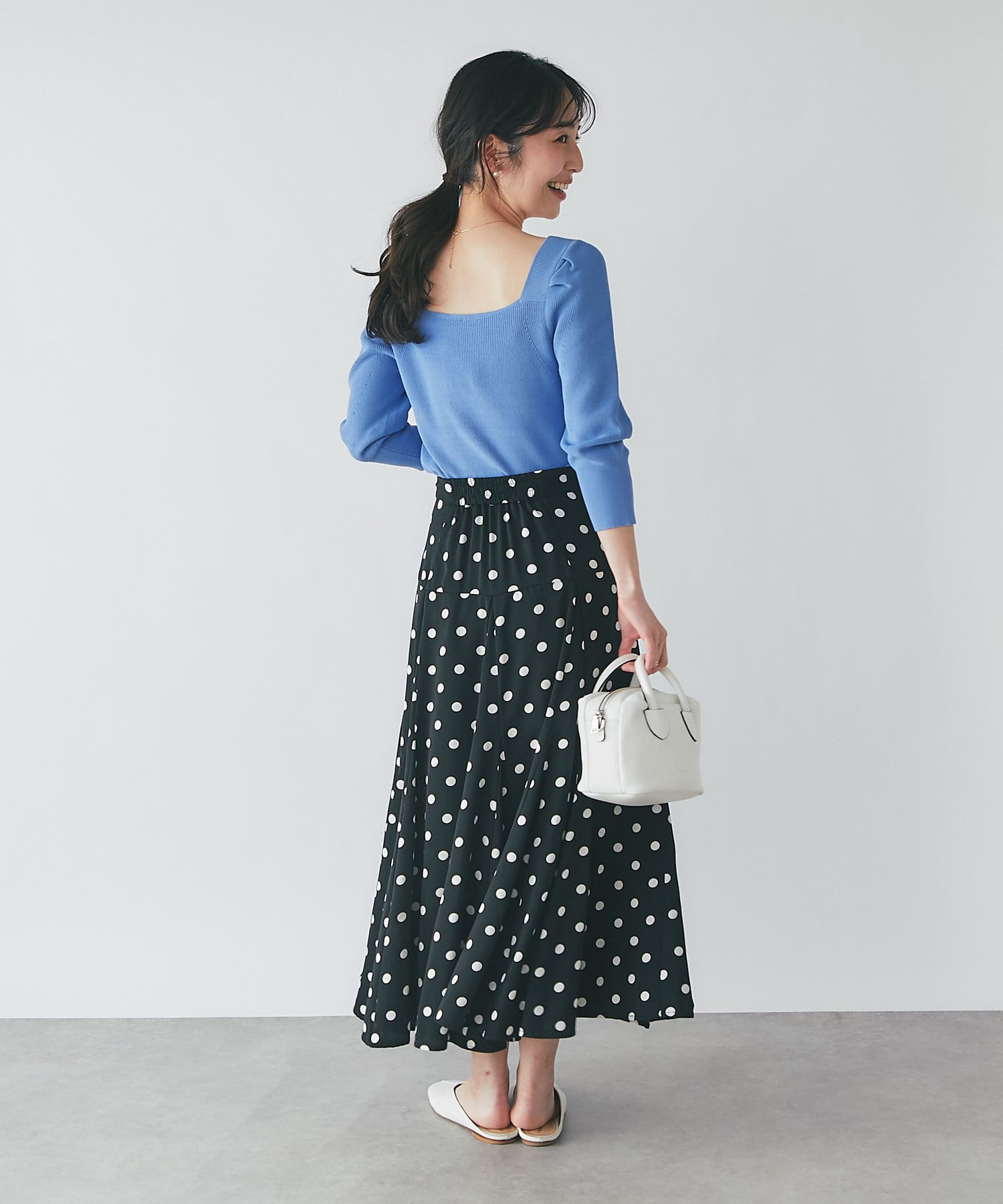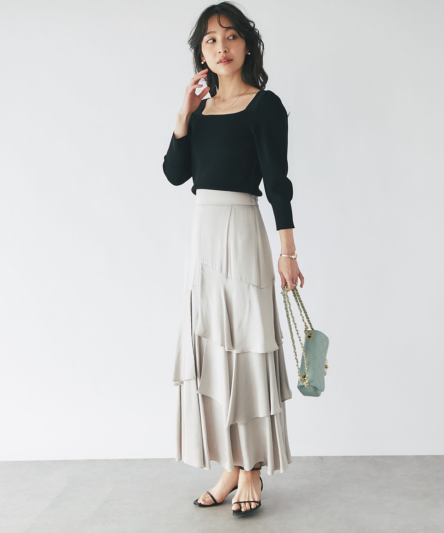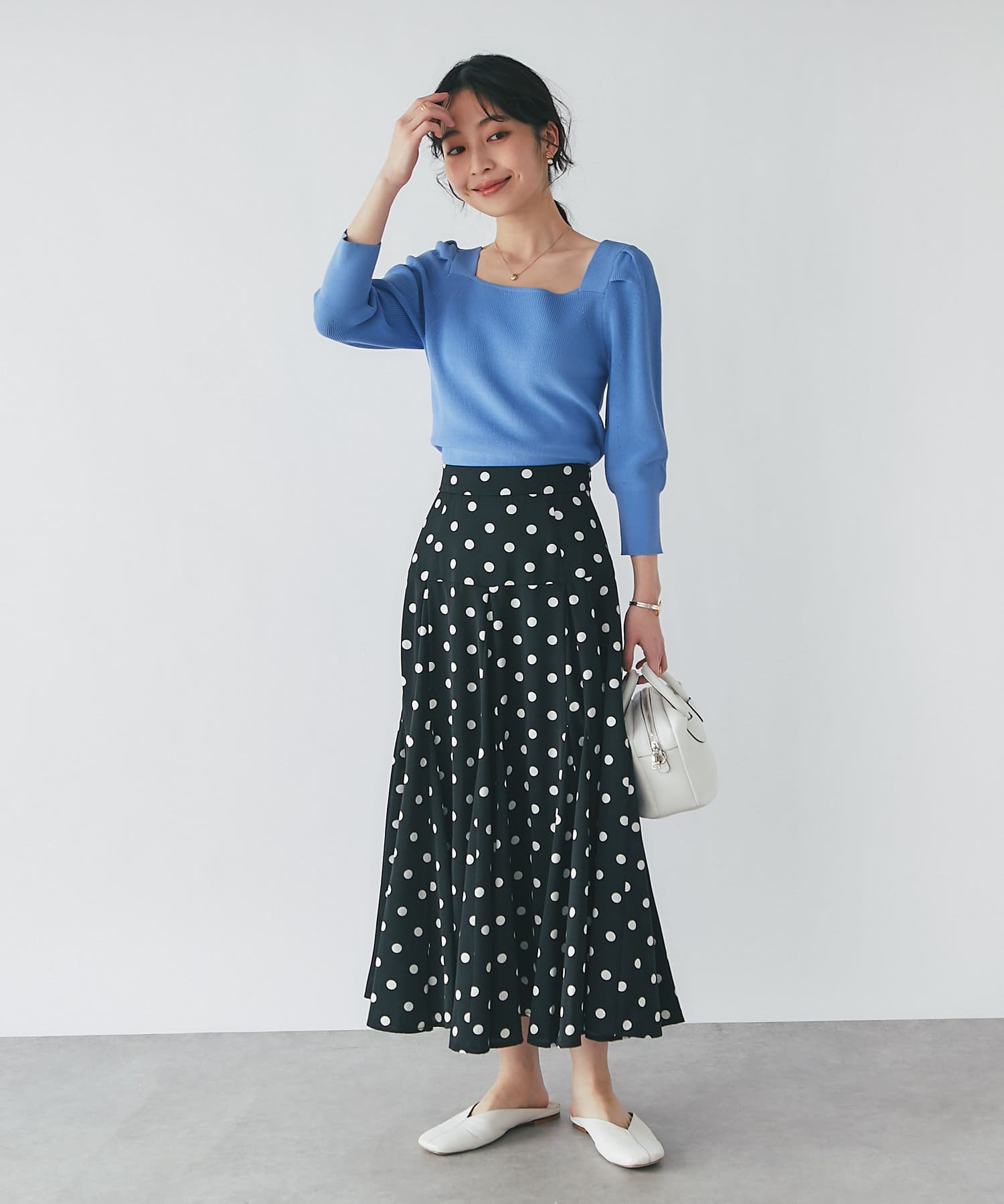 ボリュームのあるスカート合わせでレディな雰囲気も。