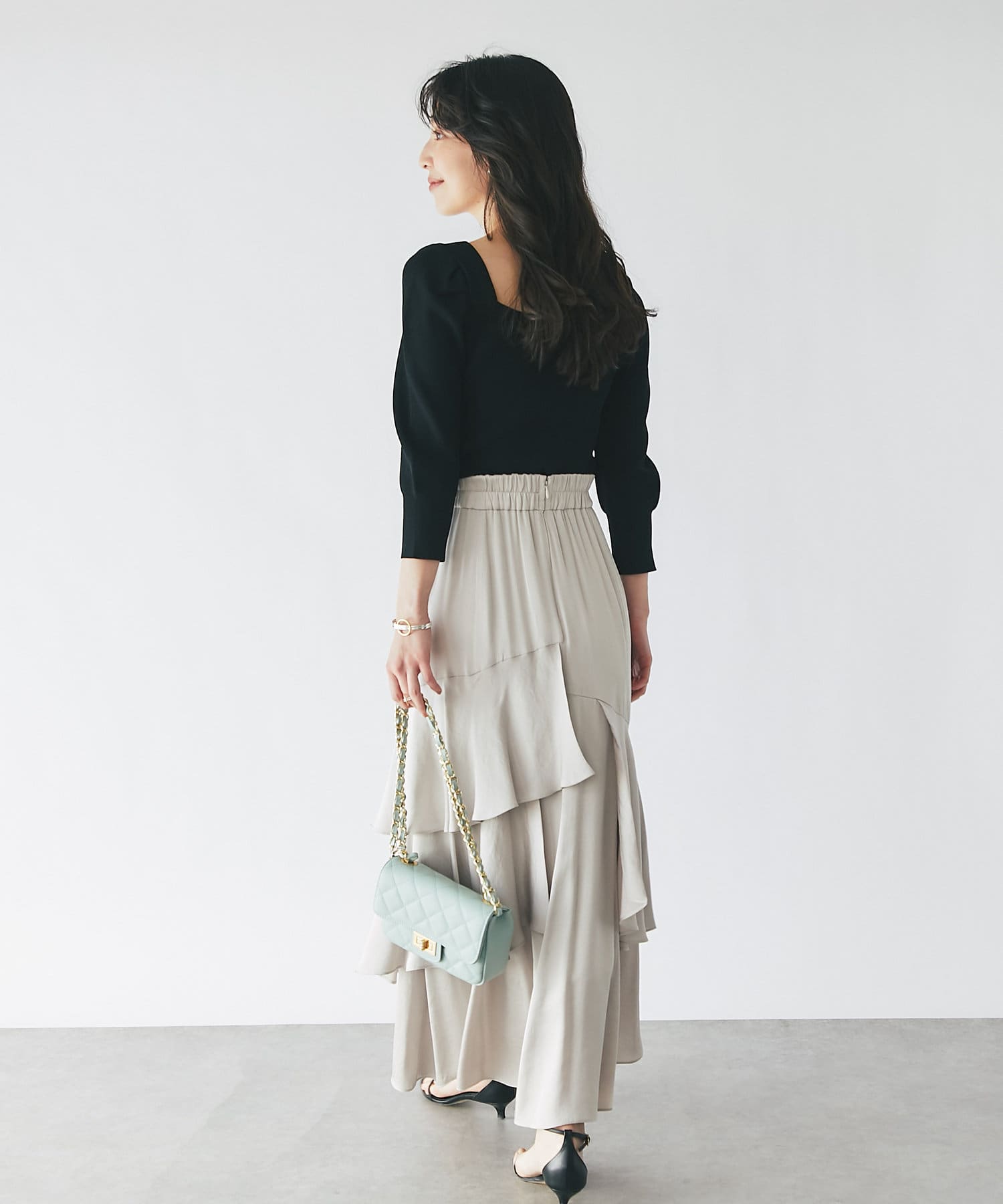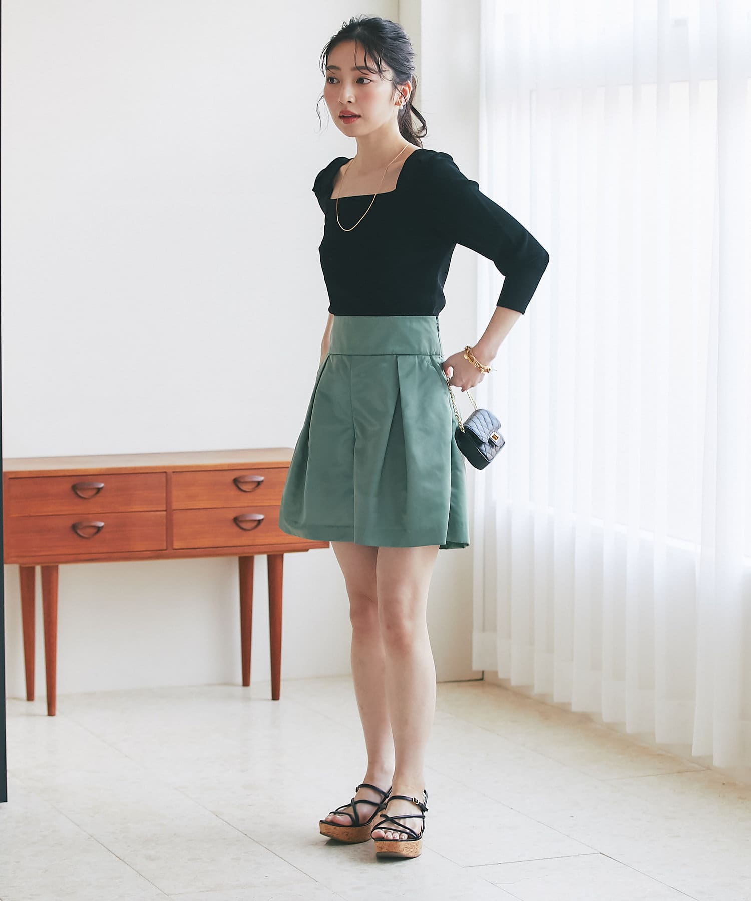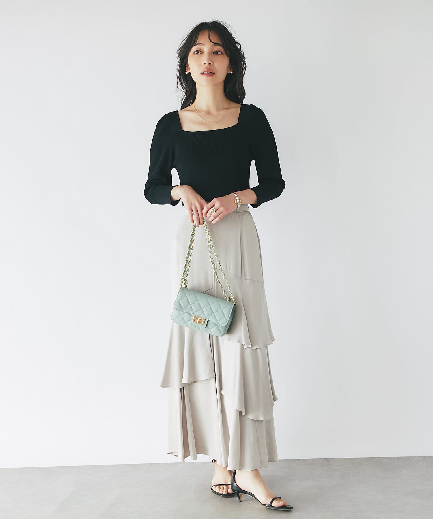 ボリュームのあるスカート合わせでレディな雰囲気も。