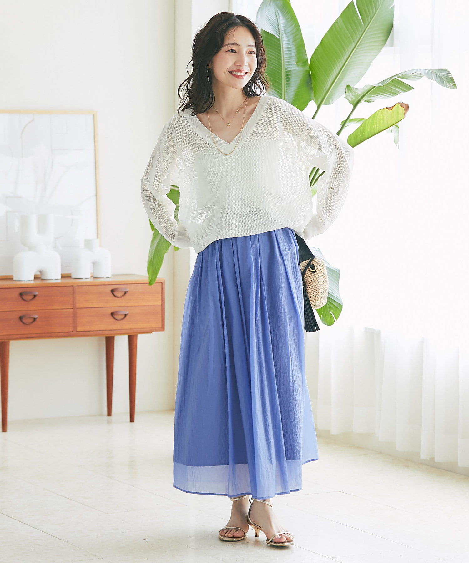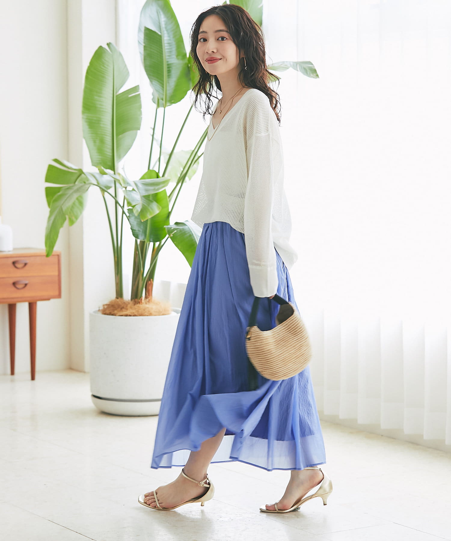 デニムや夏らしいスカートなど、万能に合わせられます。