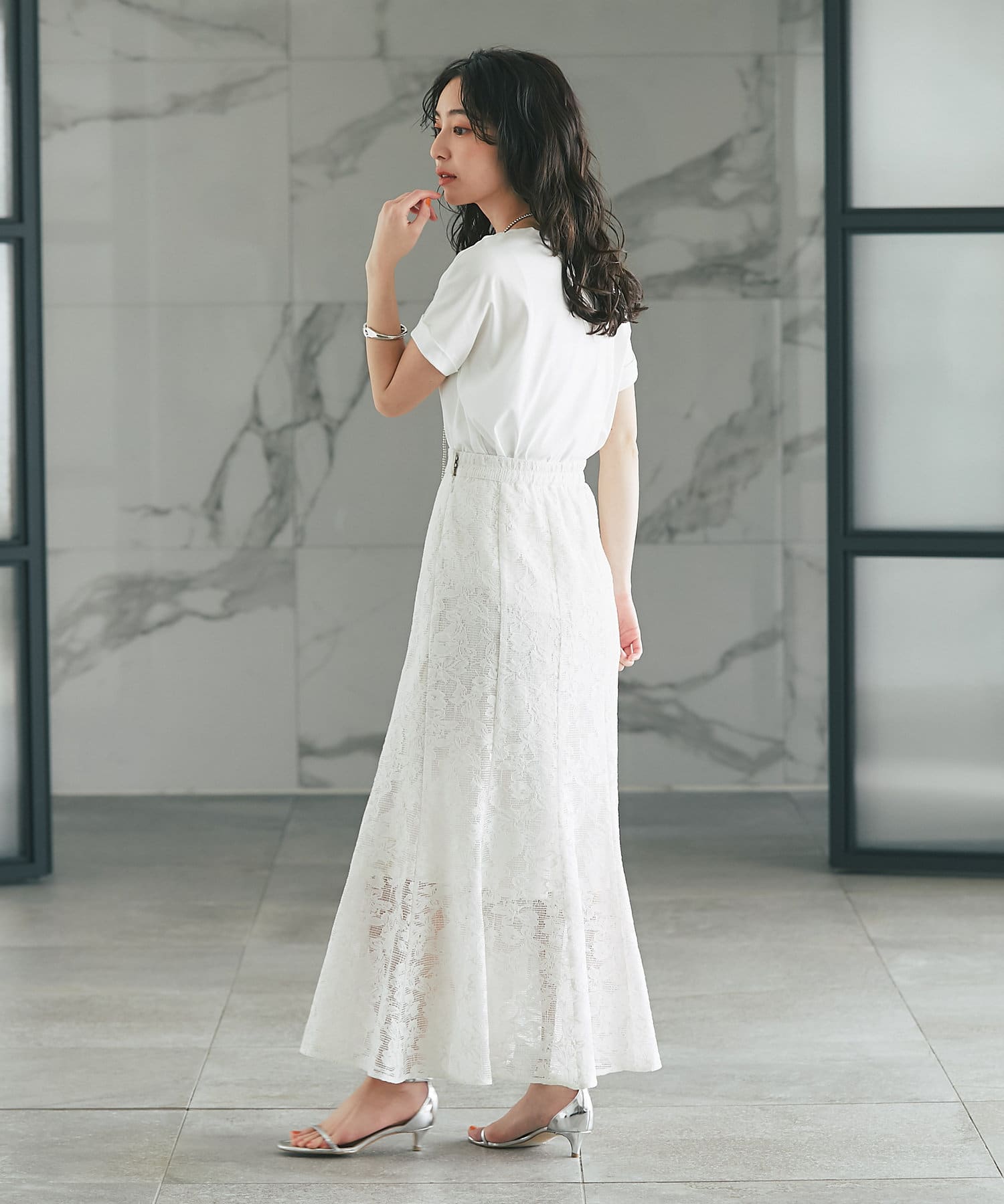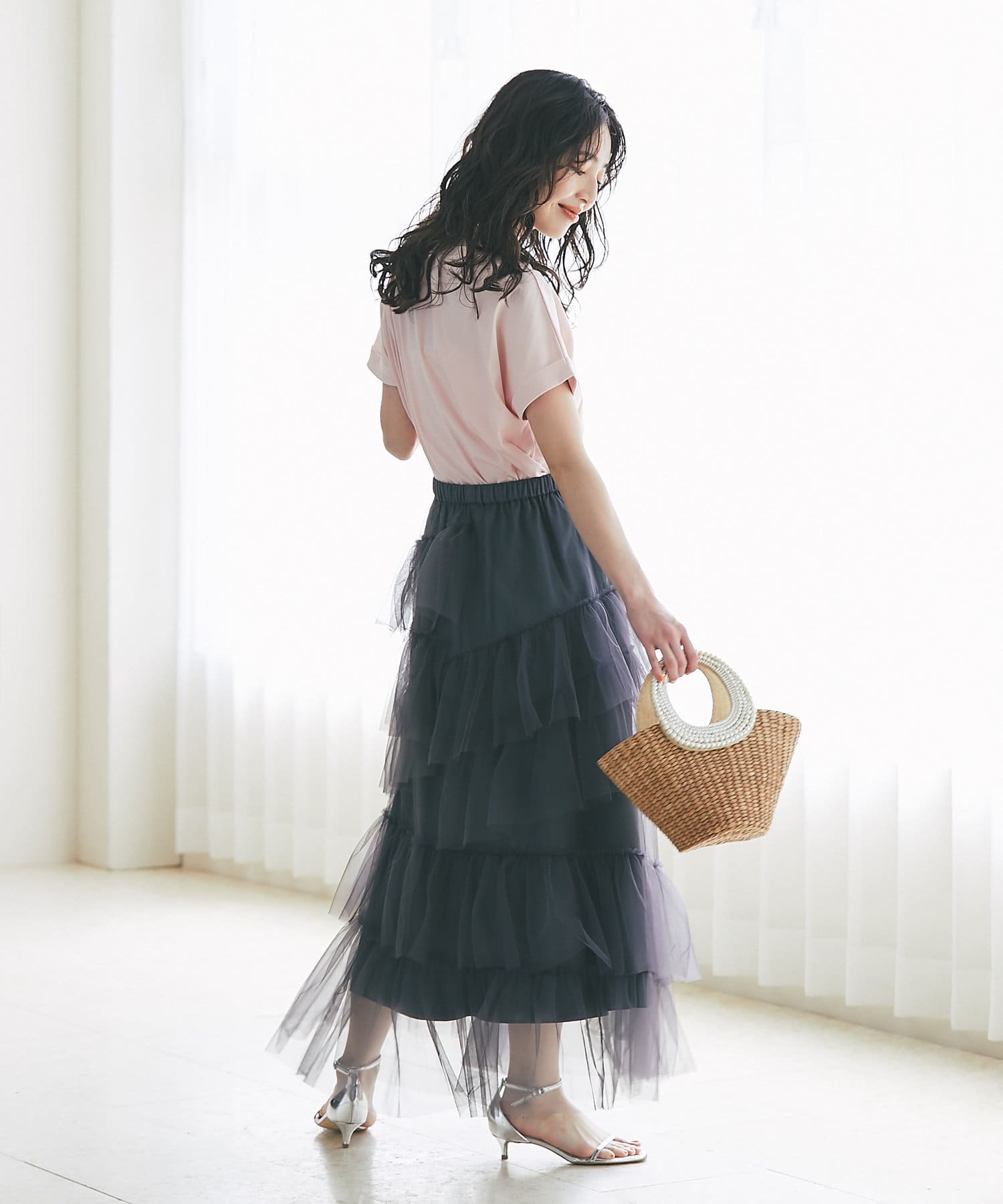 バックスタイルは腰のあたりでふんわり感がでる立体的なシルエット。