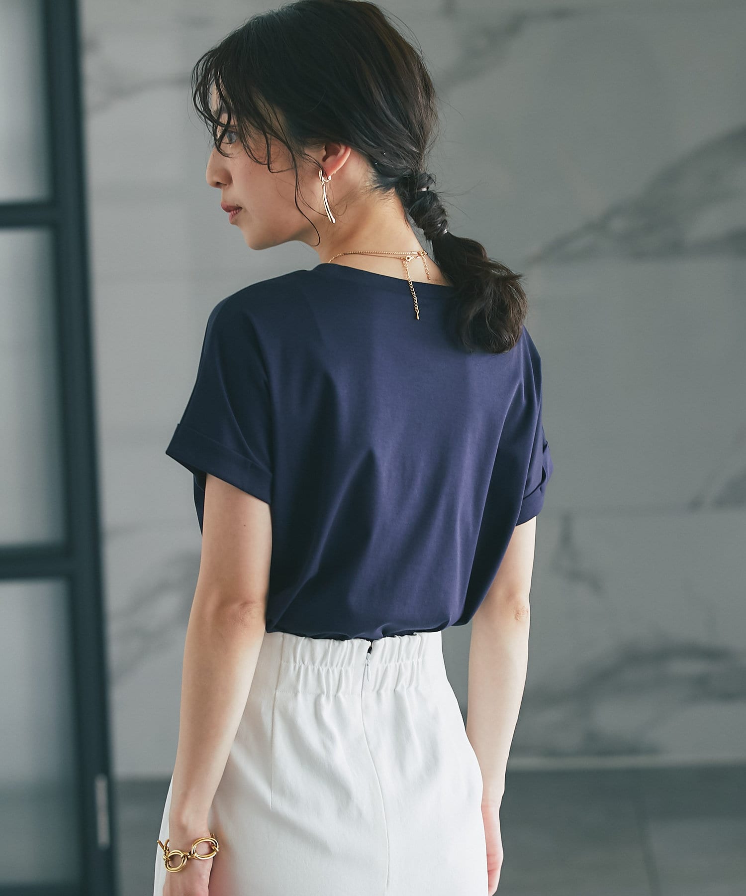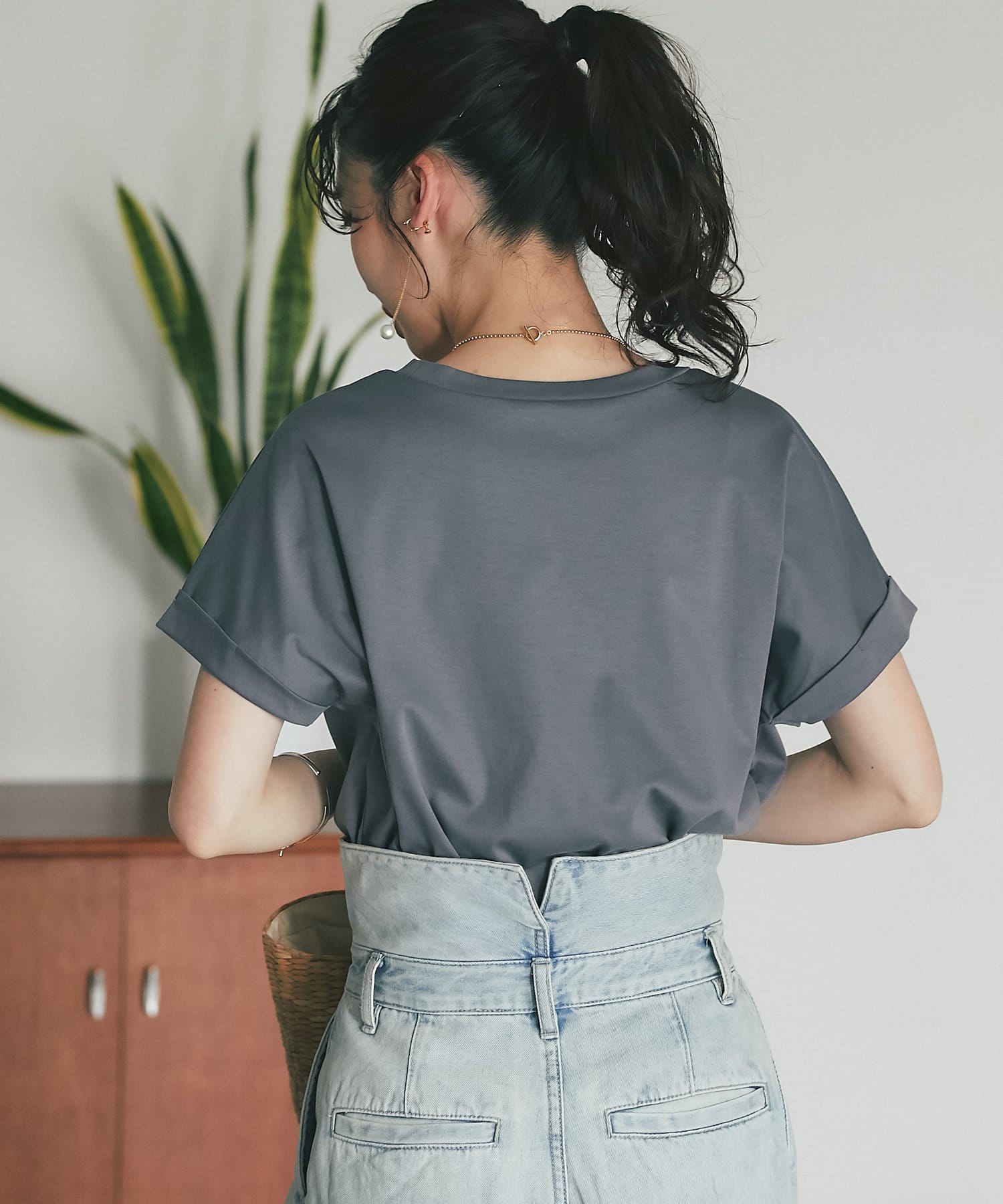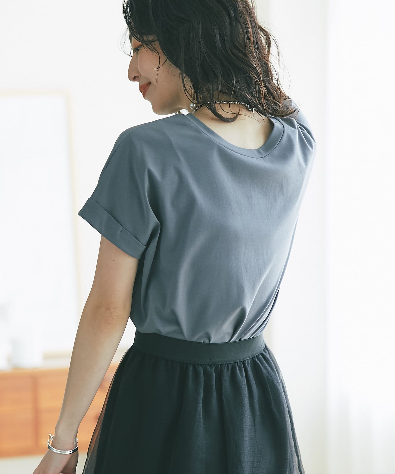 【二の腕すっきり】ターンバックスリーブTシャツ