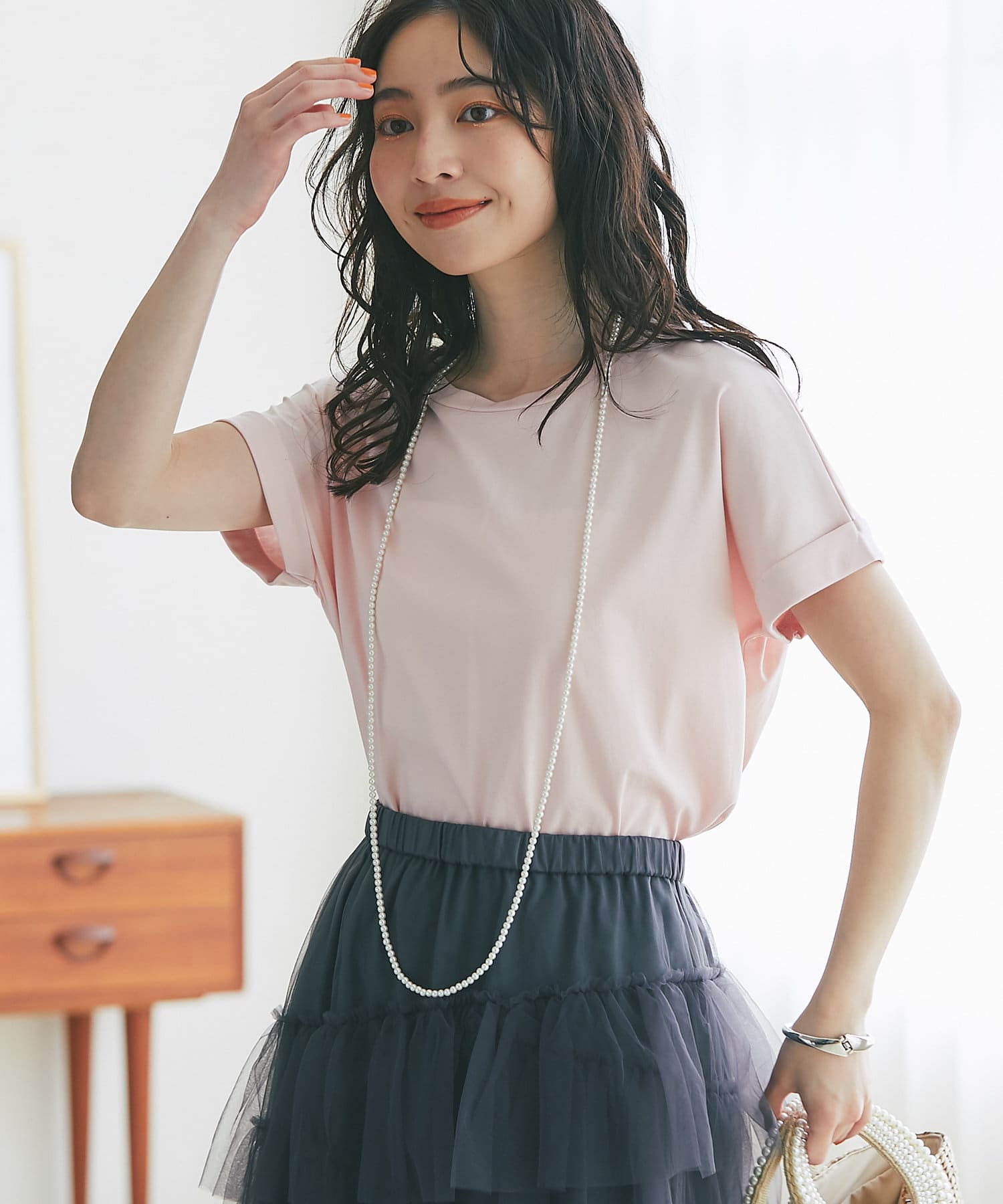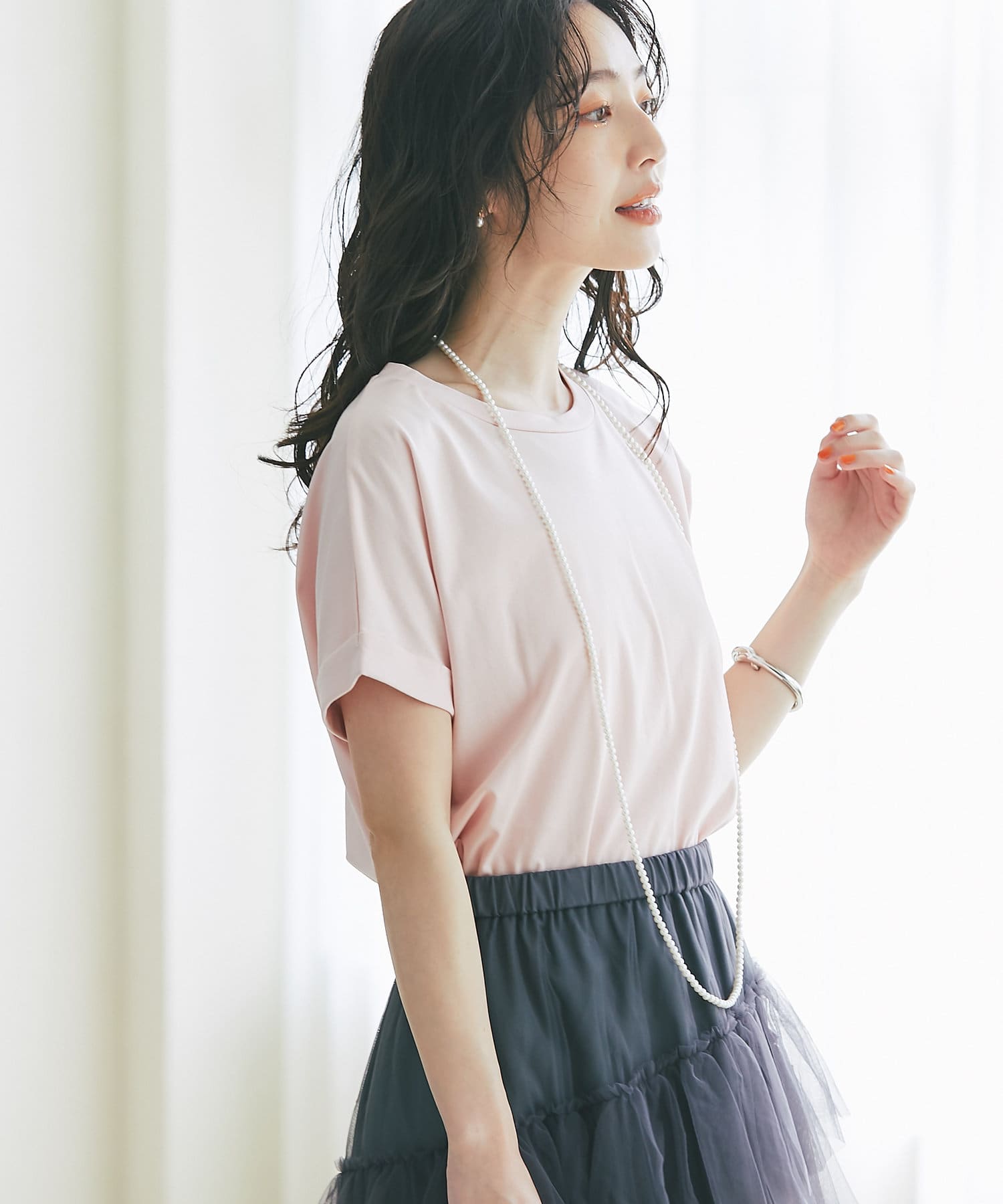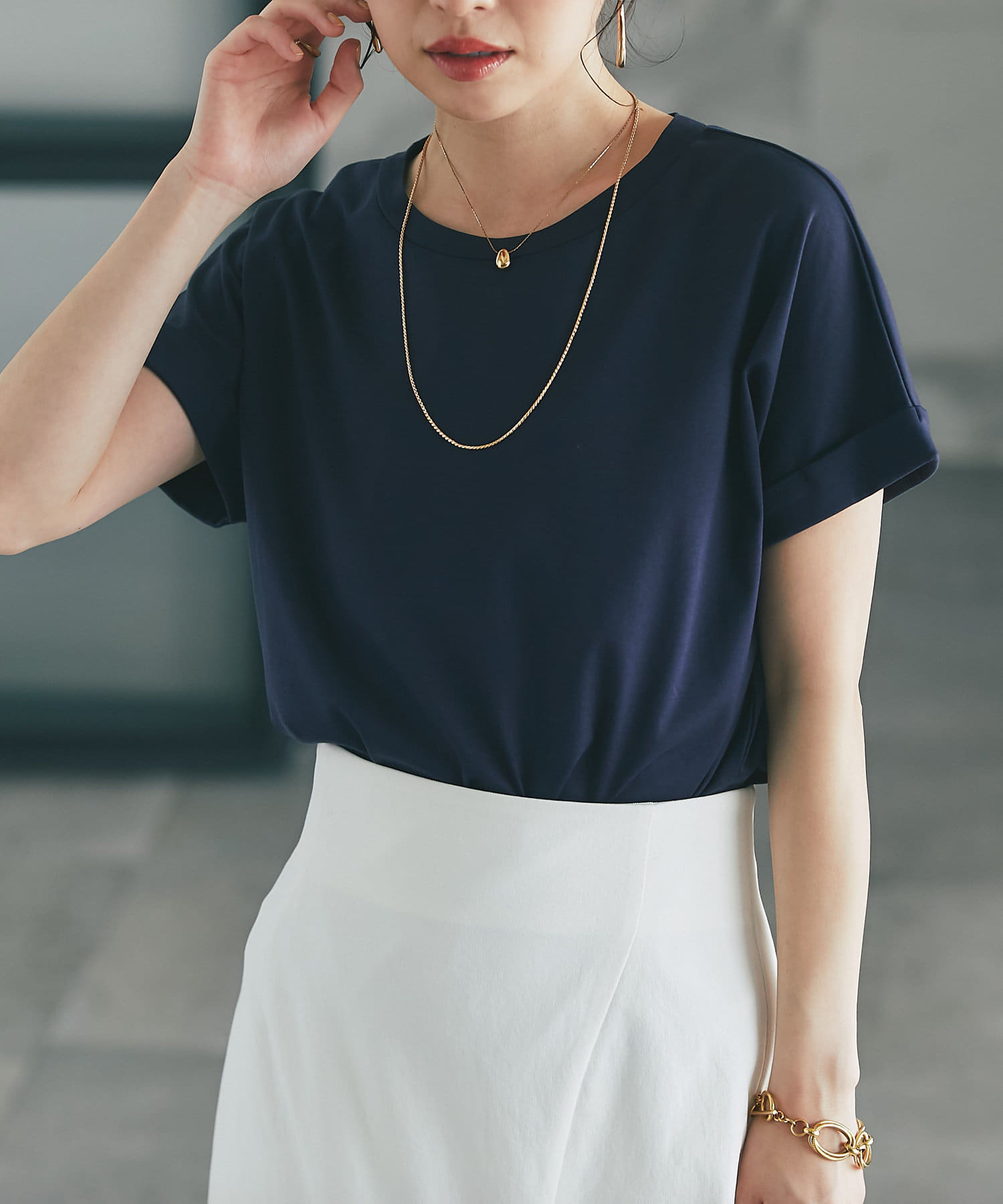 【二の腕すっきり】ターンバックスリーブTシャツ