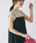 スカート部分を異素材で切り替えた一味違うキャミワンピースです。