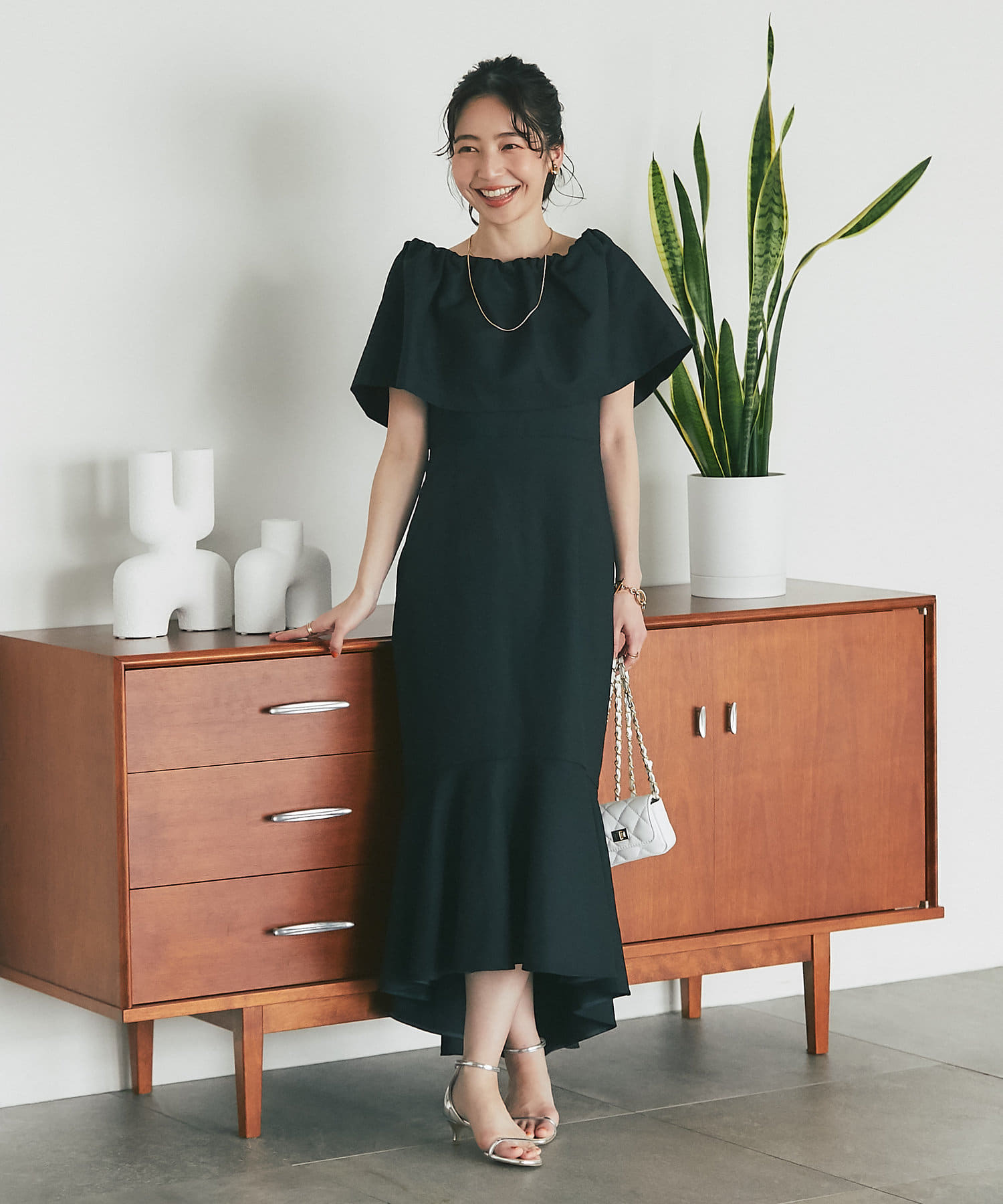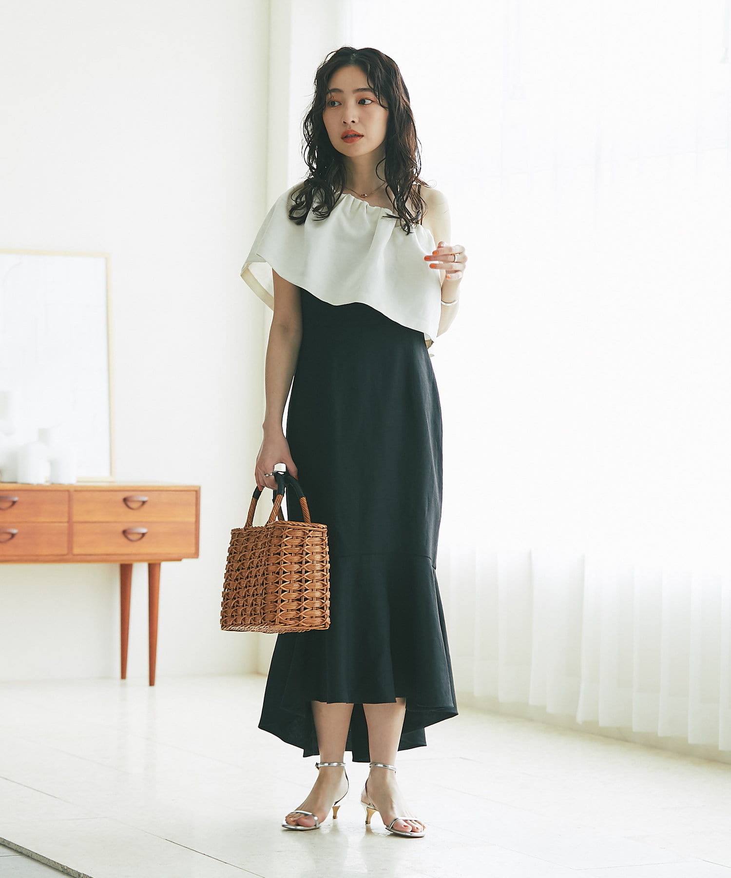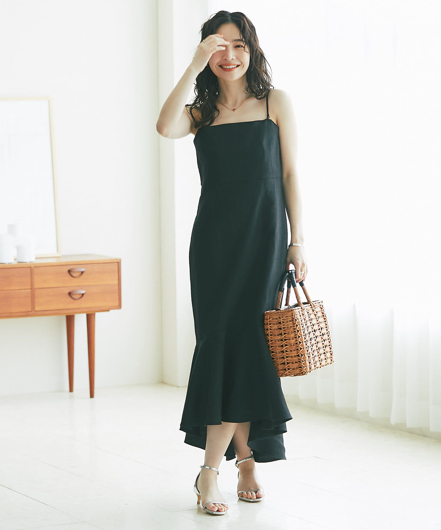 取り外し可能のフリルが付いたマーメイドシルエットのキャミワンピース