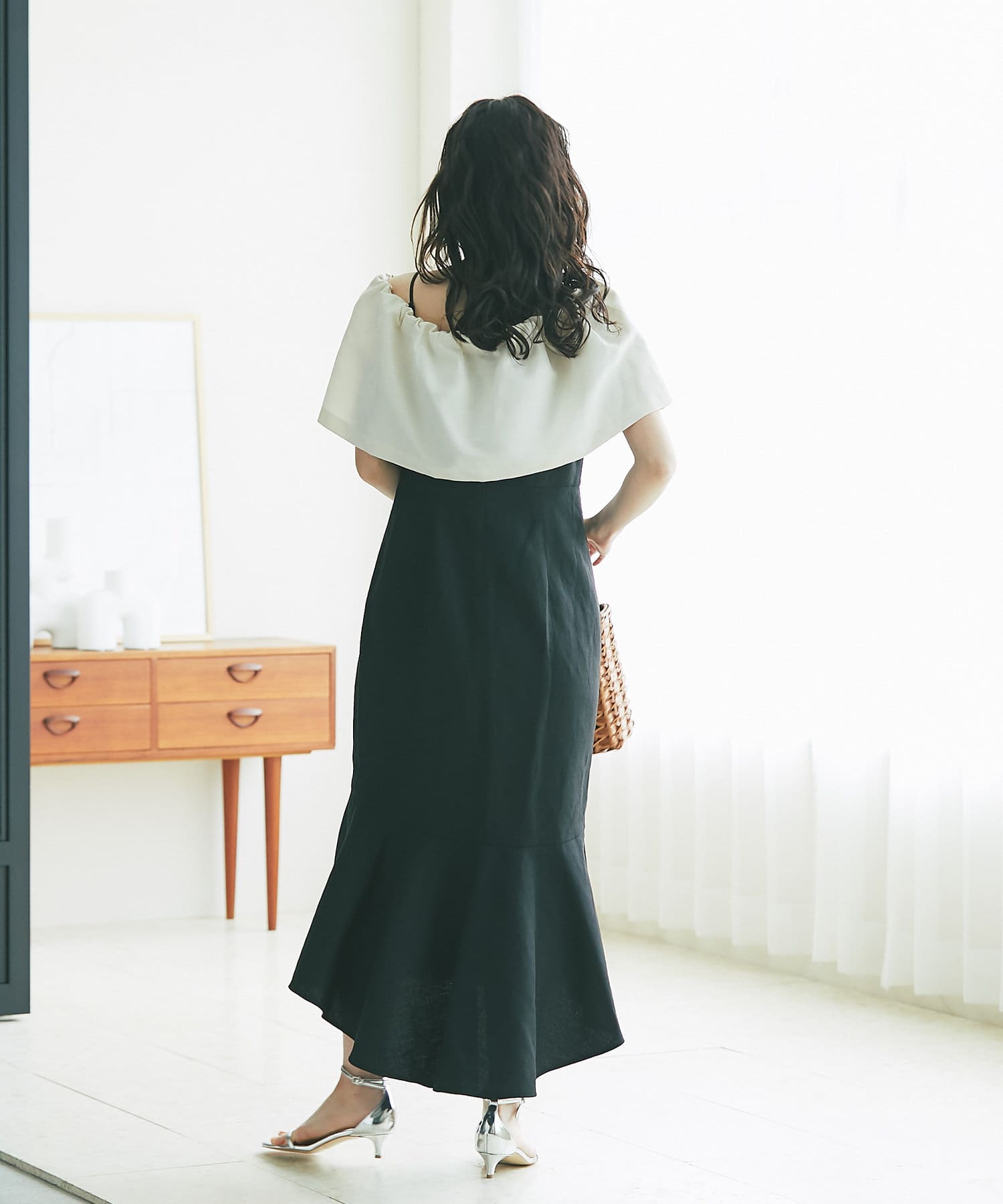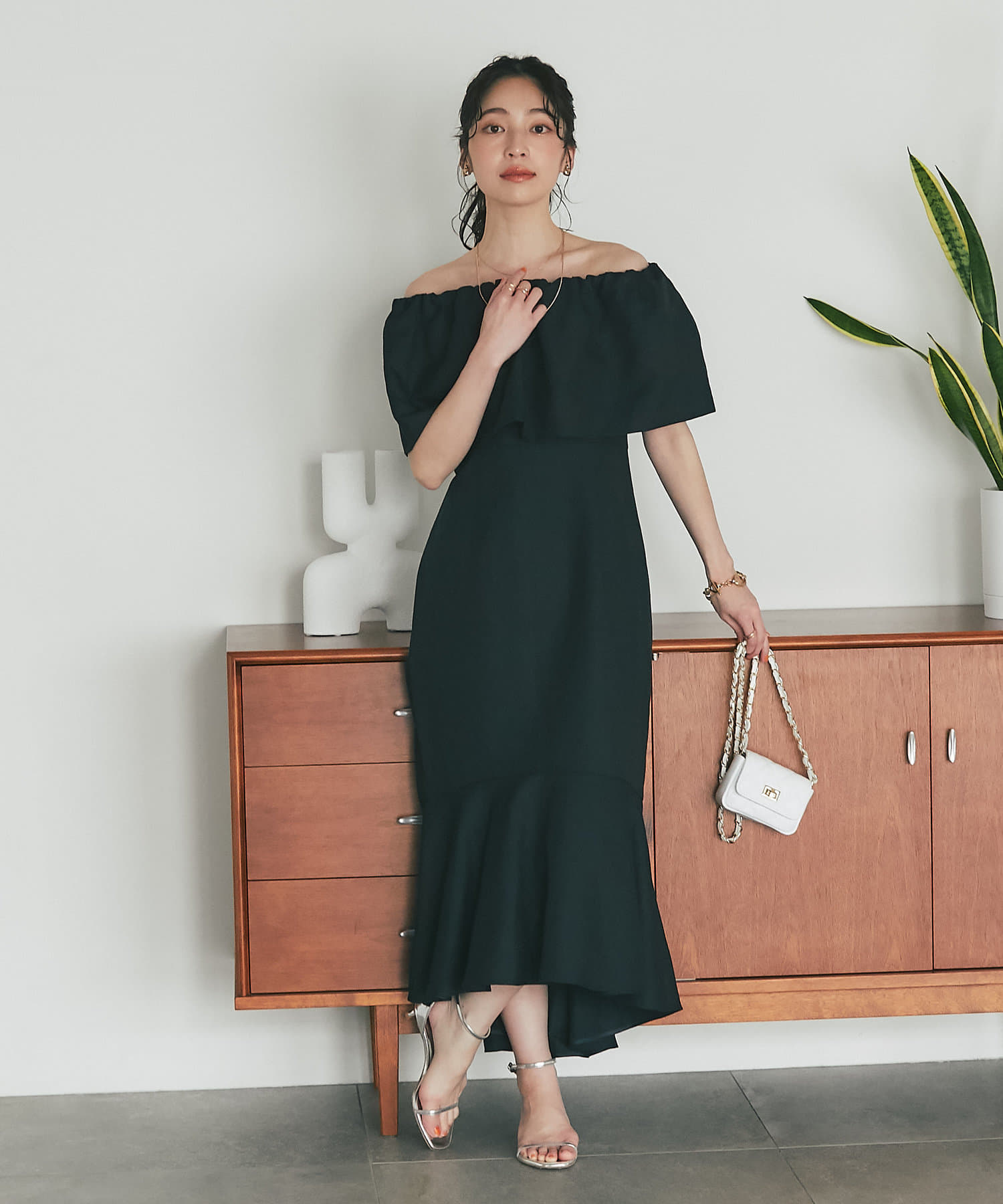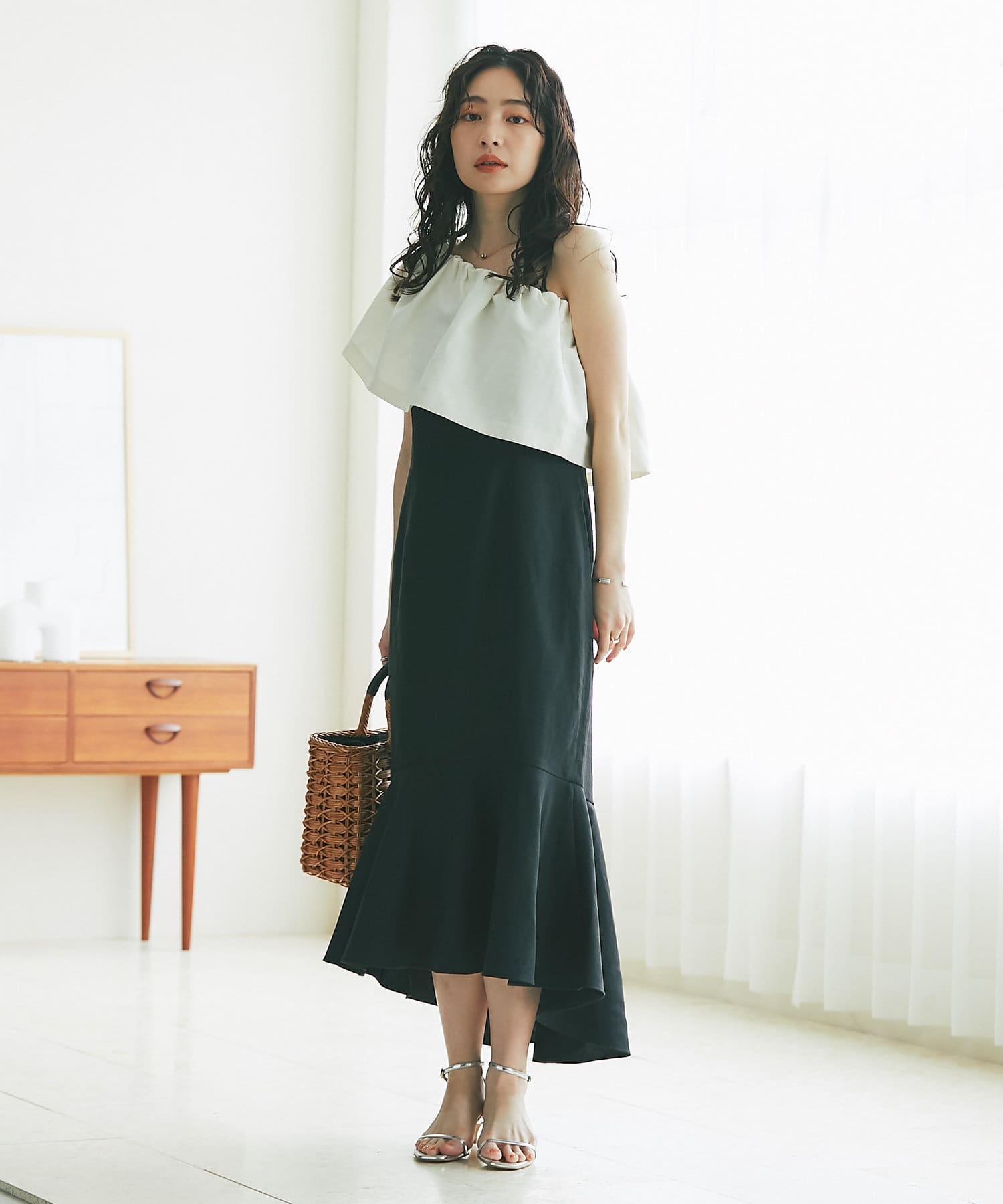 取り外し可能のフリルが付いたマーメイドシルエットのキャミワンピース
