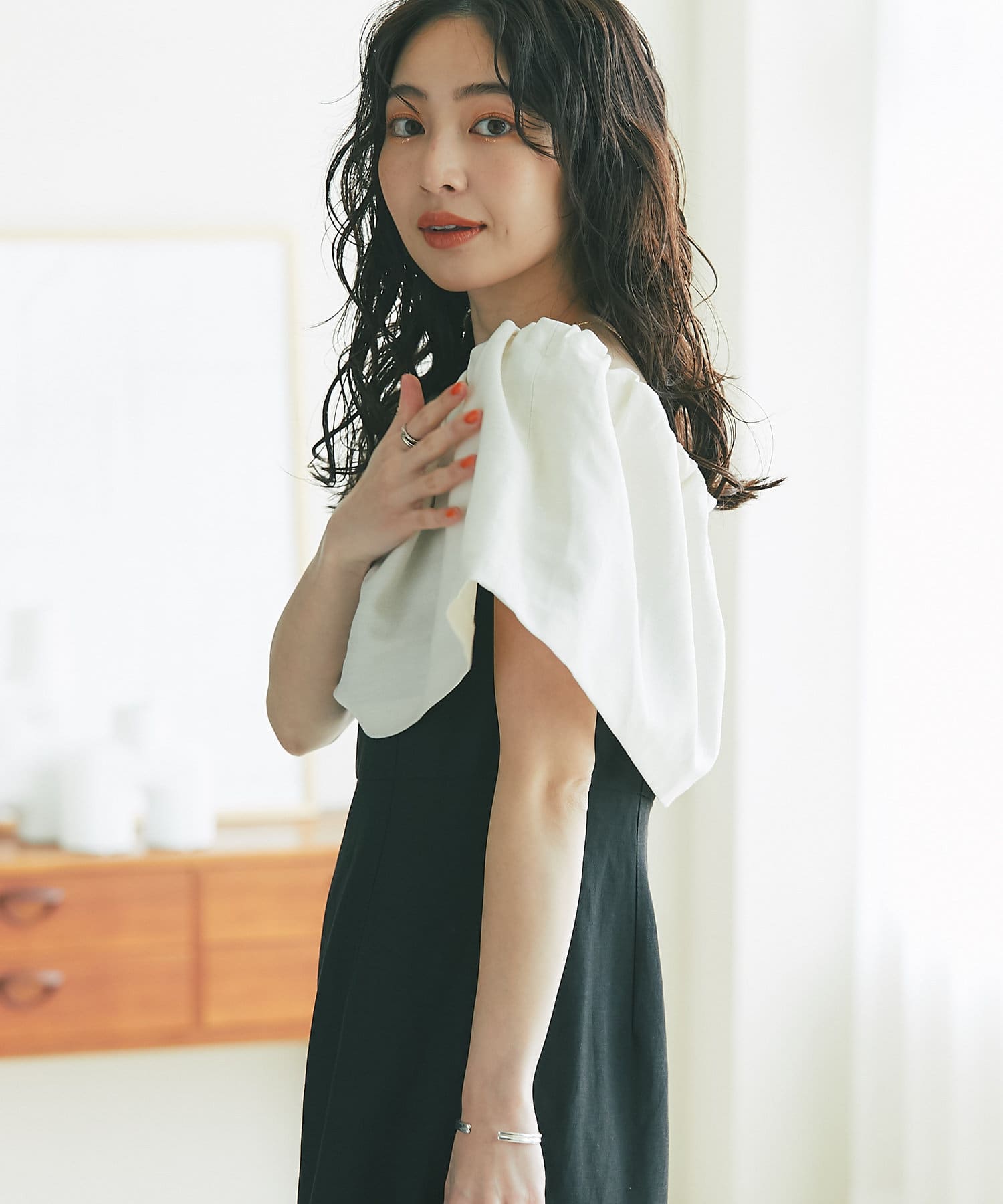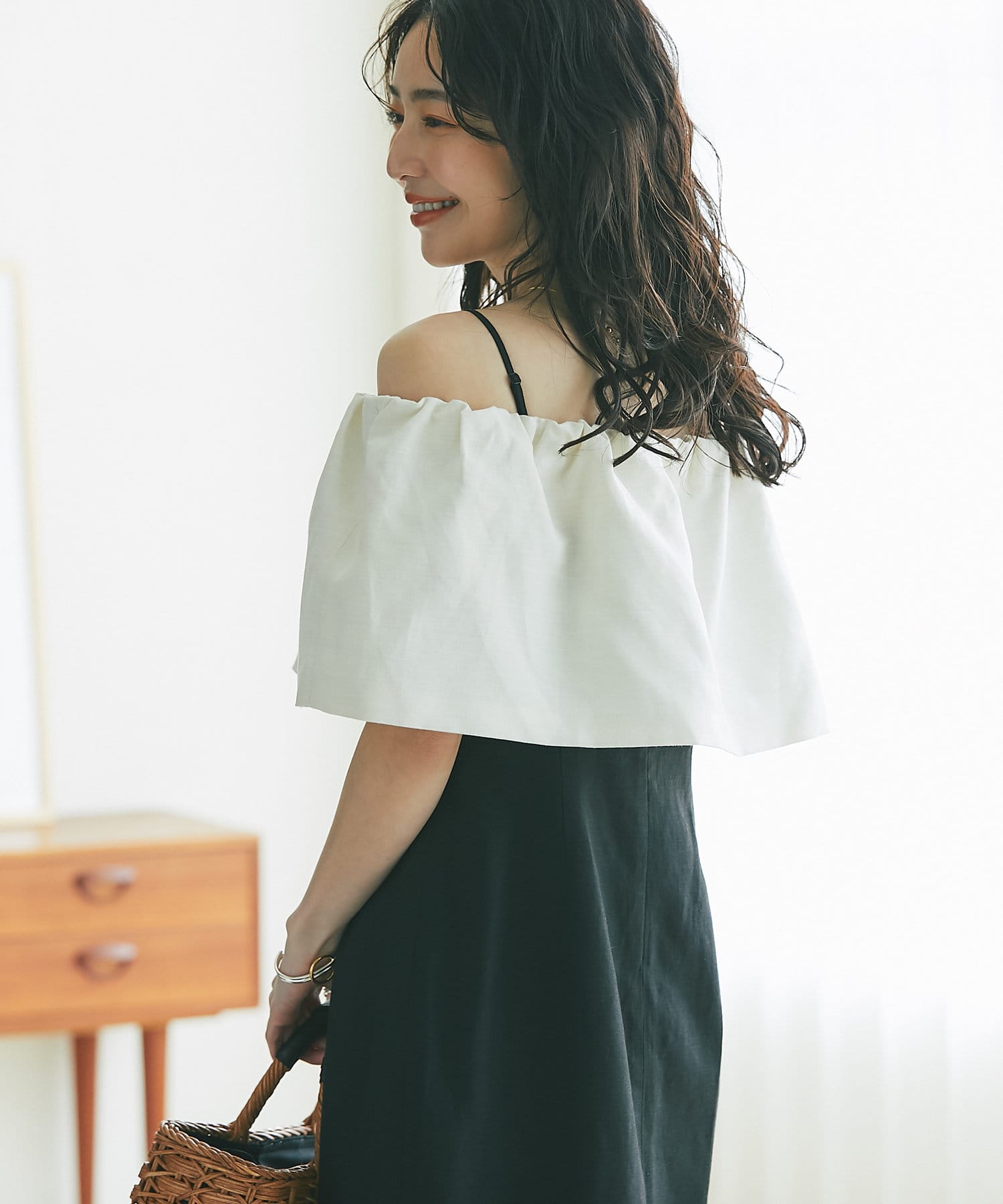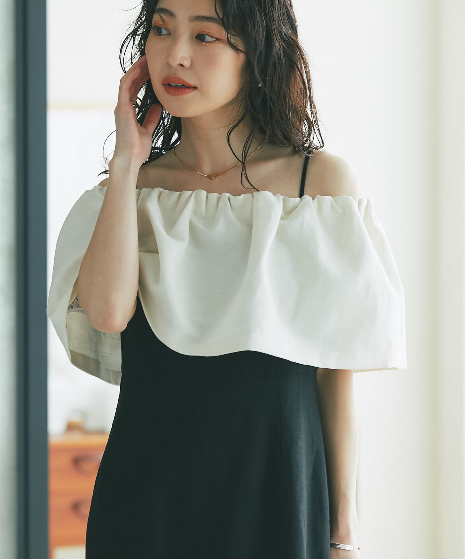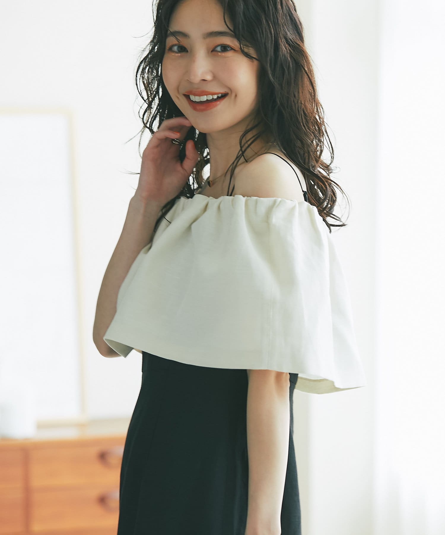 本体のワンピースも肩紐が取り外し可能なのでベアトップ型にもなりスタイリングの幅が広がります。