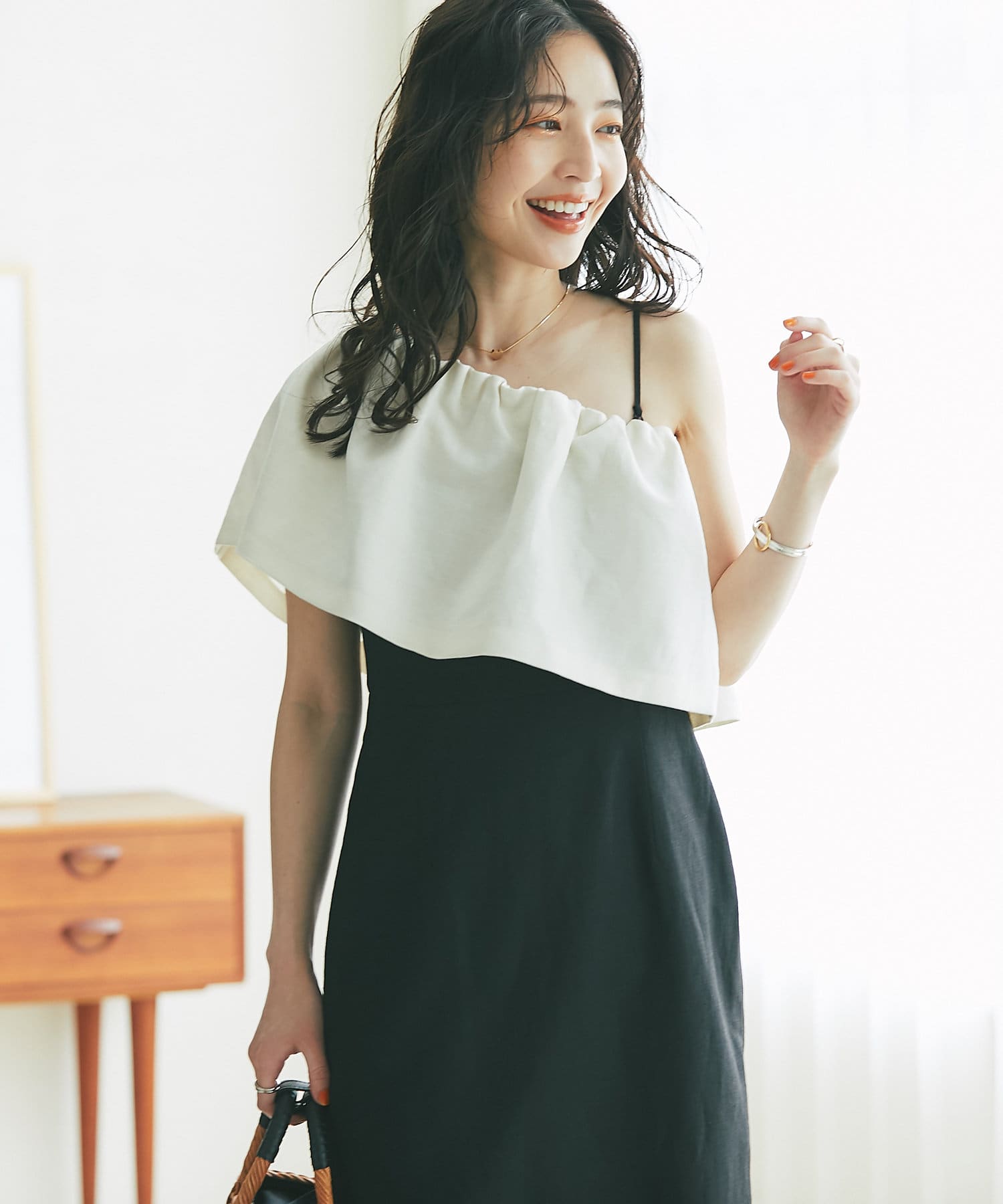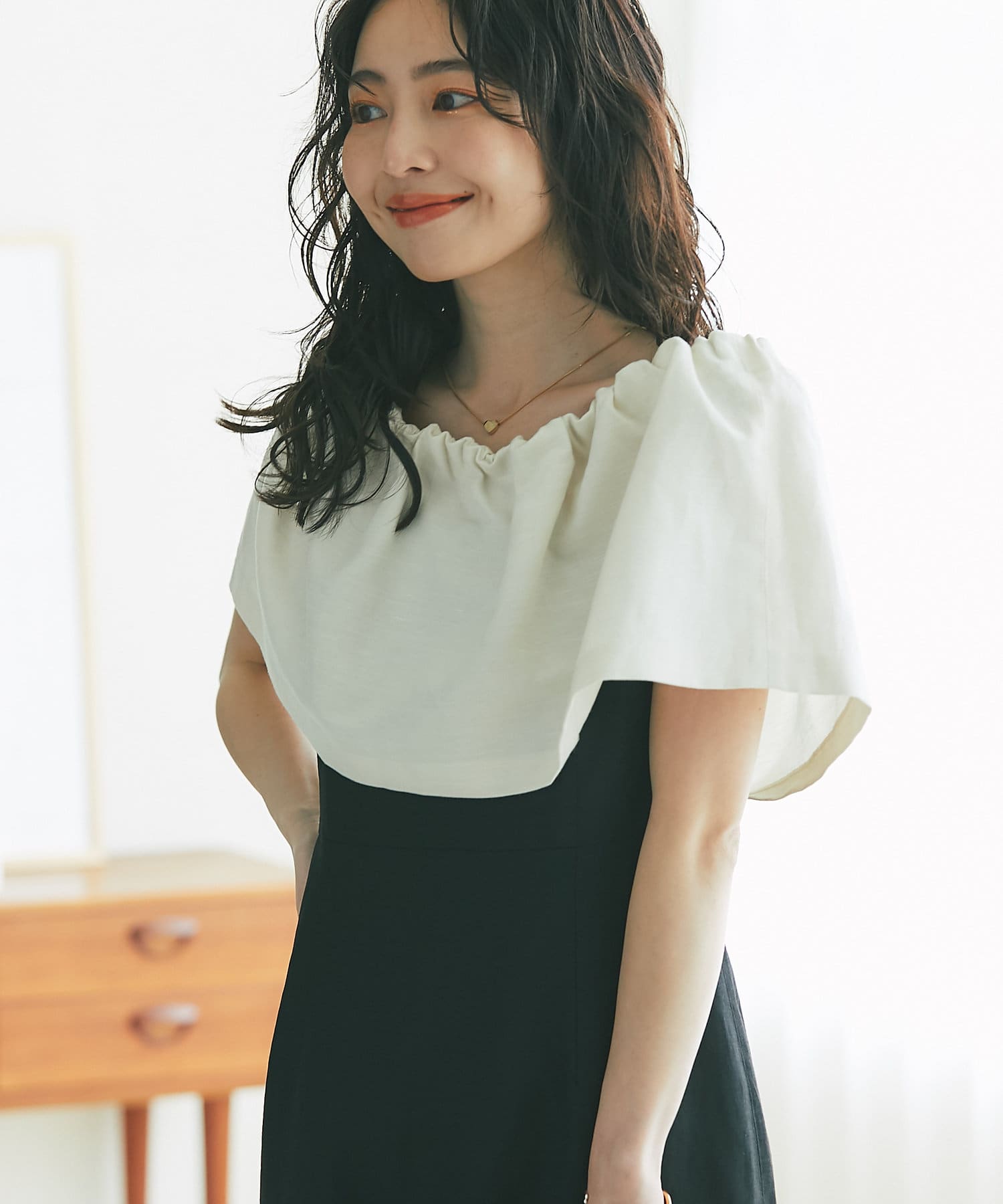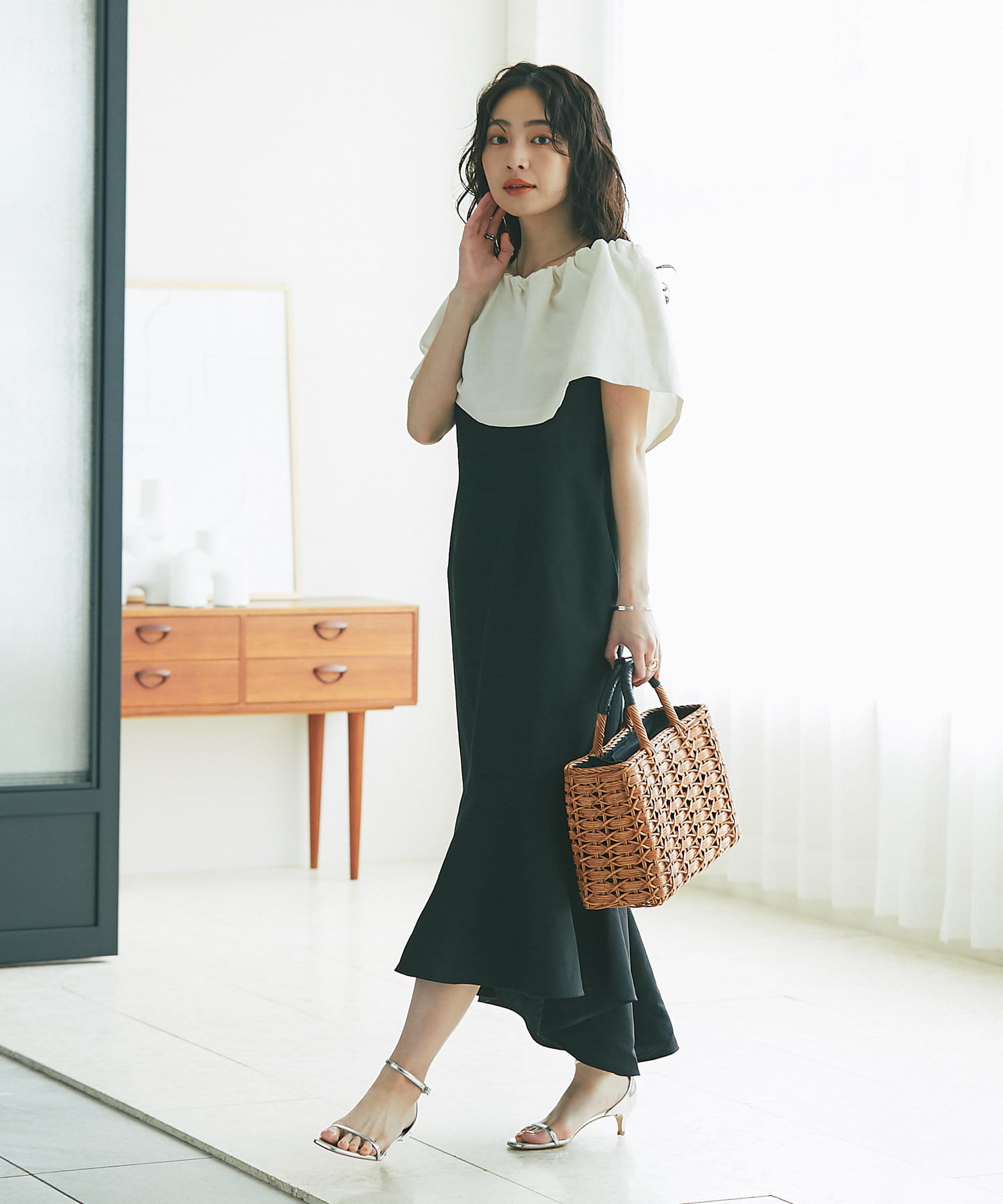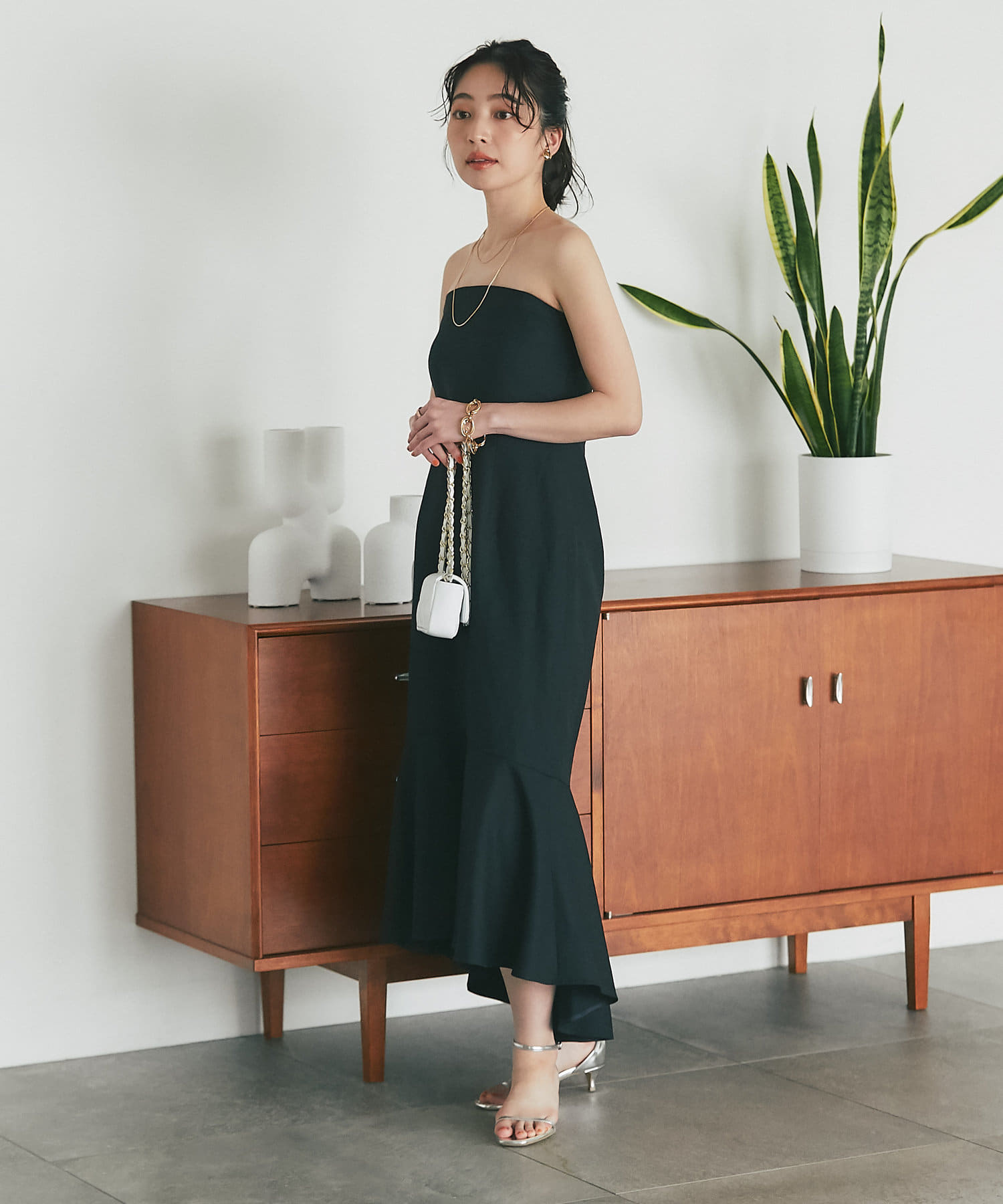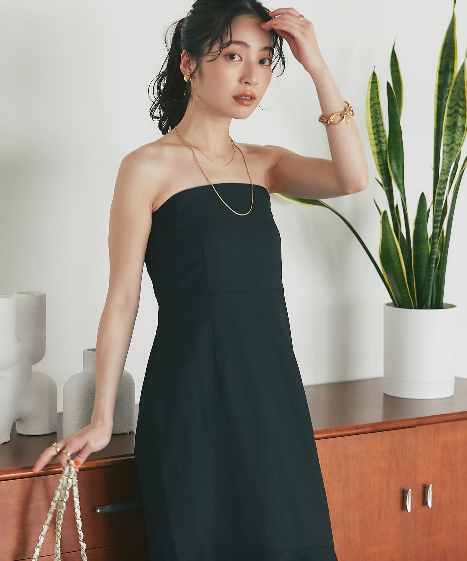 本体のワンピースも肩紐が取り外し可能なのでベアトップ型にもなりスタイリングの幅が広がります。