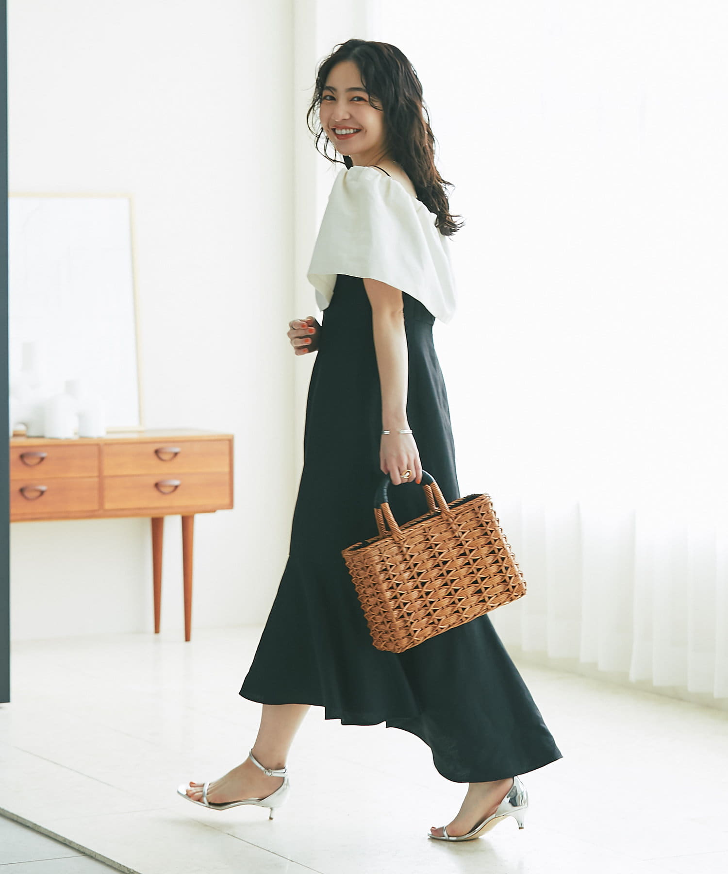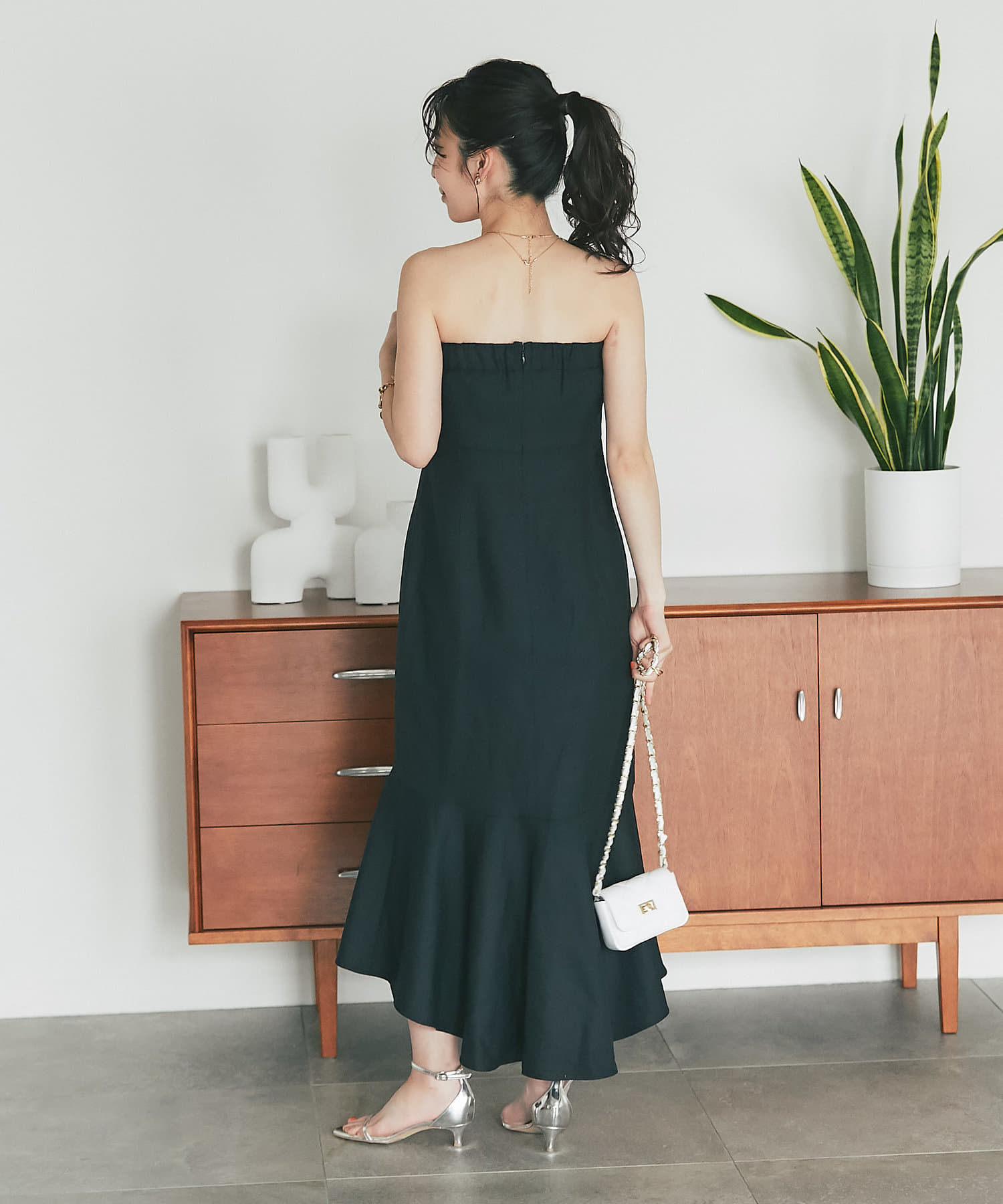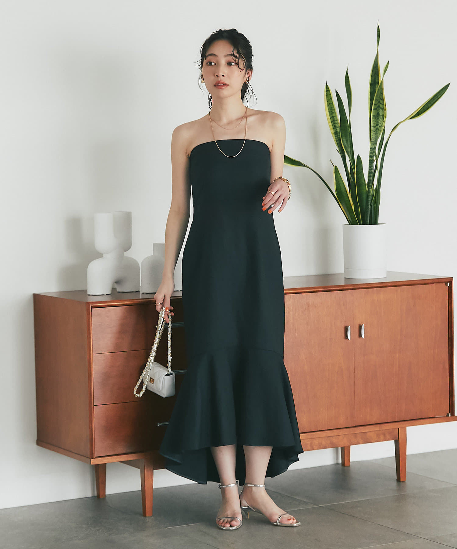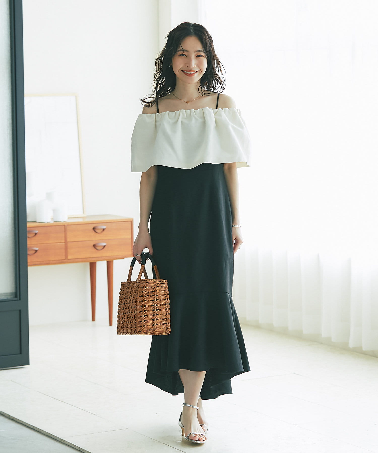 本体のワンピースも肩紐が取り外し可能なのでベアトップ型にもなりスタイリングの幅が広がります。