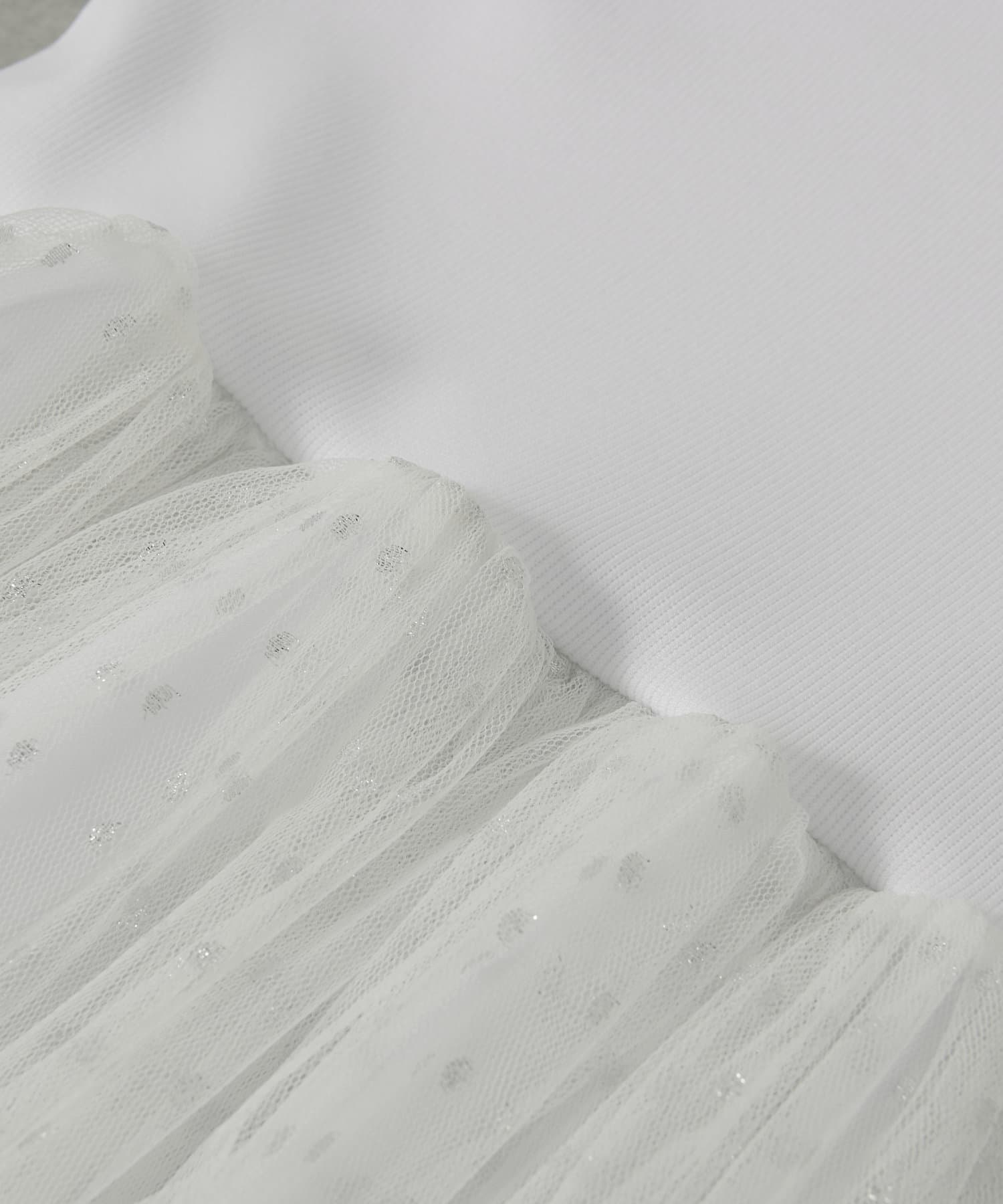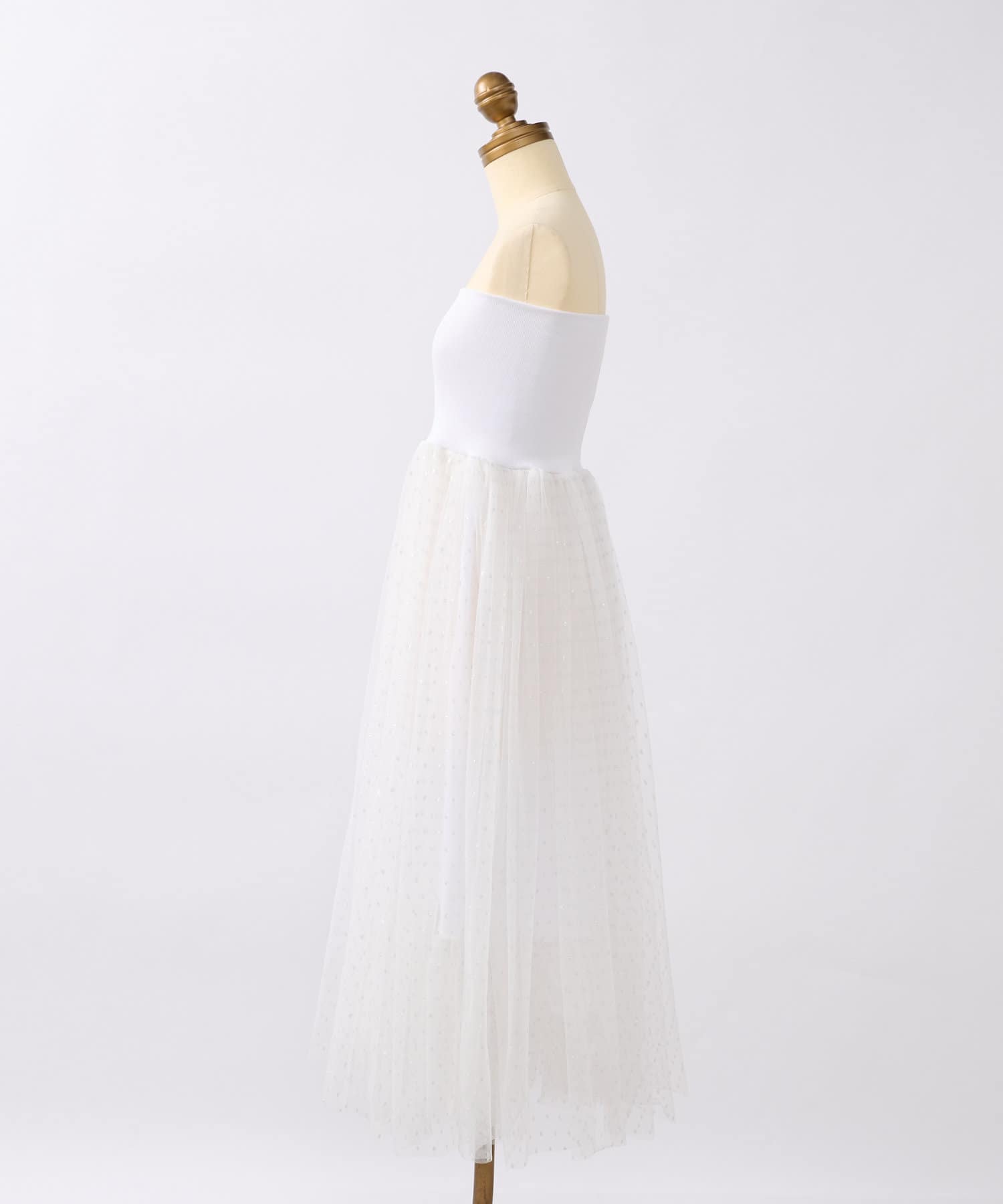 スカート裾はチュールを2枚重ねにすることで足元に華やかな揺れ感を演出してくれます。