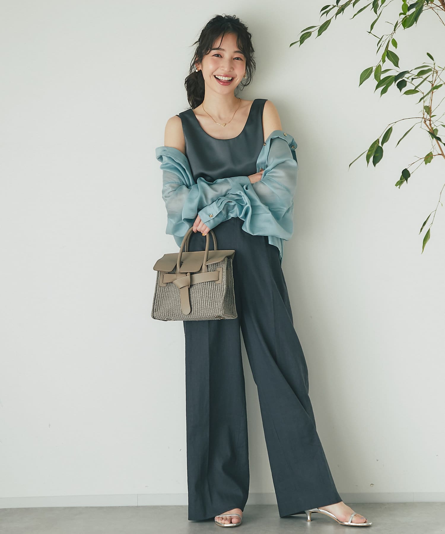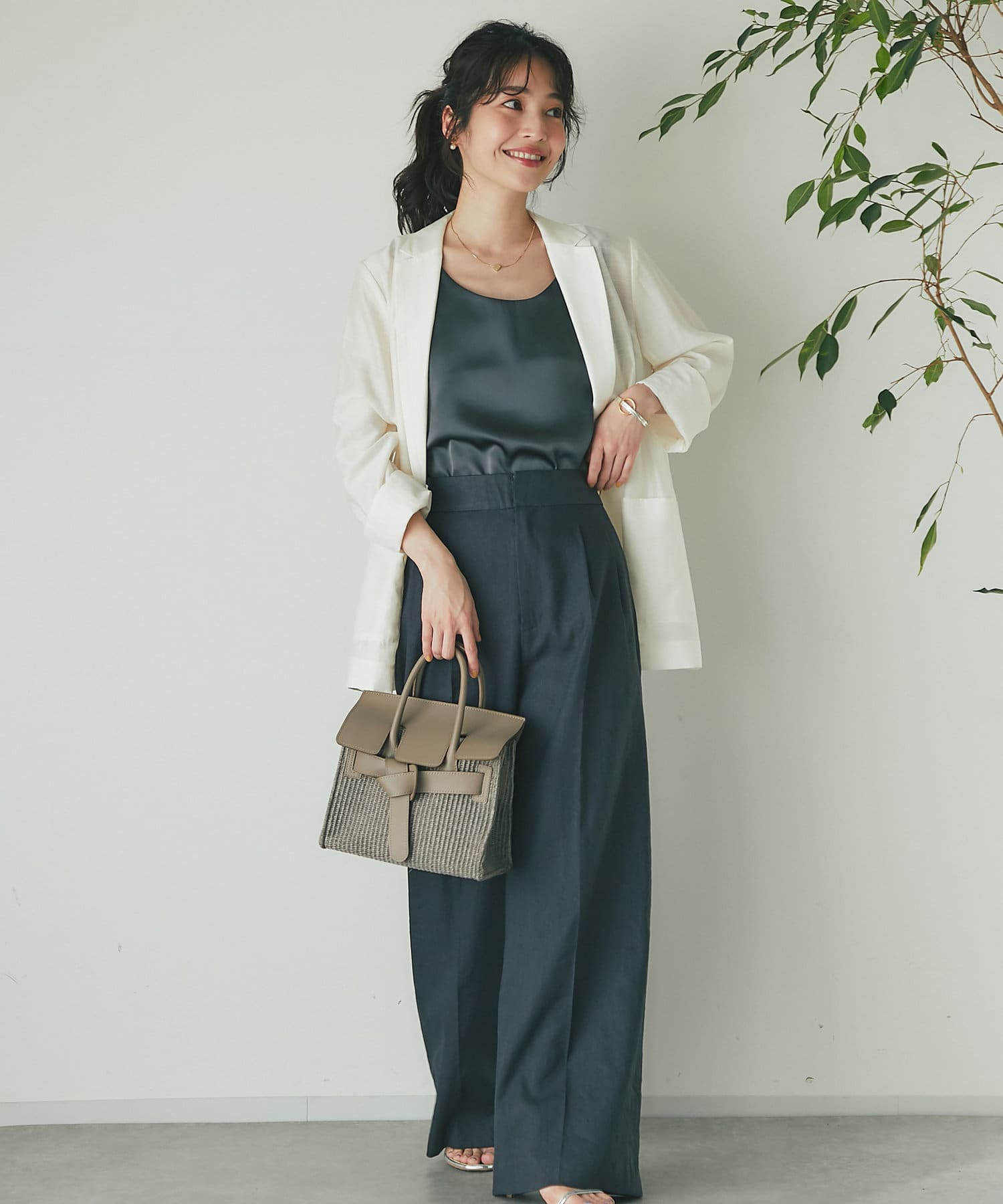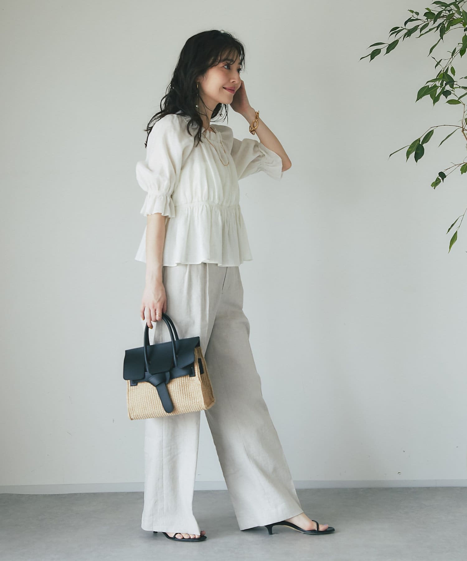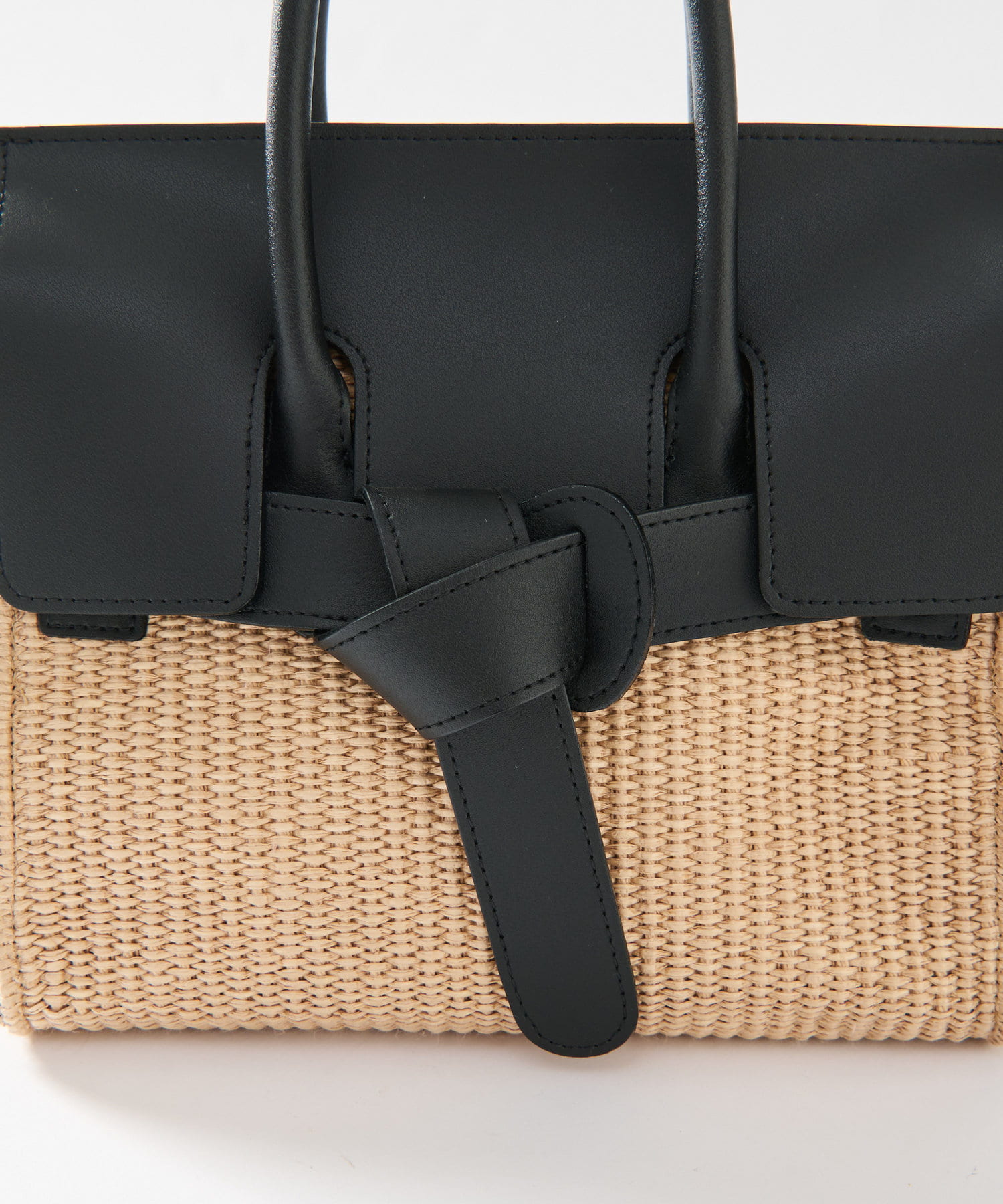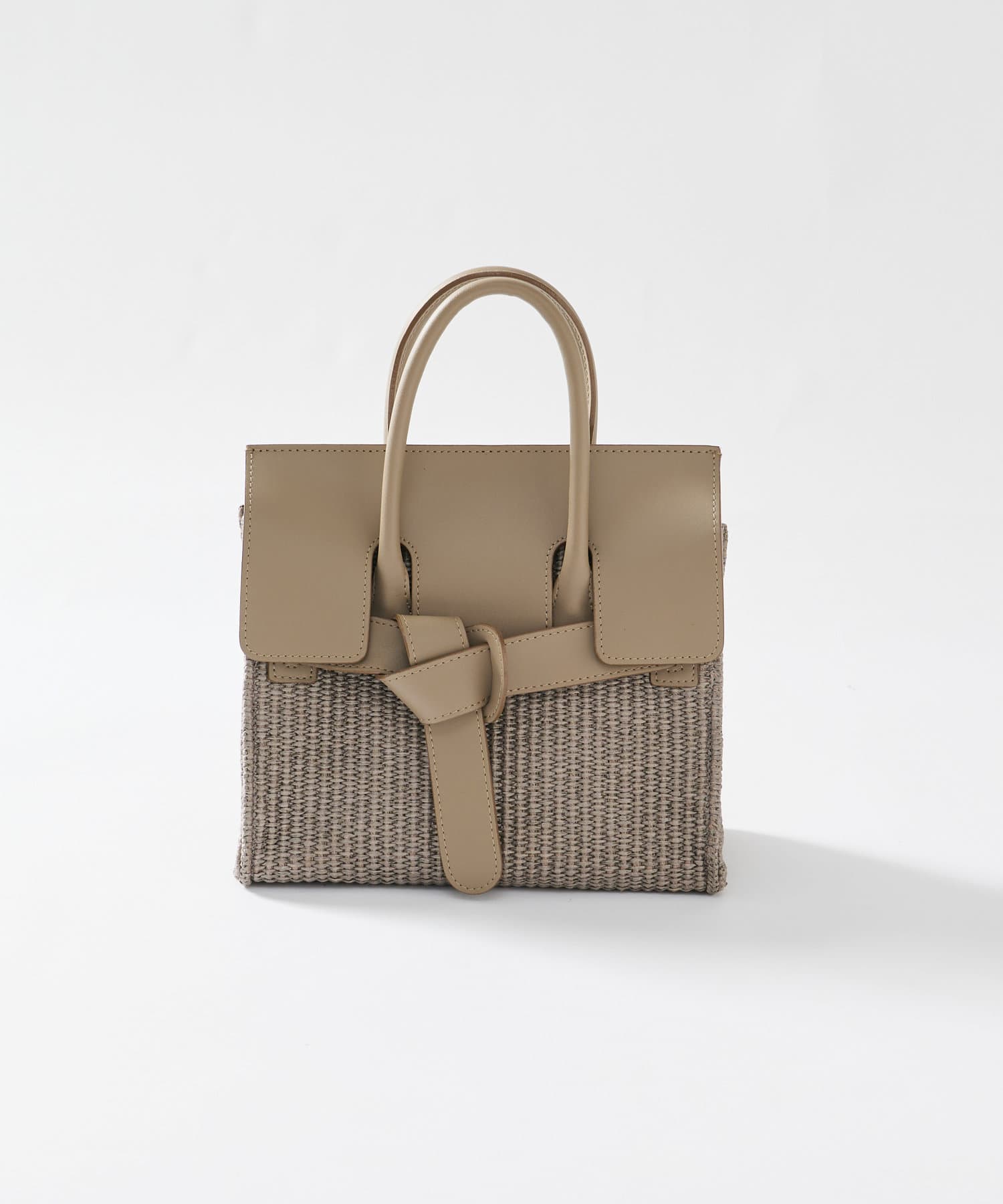 涼しげなナチュラル素材にリアルレザーが合わさり、大人っぽい高級感ある仕上がりです。
