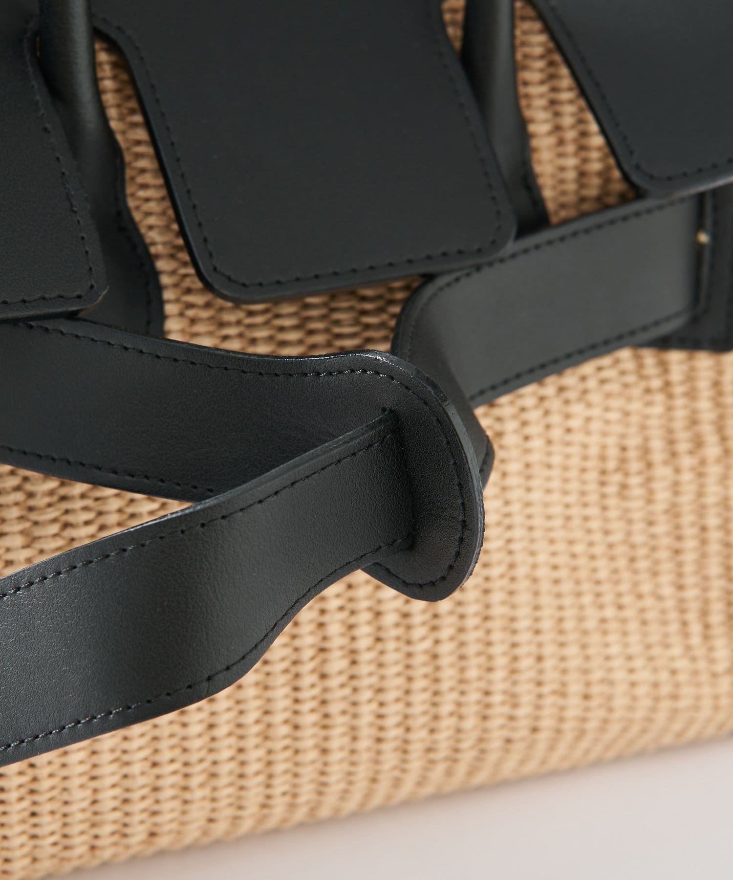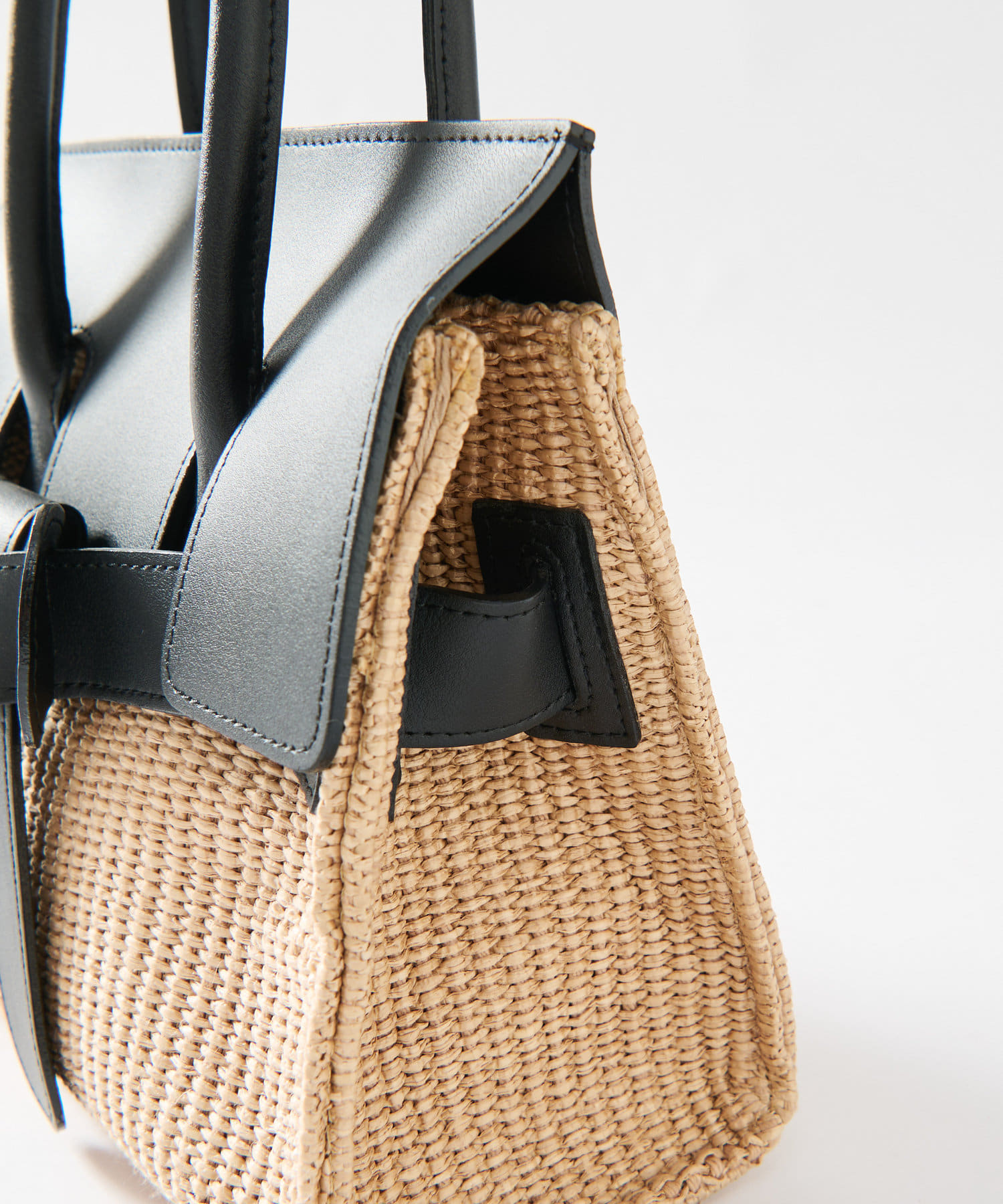 上品な風合いとカラーが魅力のイタリア製のラフィア調シートを使用したかごバッグ。