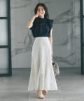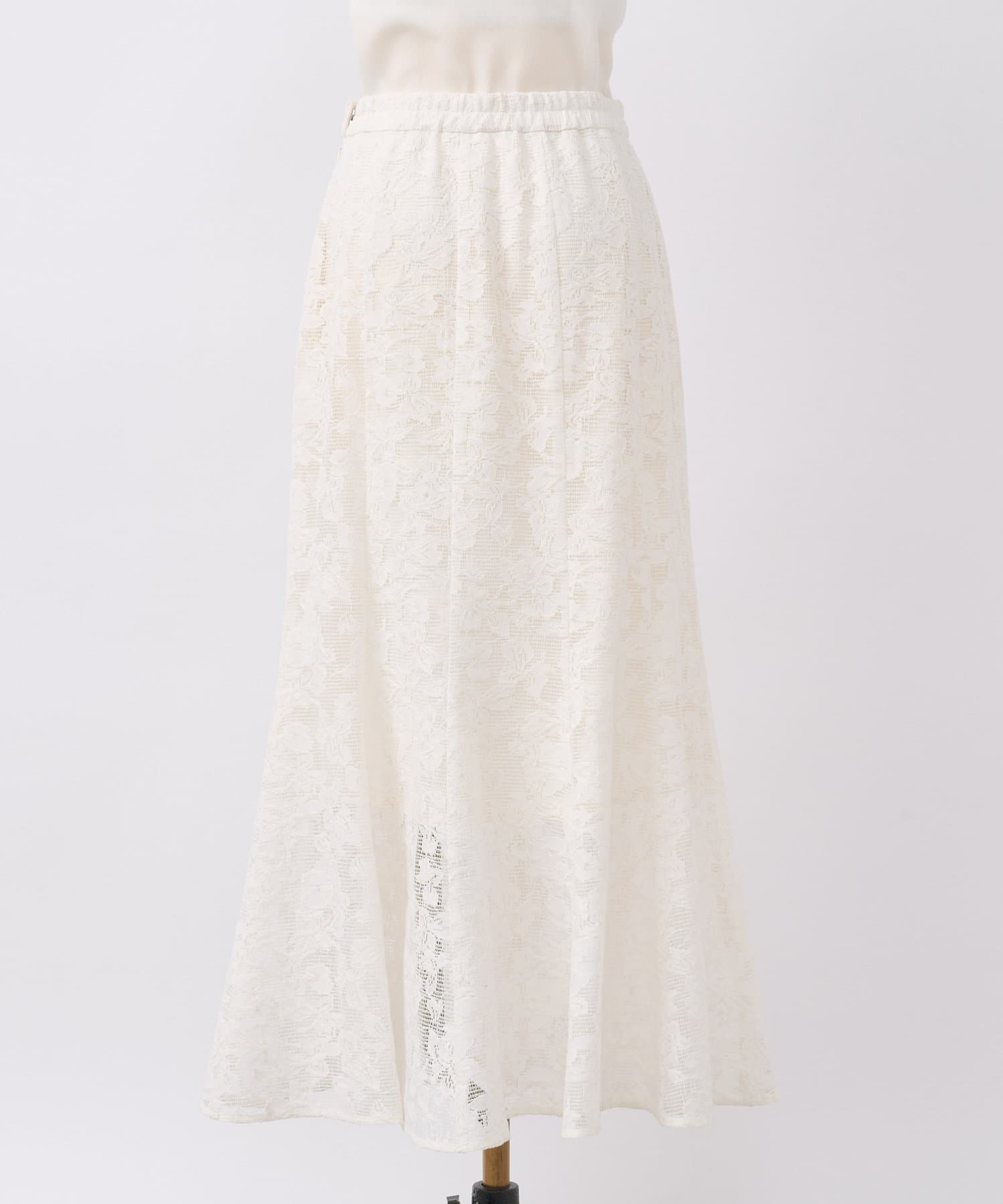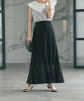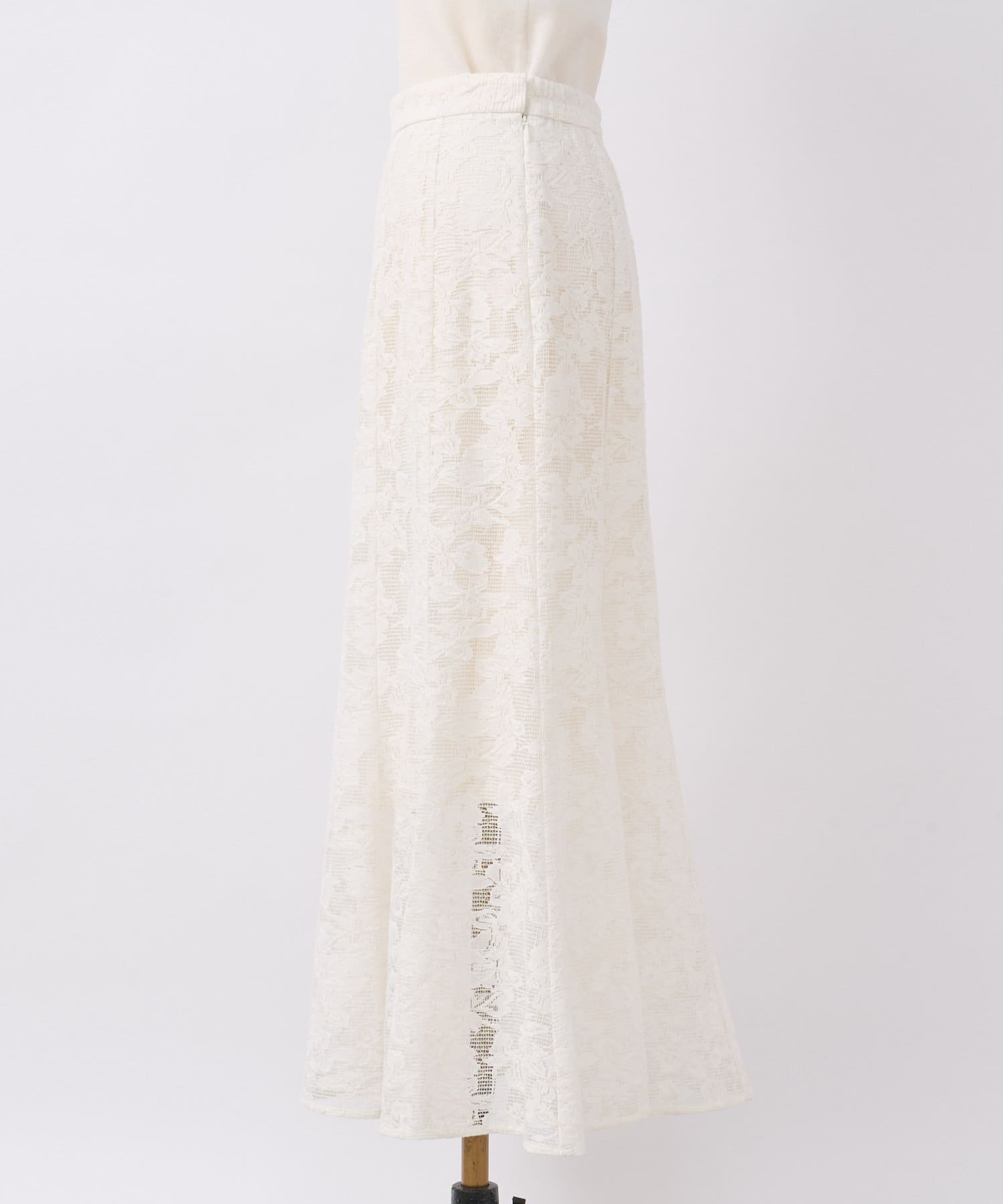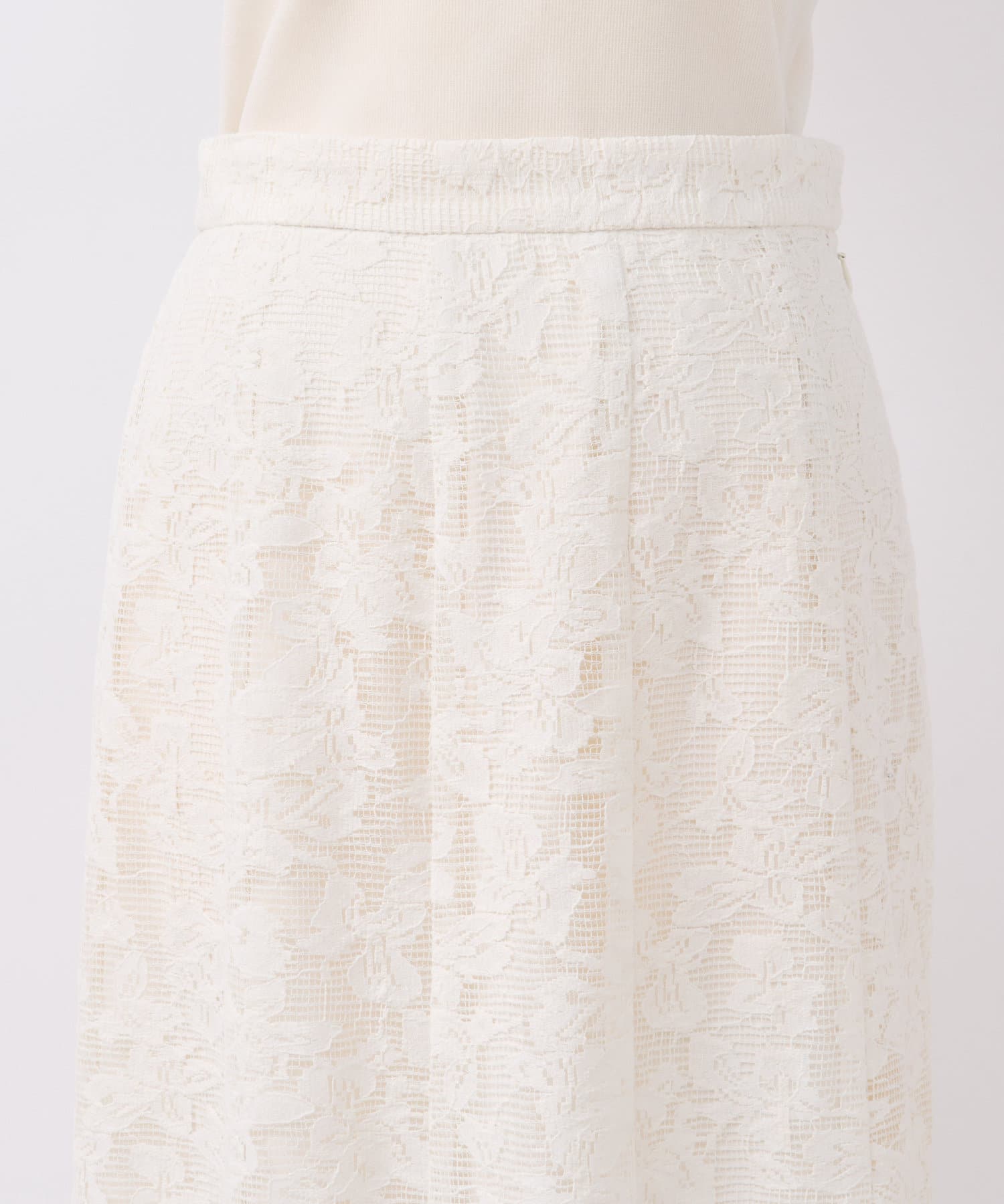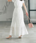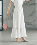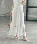 フラワー柄レースを贅沢にあしらったエレガントなロングスカート。