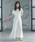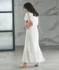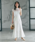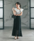 腰回りはすっきりと膝下から裾に向かってふんわり広がるシルエットはボディラインを女性らしくきれいに見せてくれます。