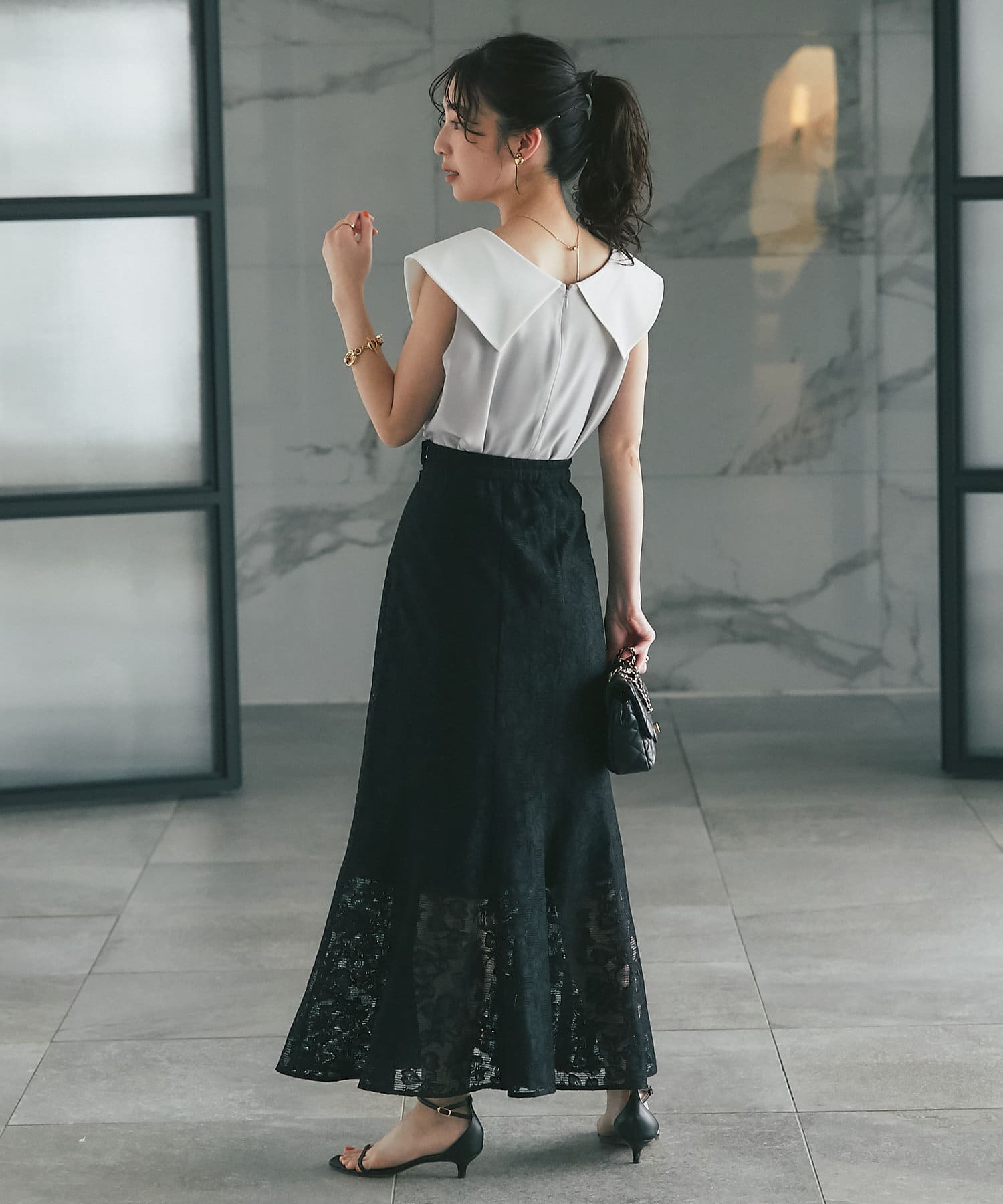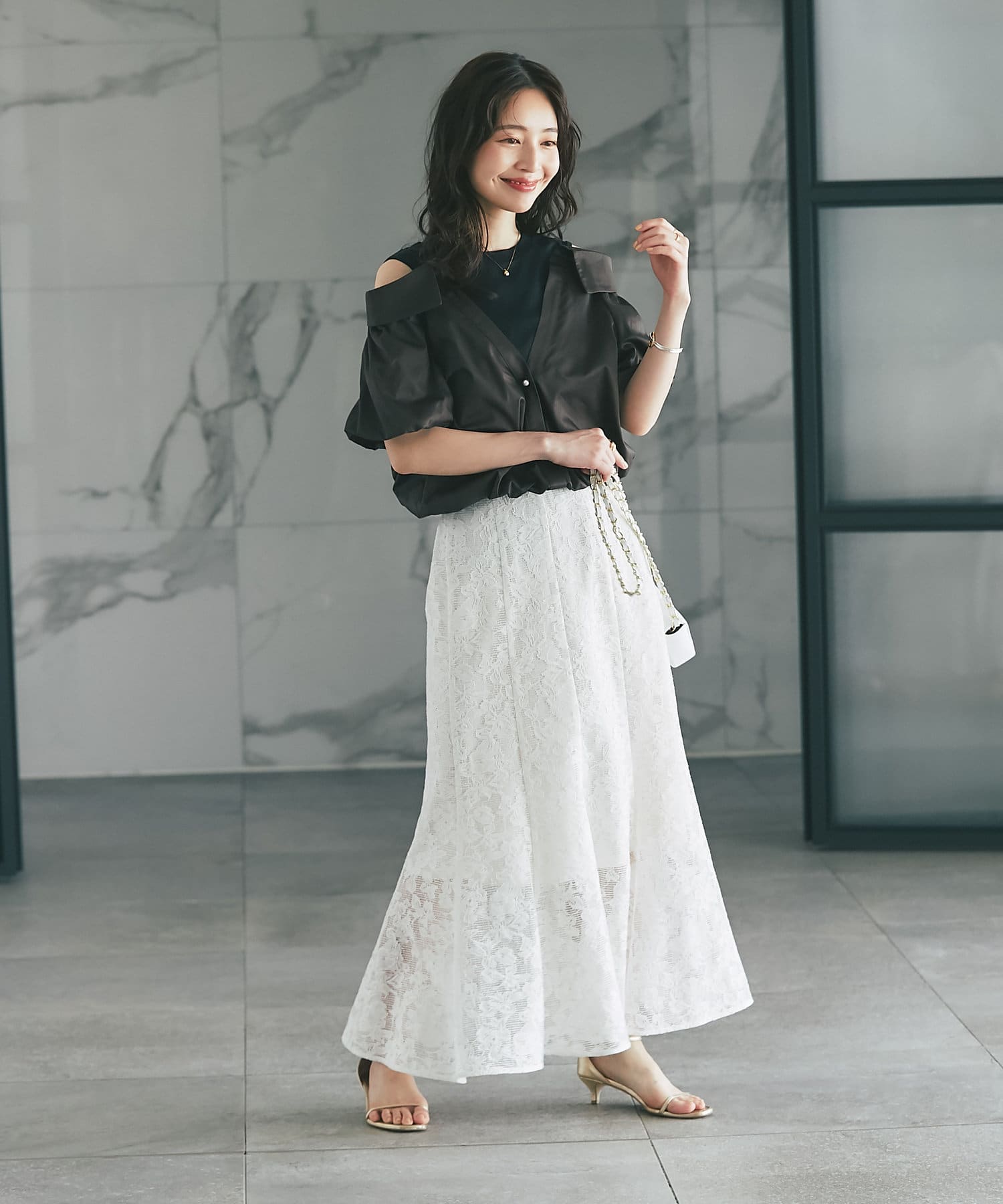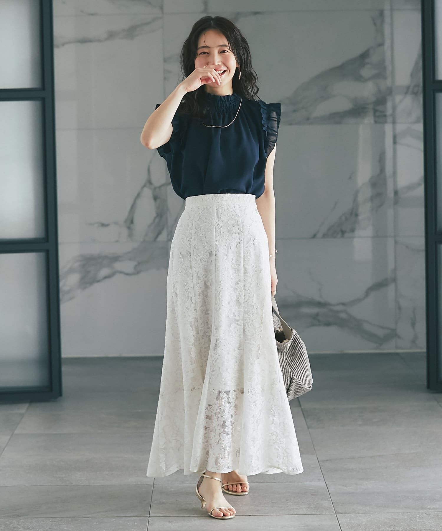 コットン・ポリエステルのレースがきれいめ過ぎず、カジュアルなスタイリングからきれいめまで幅広いスタイリングが楽しめます。