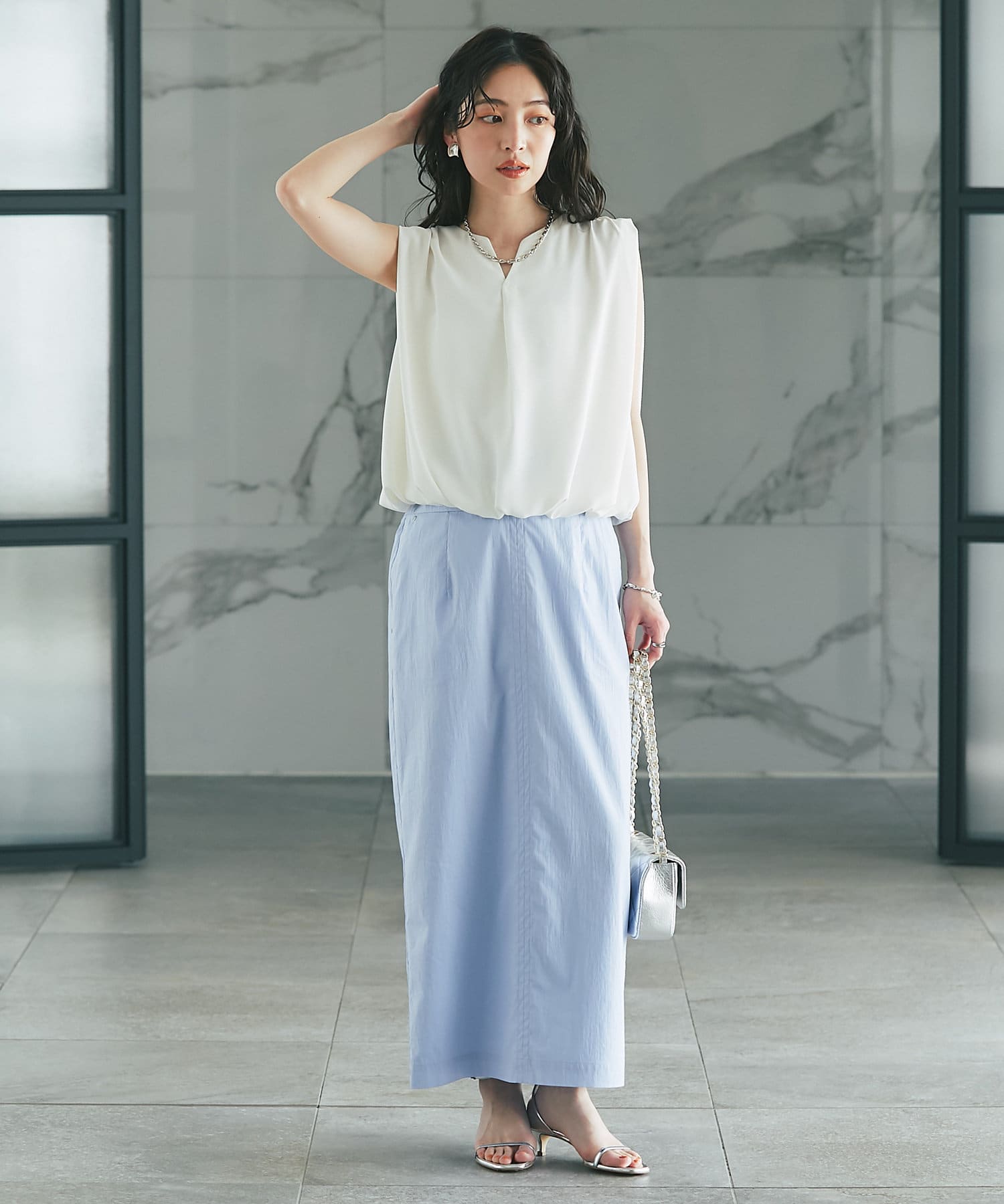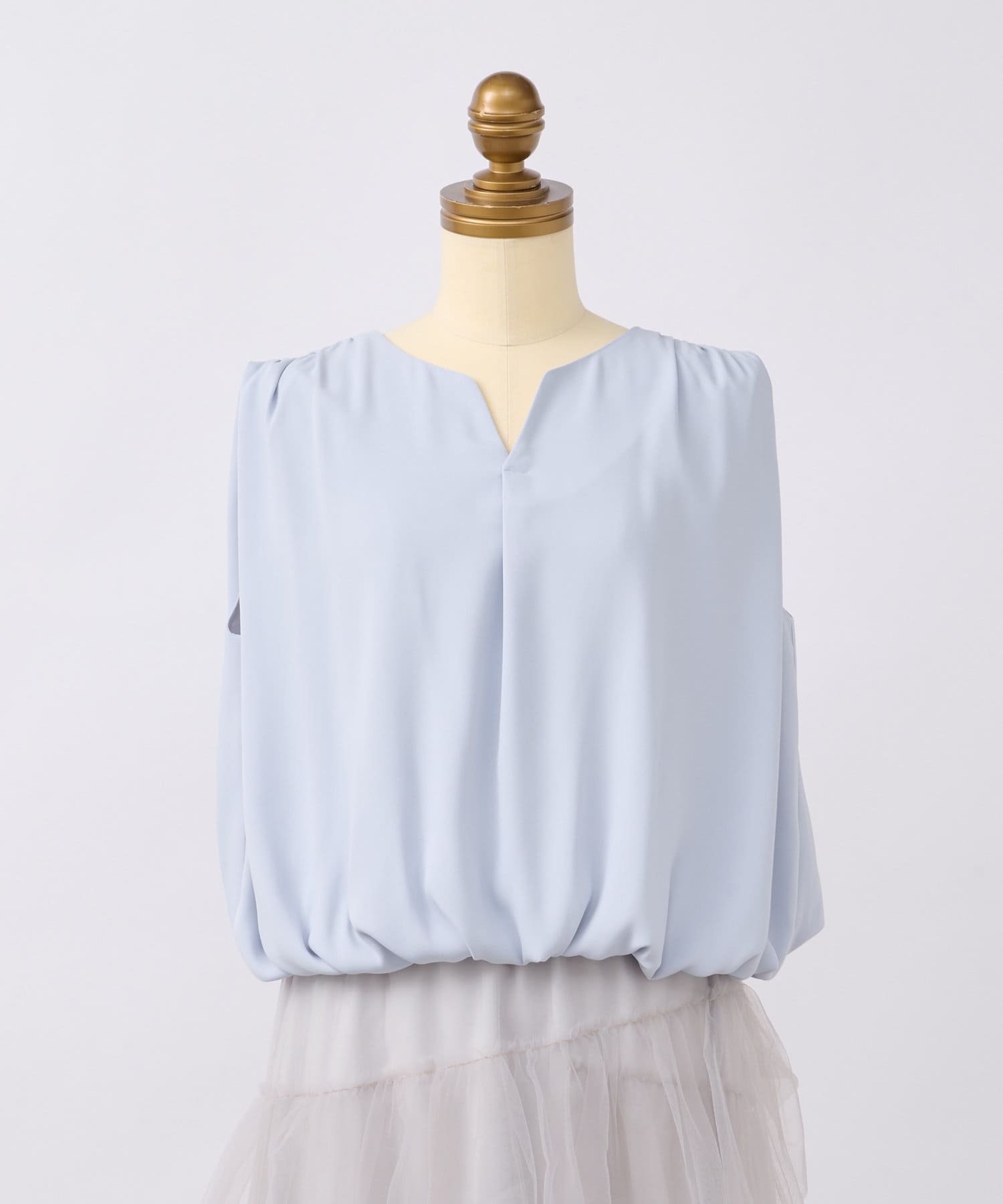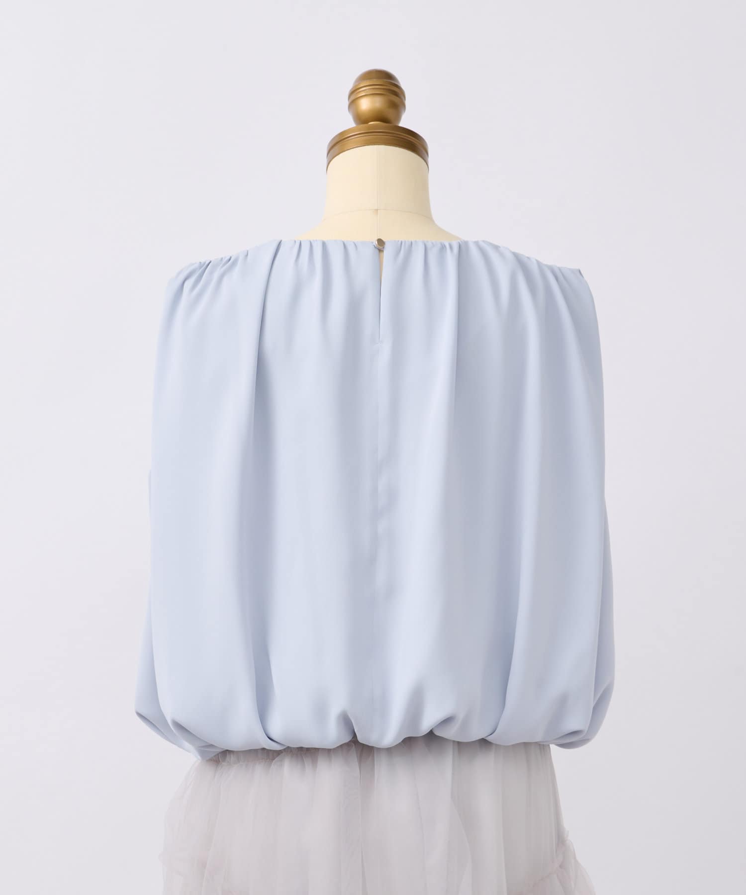 ふんわりと立体的なバルーンシルエットが華やかなノースリーブブラウス
