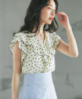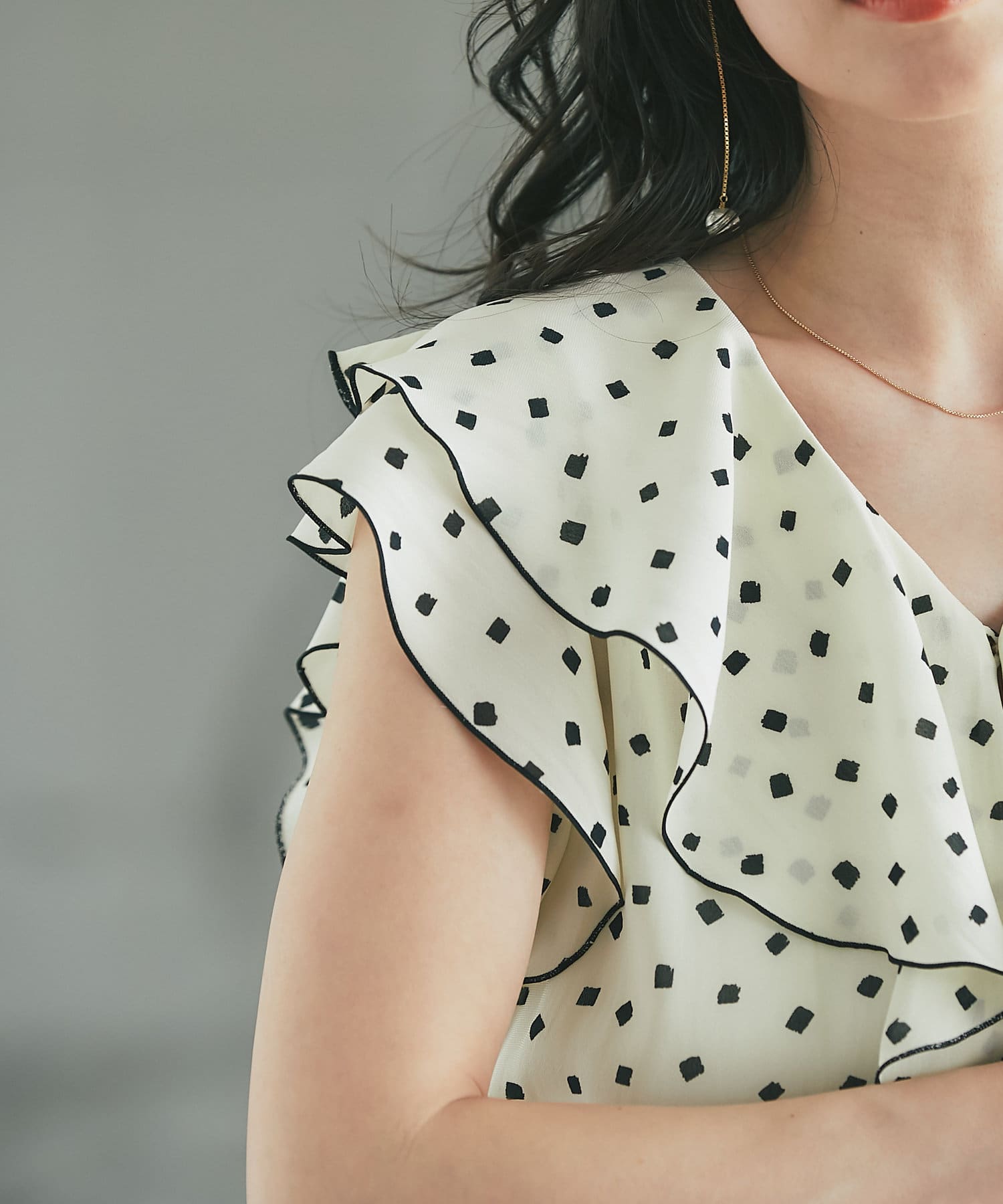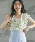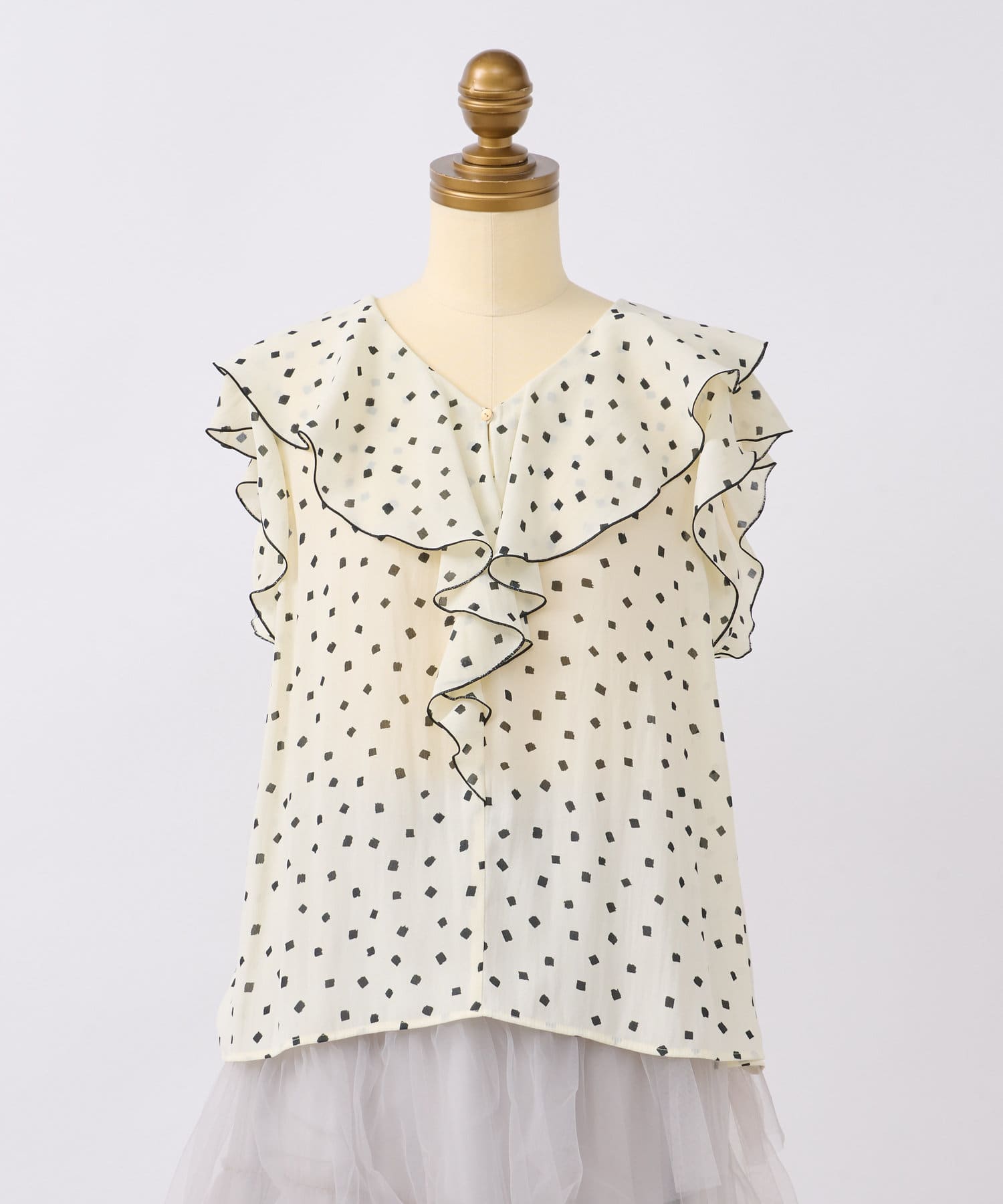 【全骨格対応】スクエアドットラッフルブラウス