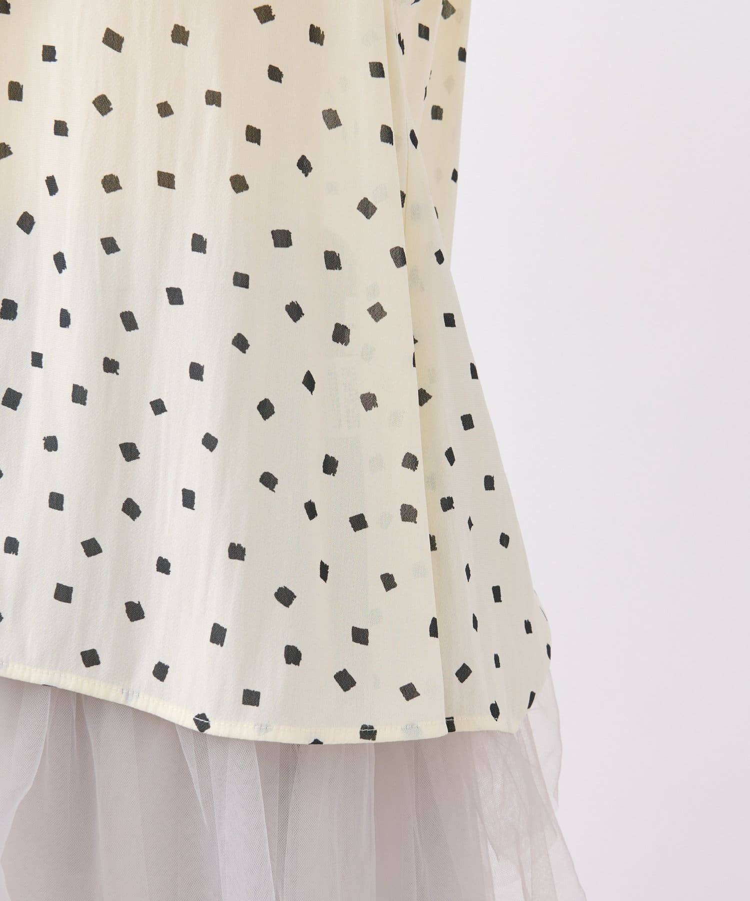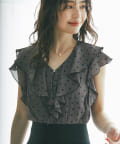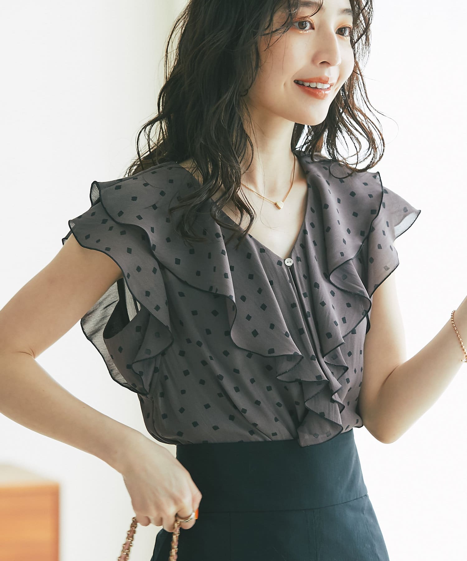 スクエアのランダムドットが大人の女性らしさ香るブラウス。